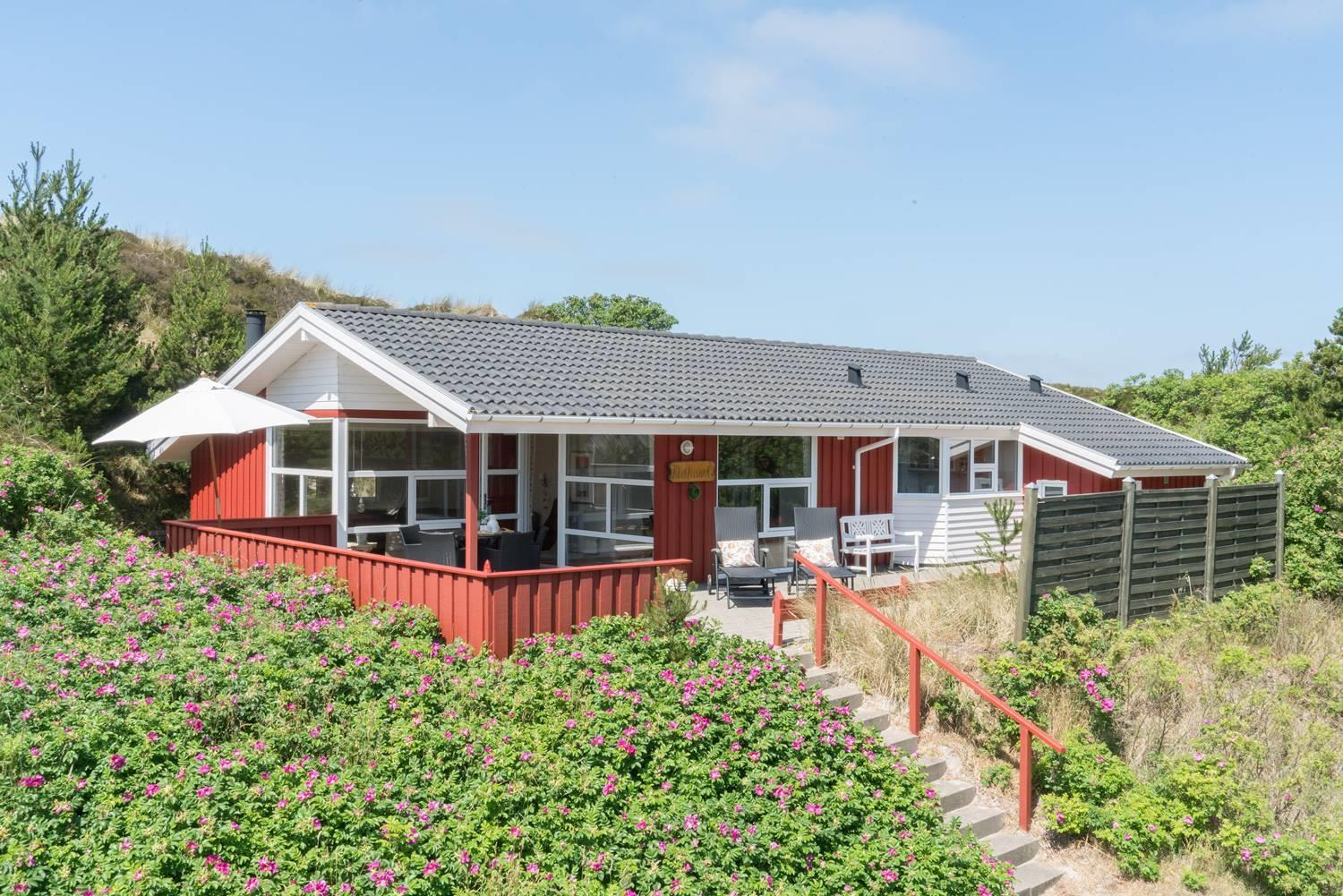 Velholdt feriehus på sydskråning med sauna og flot udsigt nær Henne Strand.