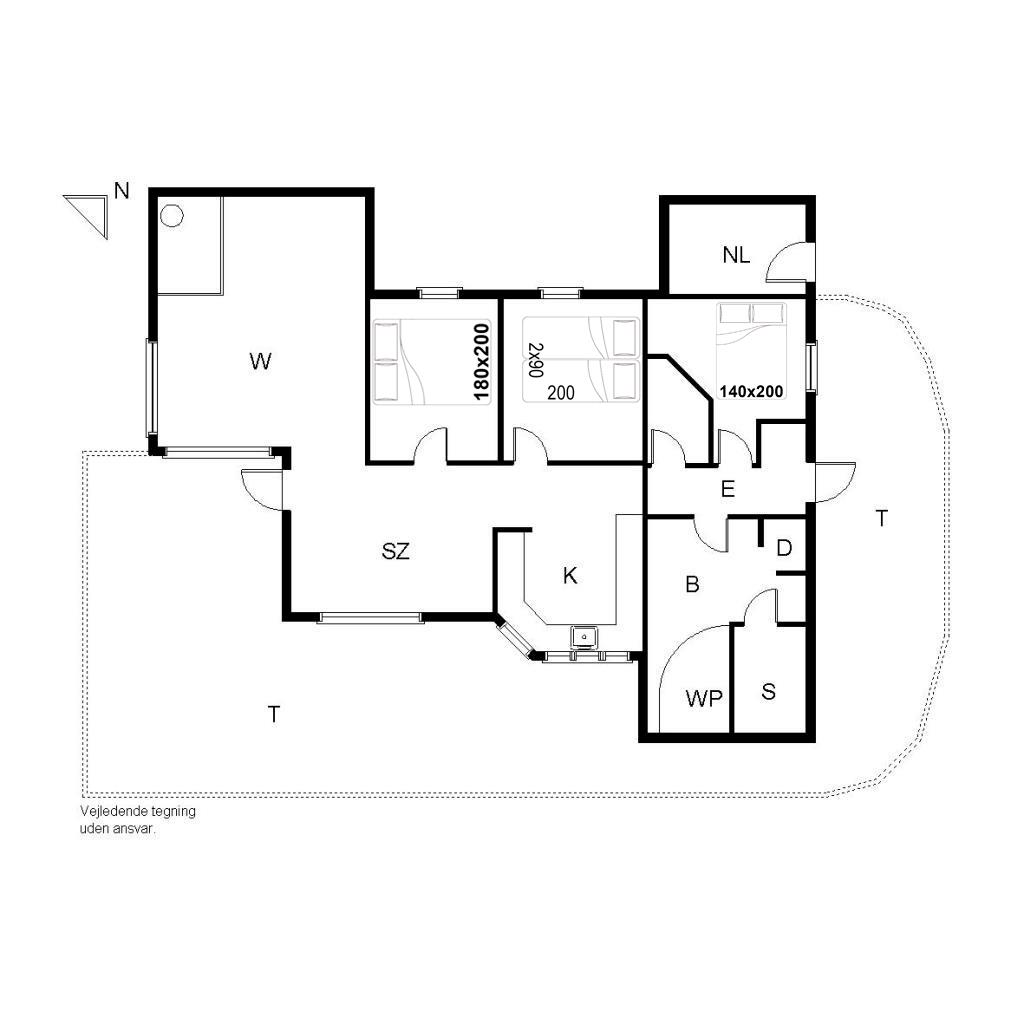 Sengestørrelse: 1 dobbeltseng 180 x 200 cm + 1 dobbeltseng 140 x 200 cm + 1 dobbeltseng med 2 madrasser 90 x 200 cm.