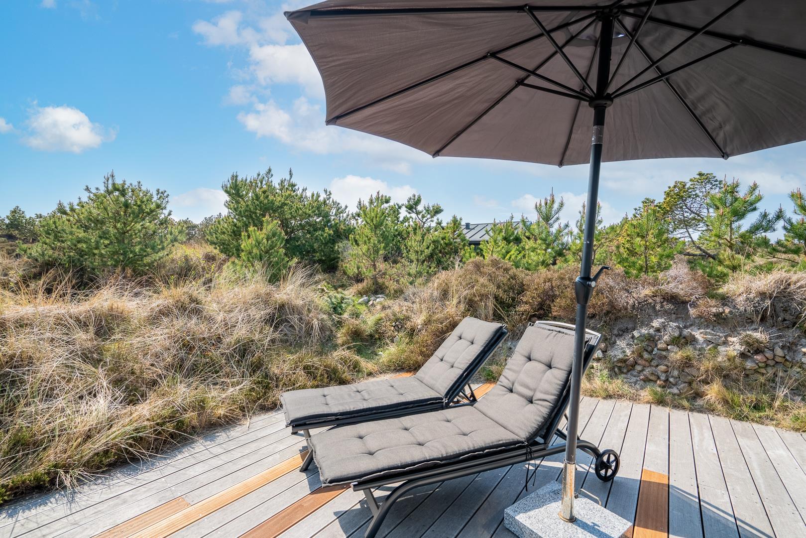 Hyggeligt feriehus i rolige omgivelser med 3 soverum, brændeovn og skønne terrasser nær Henne Strand.