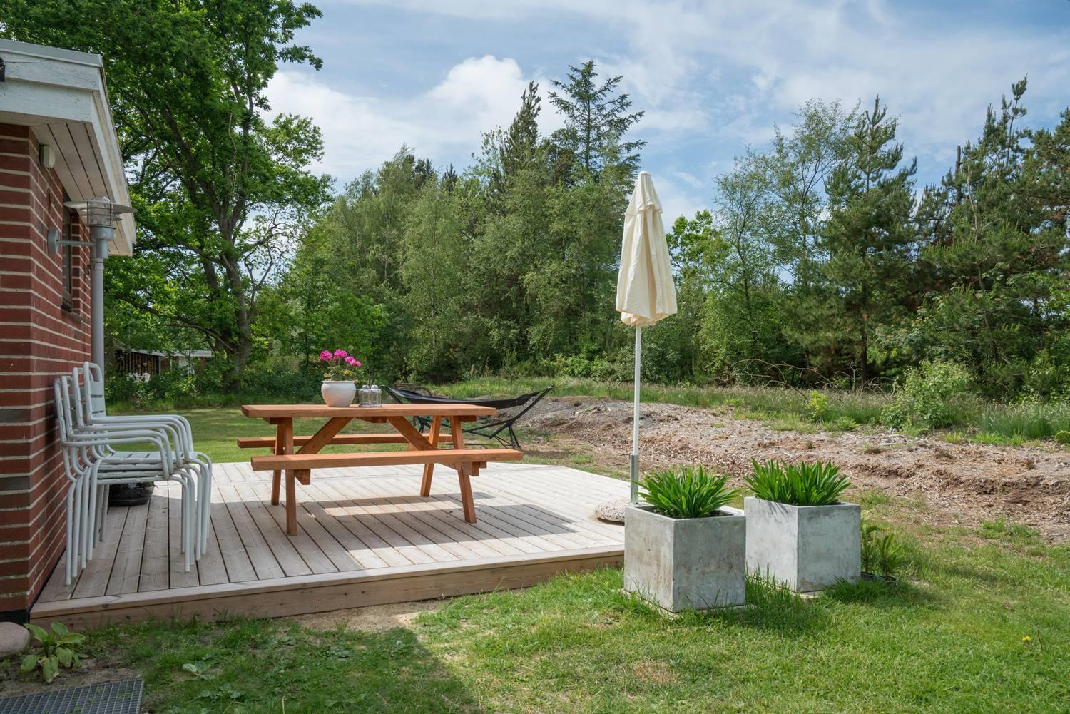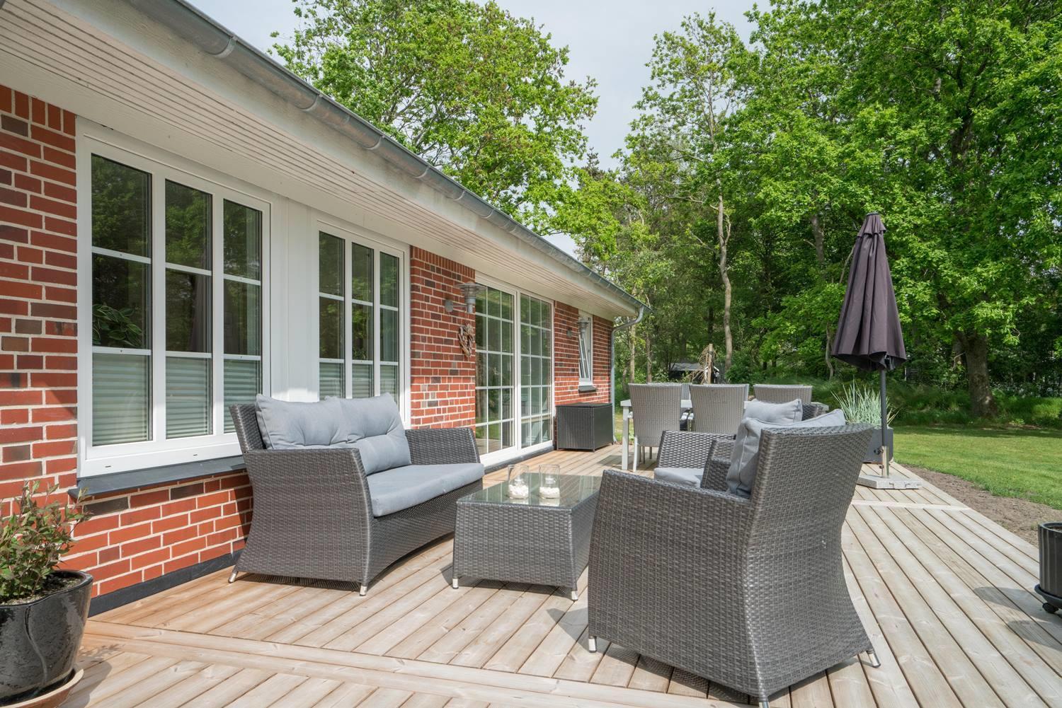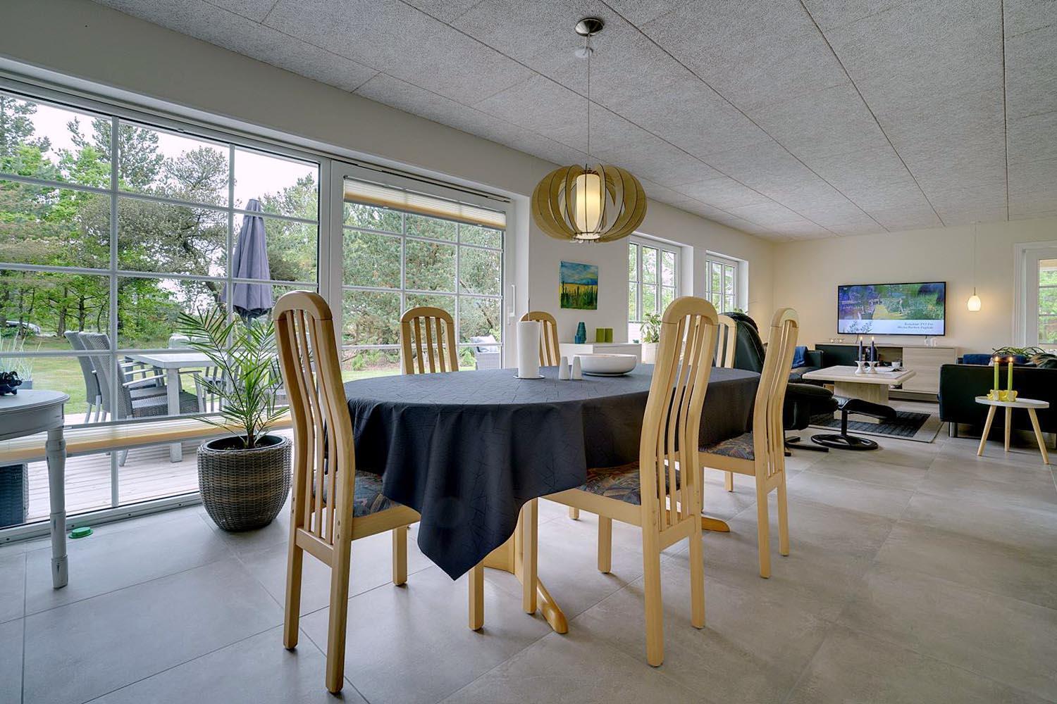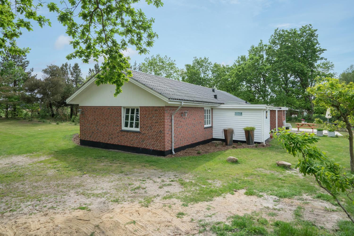 På en stor børnevenlig naturgrund med god plads til boldspil og leg ligger dette dejlige nyrenoverede feriehus. Her på Gl. Strandvej 5 har I ikke langt til Blåbjerg Plantage, Filsø og Henne Golfklubs flotte bane som kan spilles hele året (sommergreens). Der er i 2021 lavet flot nyt køkken/alrum med troldtektloft og klinkegulv med gulvvarme. Fra alrummet er der udgang til skøn overdækket terrasse/udestue hvor 2 store skydedøre kan åbnes, så udsyn og lys kan nydes. Huset har flot badeværelse med spa og sauna. Fra den store 70 m2 terrasser kan solen og naturen nydes mens børnene leger og spiller bold på den store naturgrund.