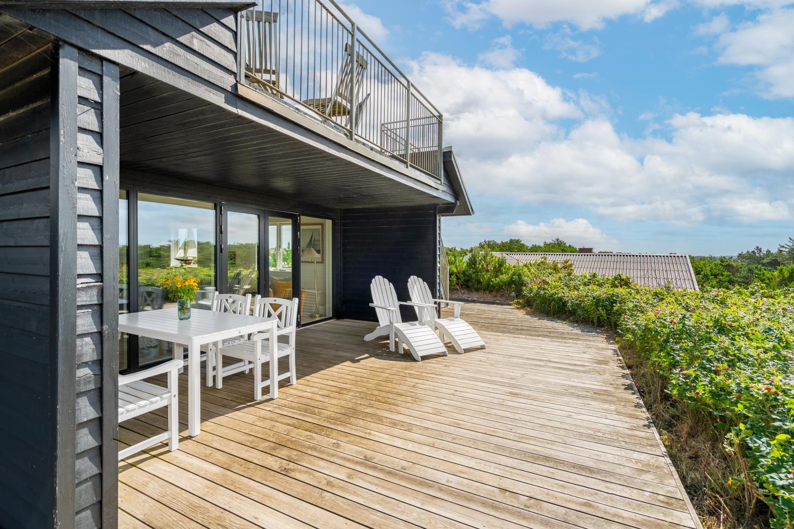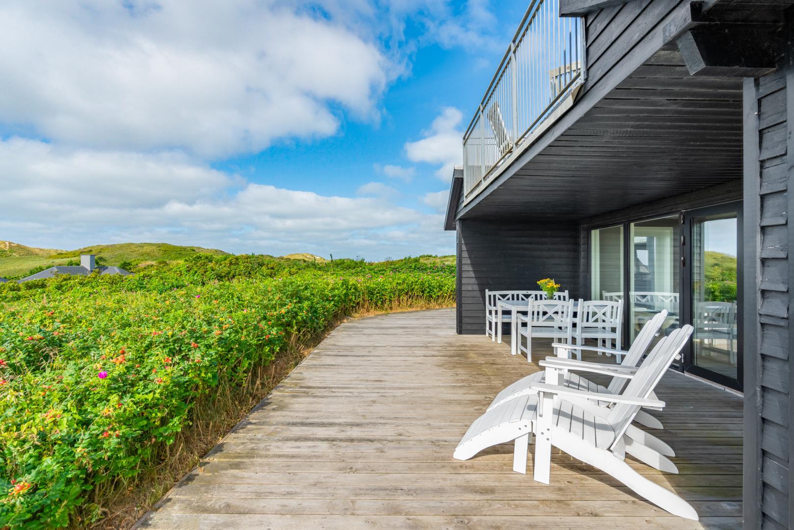 Velkommen til Sans-Souci: et højtliggende sommerhus med en fantastisk udsigt over Henne Strands grønklædte klitlandskab.