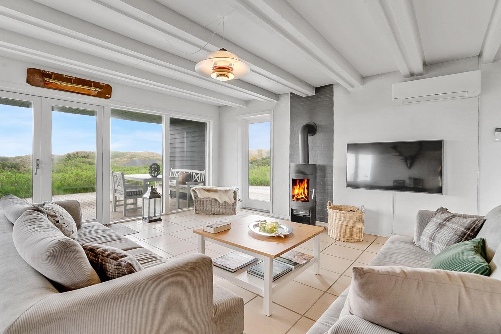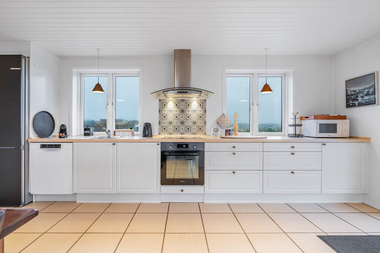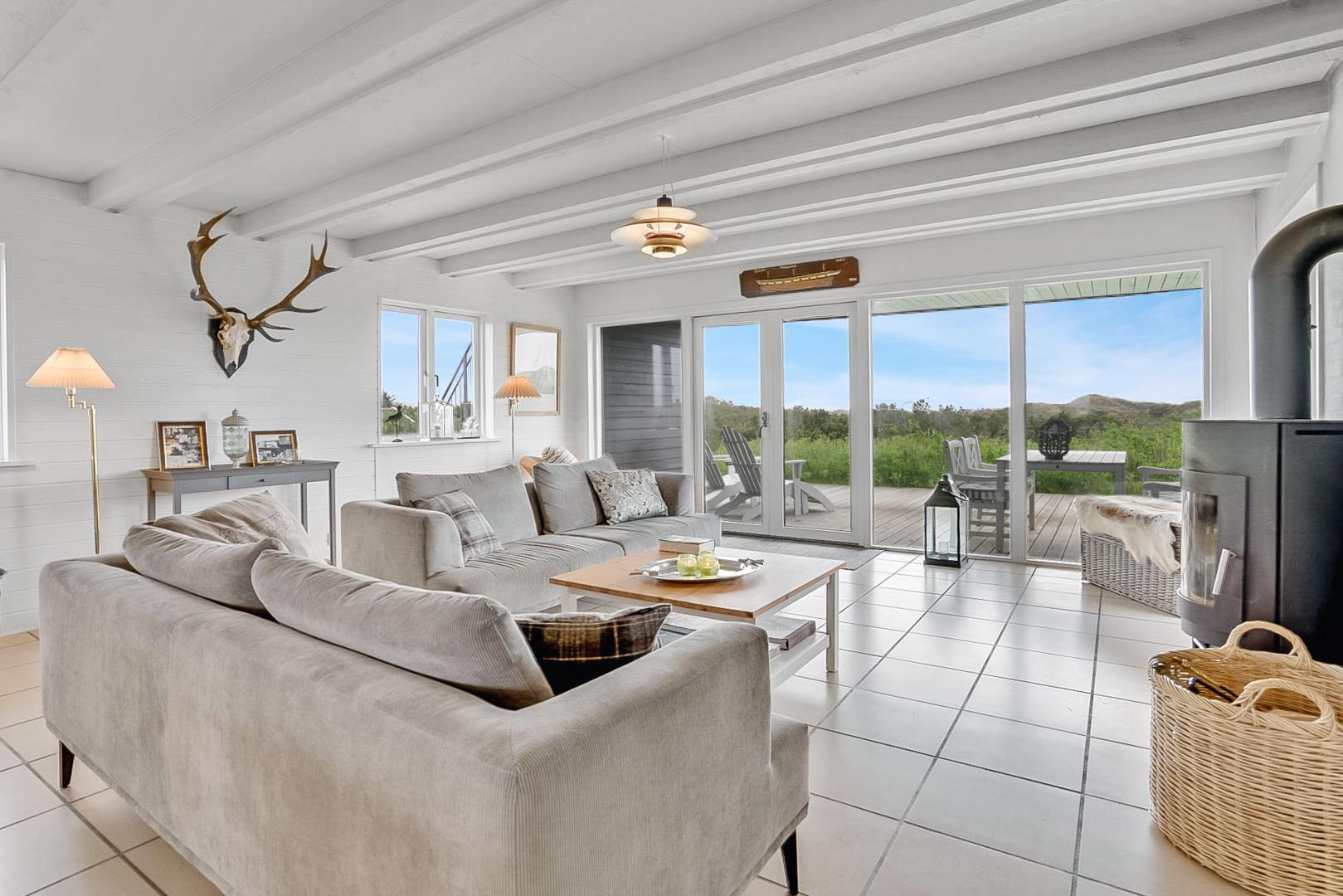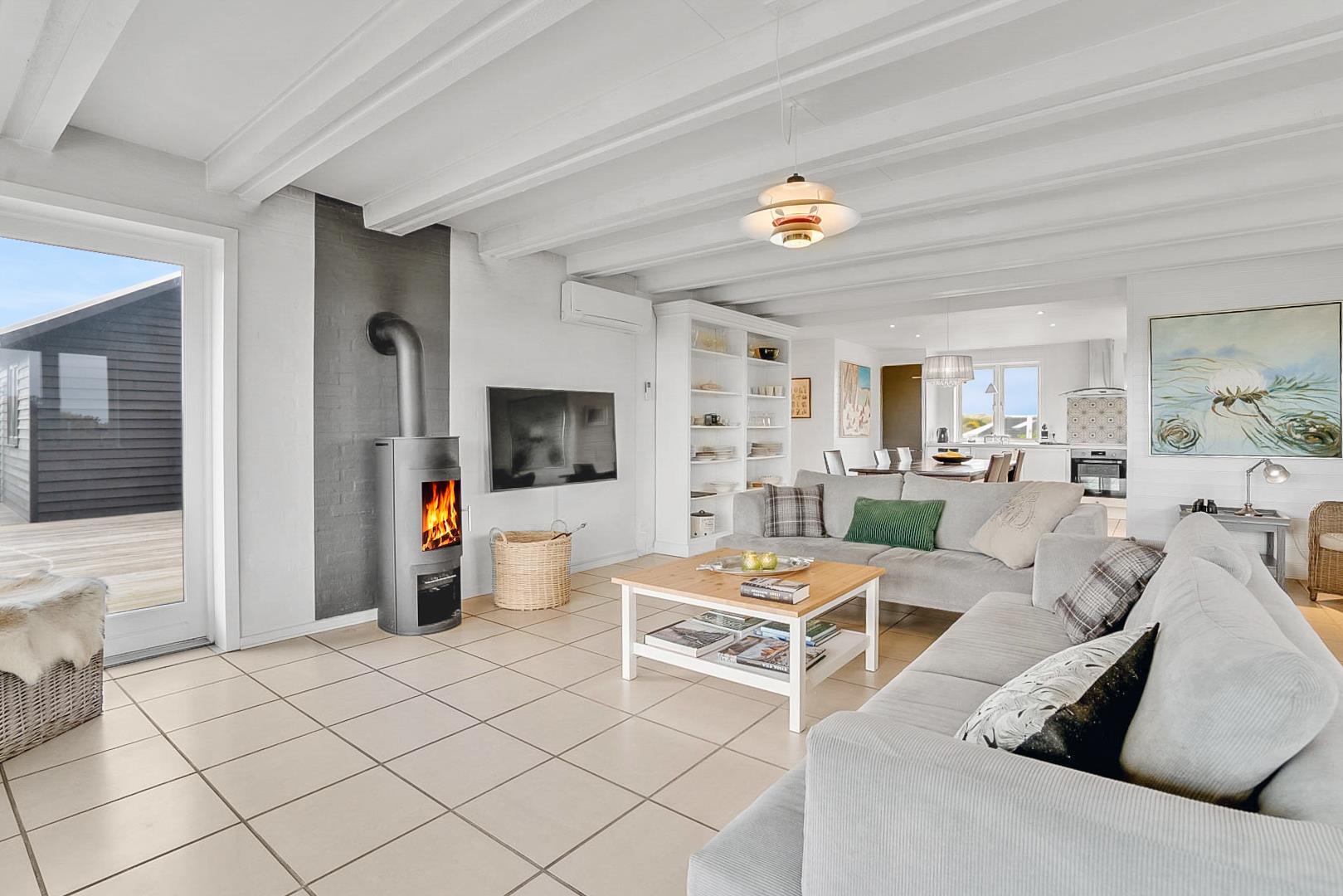 Inden døre er huset smagfuldt indrettet med en god blanding af moderne interiør og maritime elementer, hvilket passer perfekt til beliggenheden lige ved Vesterhavet. Huset byder på et lækkert, lyst opholdsrum med en hyggelig brændeovn og et veludstyret køkken med plads til, at hele familien er fælles om madlavningen. Herudover er der tre soverum med dobbeltsenge og ikke mindst to badeværelser. Huset har vaskemaskine og tørretumbler, og der er gulvvarme i hele huset med undtagelse af soveværelserne.