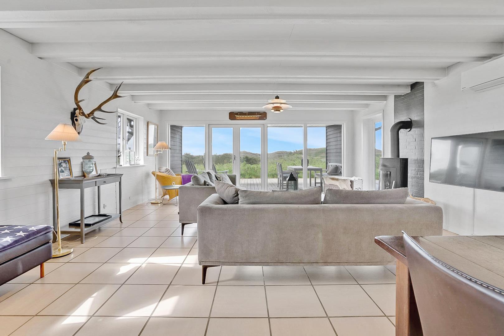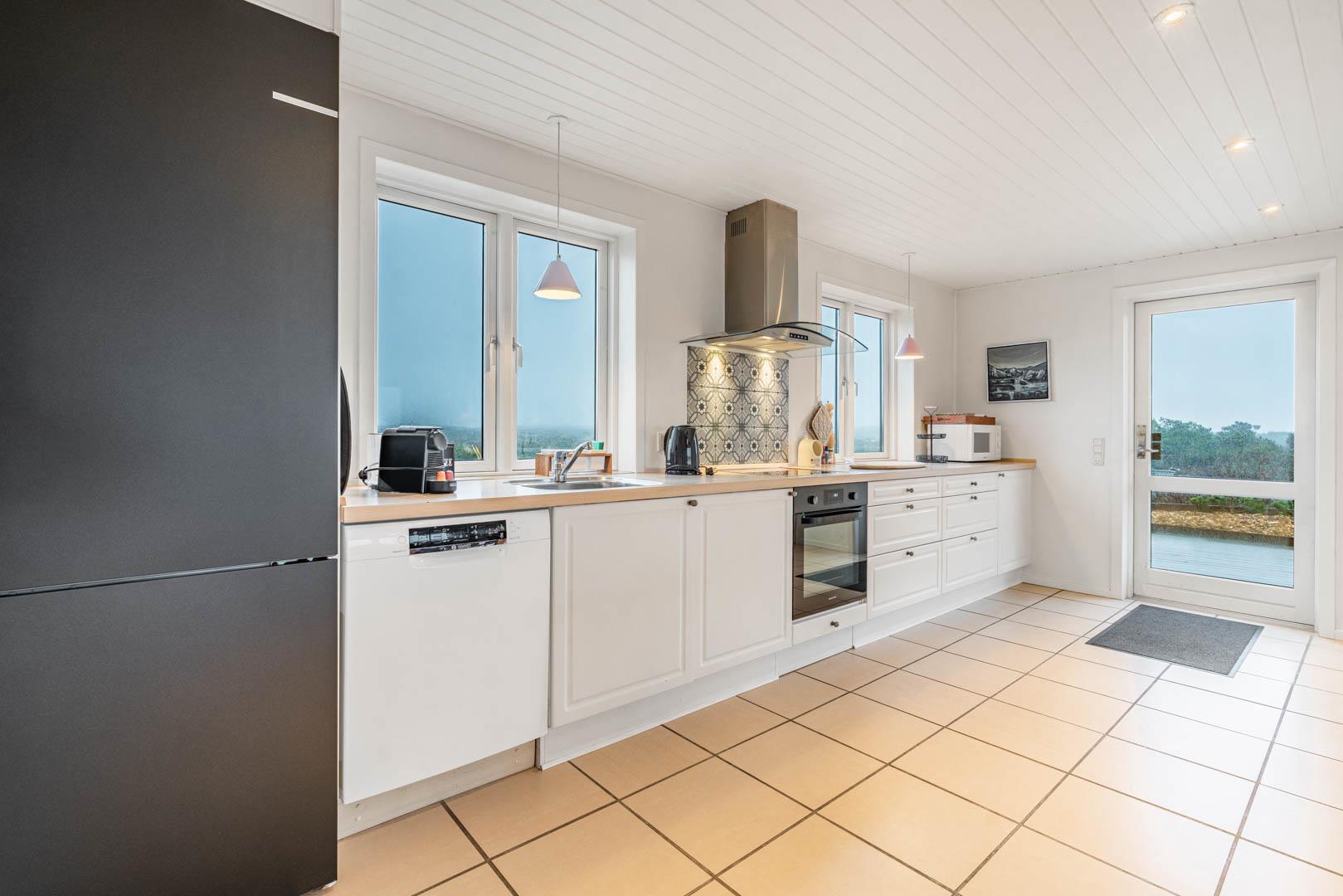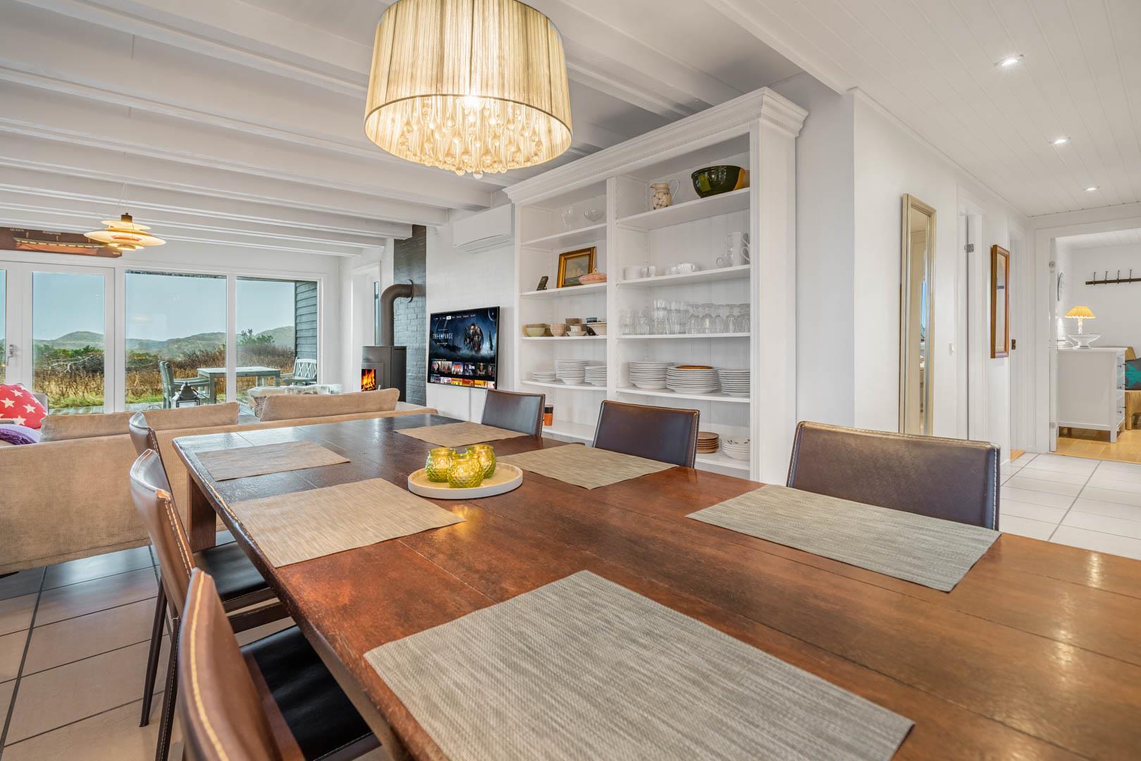 Inden døre er huset smagfuldt indrettet med en god blanding af moderne interiør og maritime elementer, hvilket passer perfekt til beliggenheden lige ved Vesterhavet. Huset byder på et lækkert, lyst opholdsrum med en hyggelig brændeovn og et veludstyret køkken med plads til, at hele familien er fælles om madlavningen. Herudover er der tre soverum med dobbeltsenge og ikke mindst to badeværelser. Huset har vaskemaskine og tørretumbler, og der er gulvvarme i hele huset med undtagelse af soveværelserne.