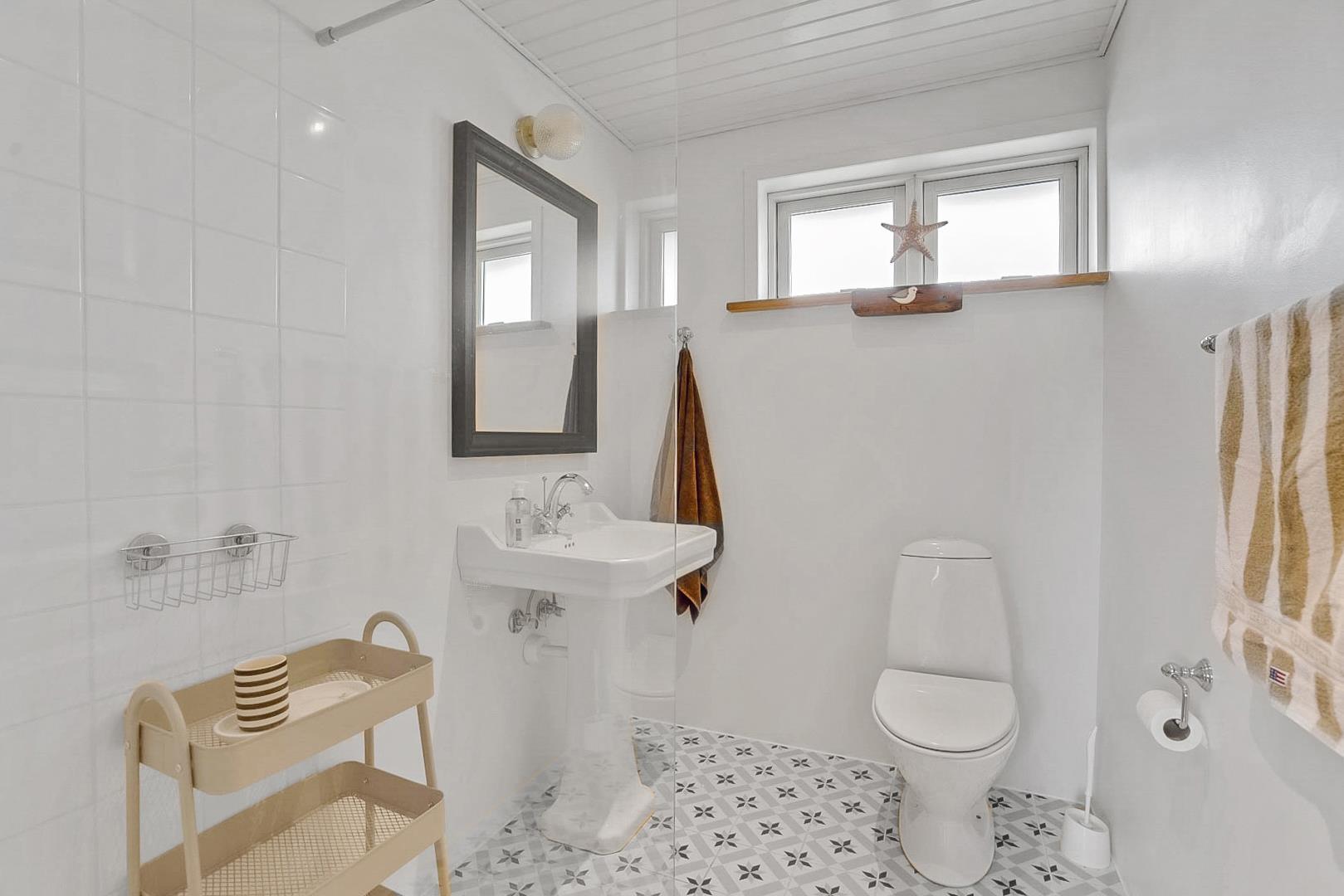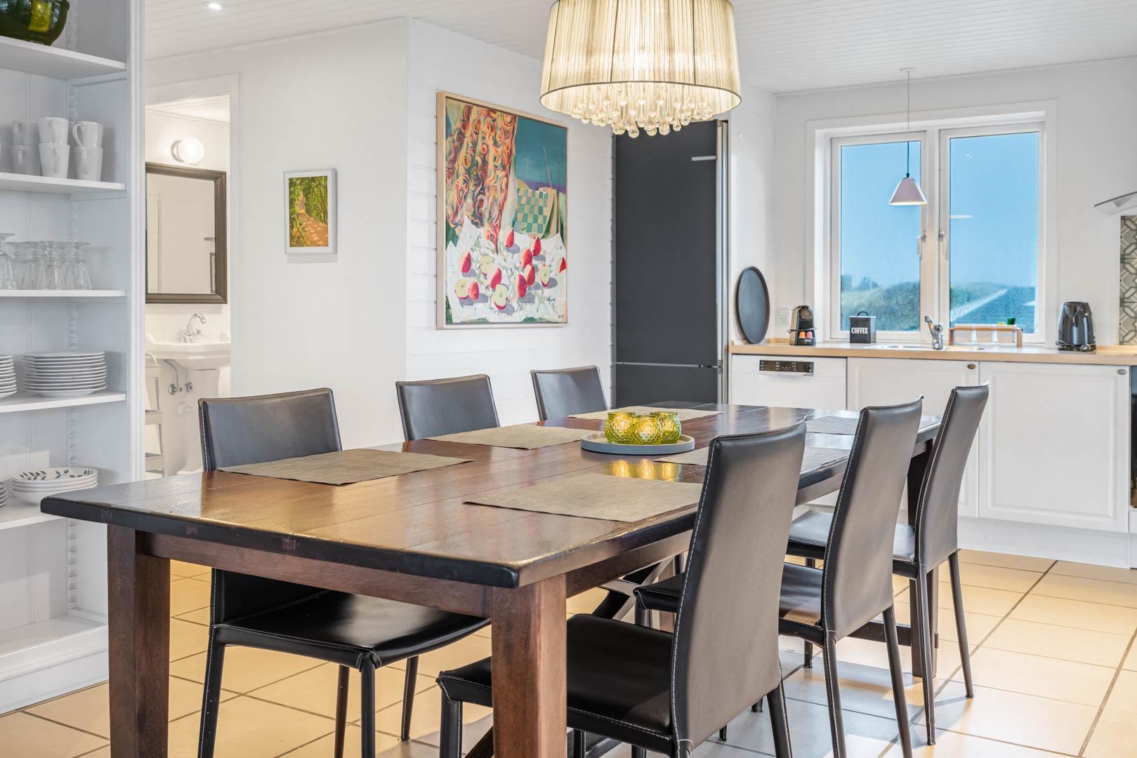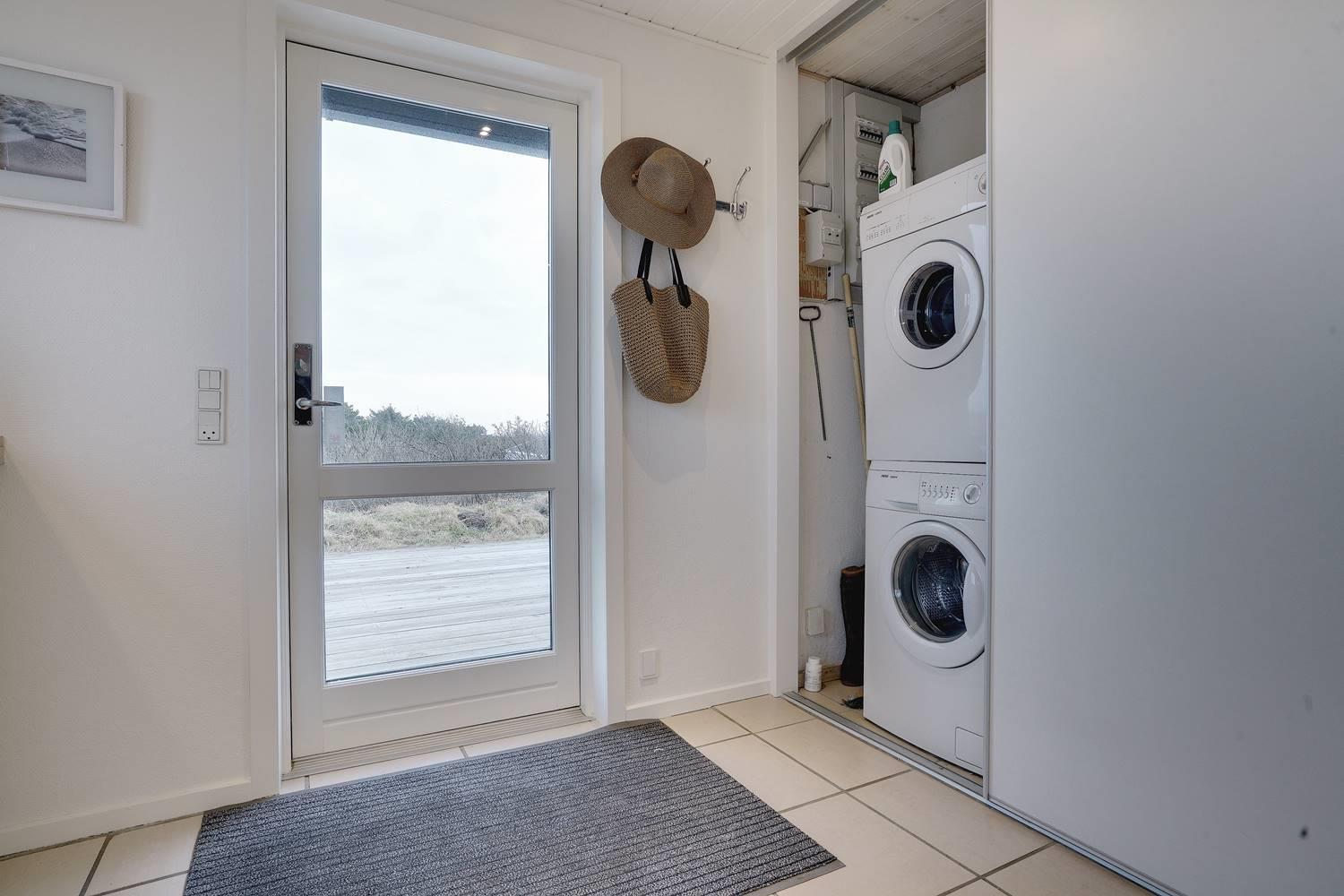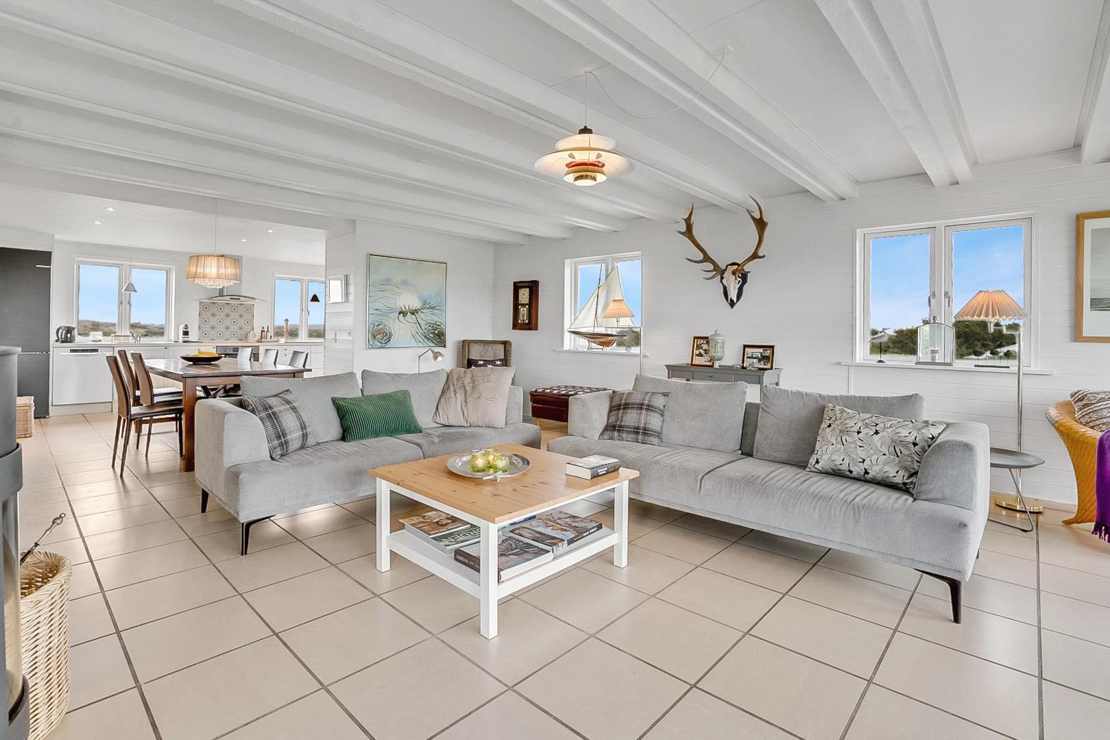 Inden døre er huset smagfuldt indrettet med en god blanding af moderne interiør og maritime elementer, hvilket passer perfekt til beliggenheden lige ved Vesterhavet. Huset byder på et lækkert, lyst opholdsrum med en hyggelig brændeovn og et veludstyret køkken med plads til, at hele familien er fælles om madlavningen. Herudover er der tre soverum med dobbeltsenge og ikke mindst to badeværelser. Huset har vaskemaskine og tørretumbler, og der er gulvvarme i hele huset med undtagelse af soveværelserne.