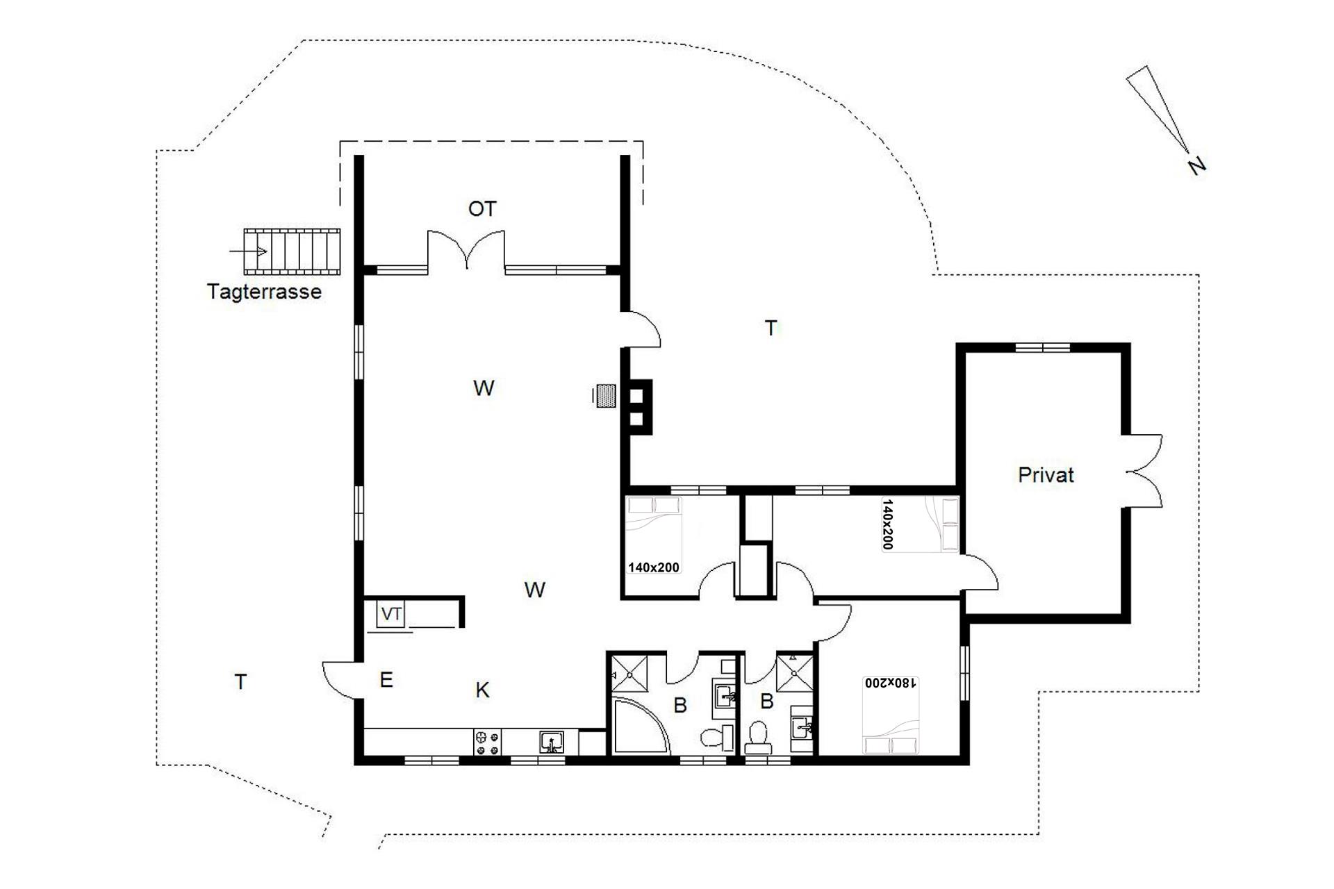 Sengestørrelse: 2 dobbeltsenge 140 x 200 cm + 1 dobbeltseng 180 x 200 cm
