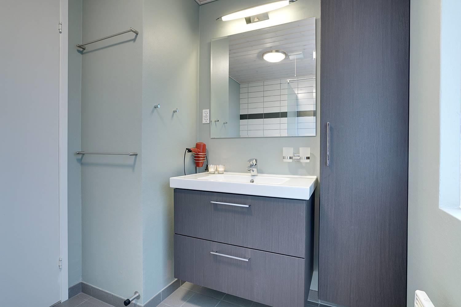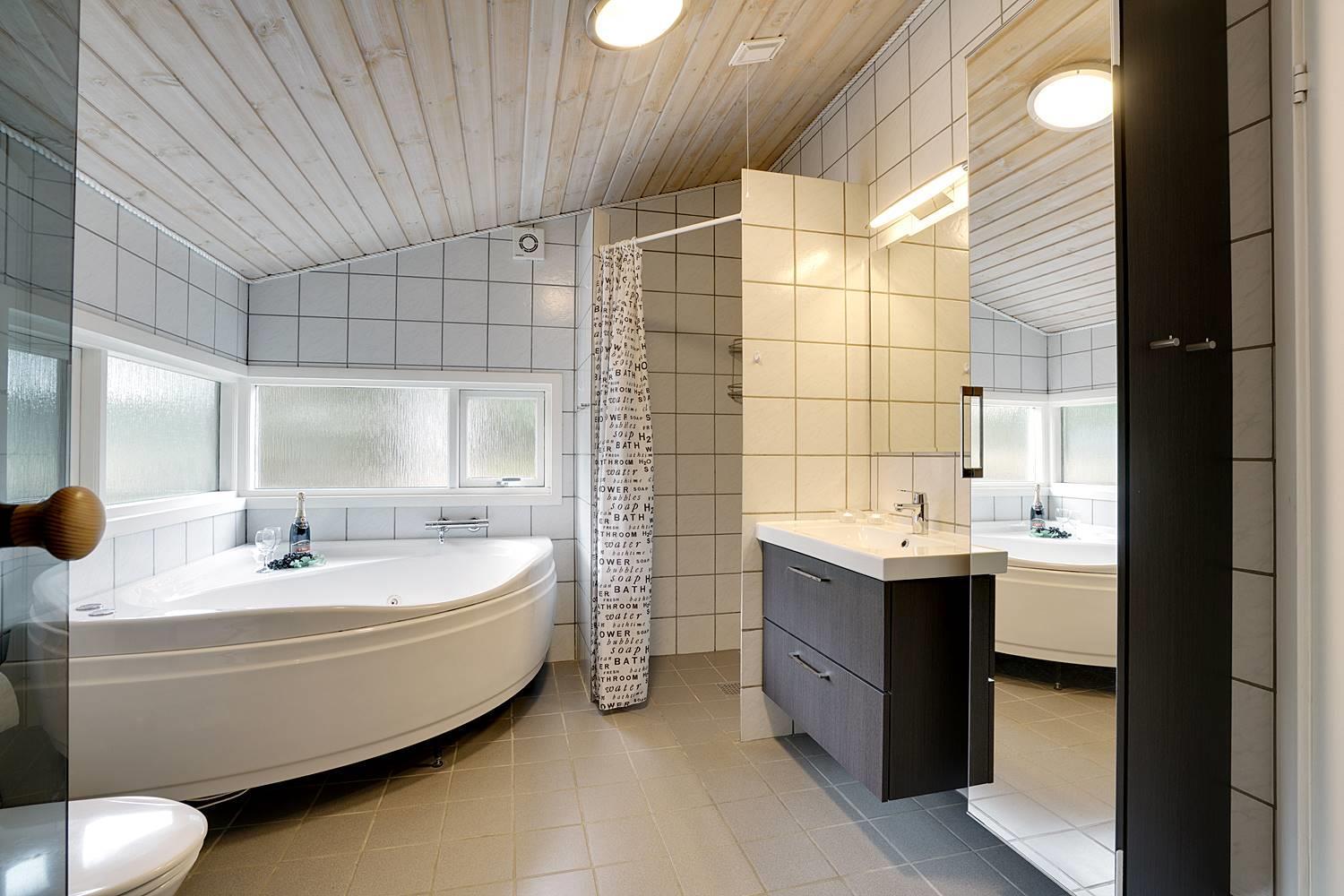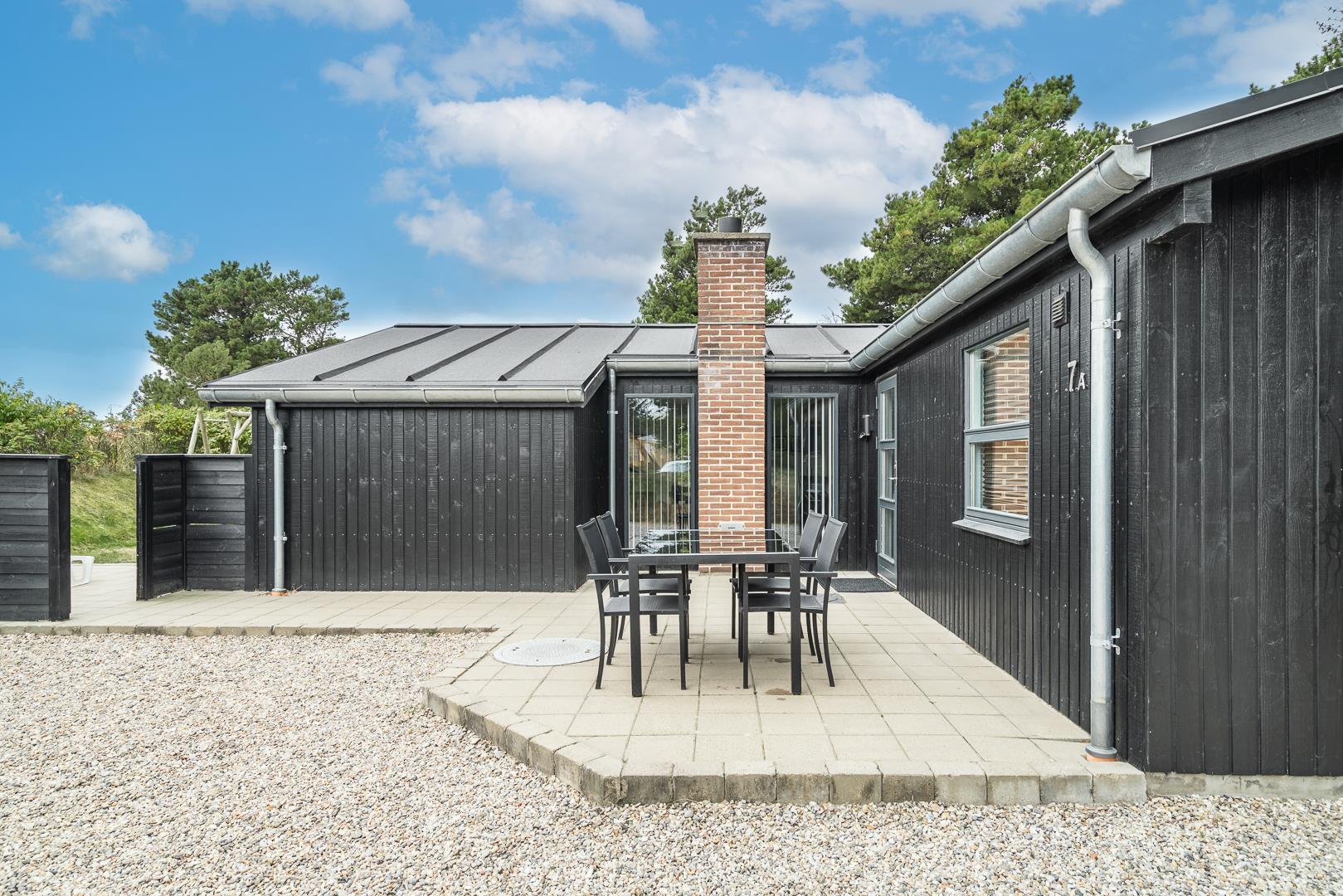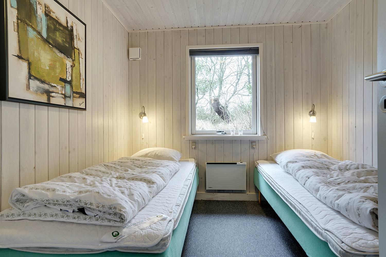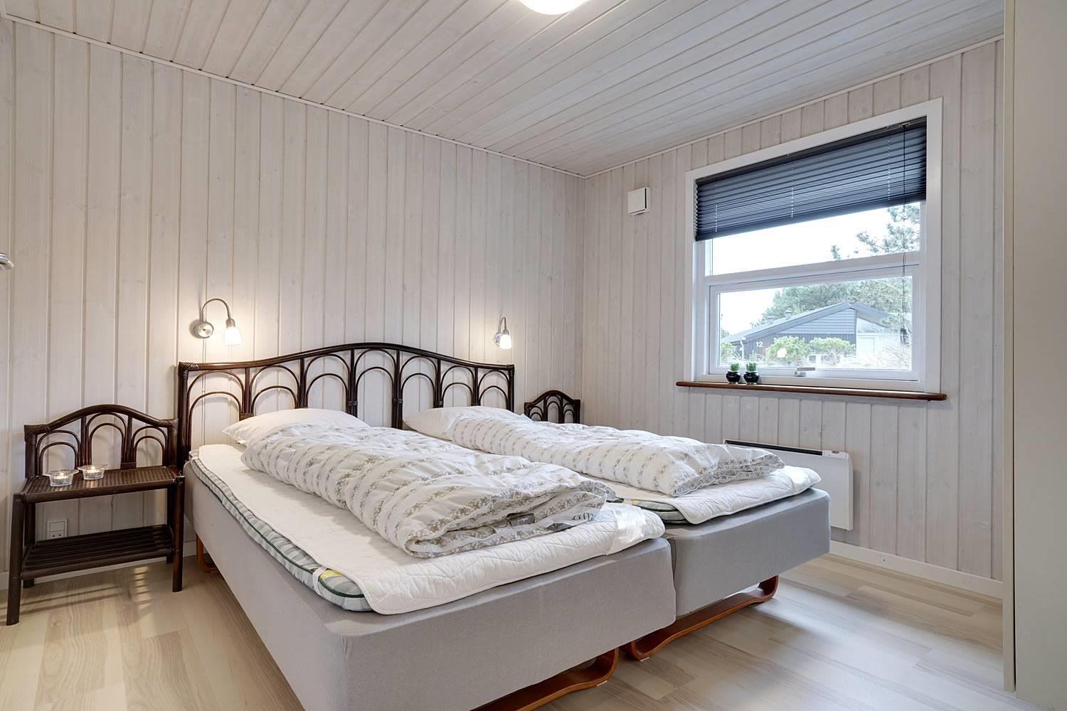 På en læfuld naturgrund omkranset af træer og busker finder I dette meget nutidige og moderniserede feriehus. Huset har en helt lukket terrasse, hvoraf en del er overdækket. På den store terrasse med masser af læ for vinden, forefindes også gynge og sandkasse til de mindste. Endnu en terrasse ved indgangspartiet. Indendørs flot, rummeligt køkken med separat fryser og opvaskemaskin. Lys og venlig stue med spiseplads og siddegruppe med gode lædermøbler og lænestol. Fra stuen er der adgang til soverum med 2 enkeltsenge. Desuden separat afdeling med 1 dobbelt seng samt badeværelse. Ligeledes afdeling med soverum med dobbeltseng og spabadeværelse med sauna samt vaskemaskine og tørretumbler. Med brændeovn og varmepumpe, er huset miljøvenligt og energi besparende. Trådløst internet i ferien findes her også.