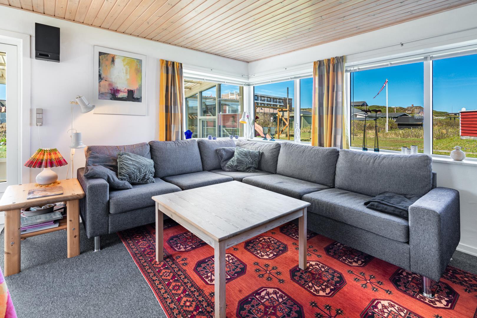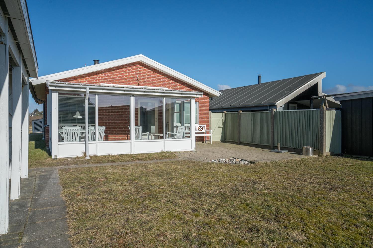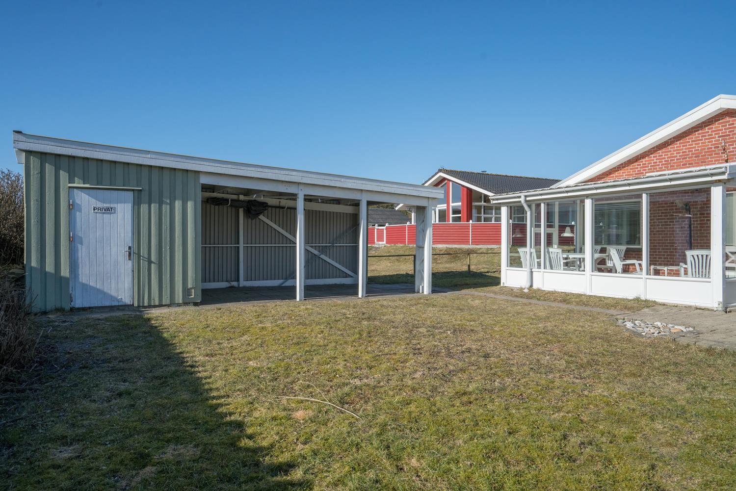 Hyggeligt og velholdt muret feriehus med carport beliggende på en naturgrund kun 2 minutters gang fra Henne Strands centrum. Huset er indrettet med gode og pæne møbler. Fra udestuen er der udgang til lukket og ugeneret 'have'. I 2022 er der kommet nyt flot badeværelse.