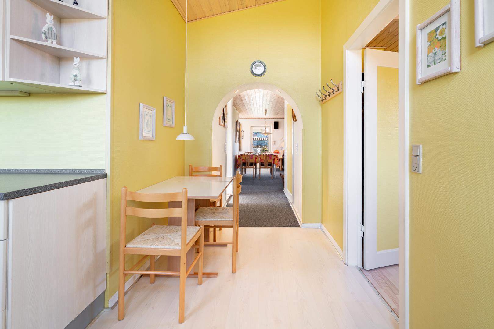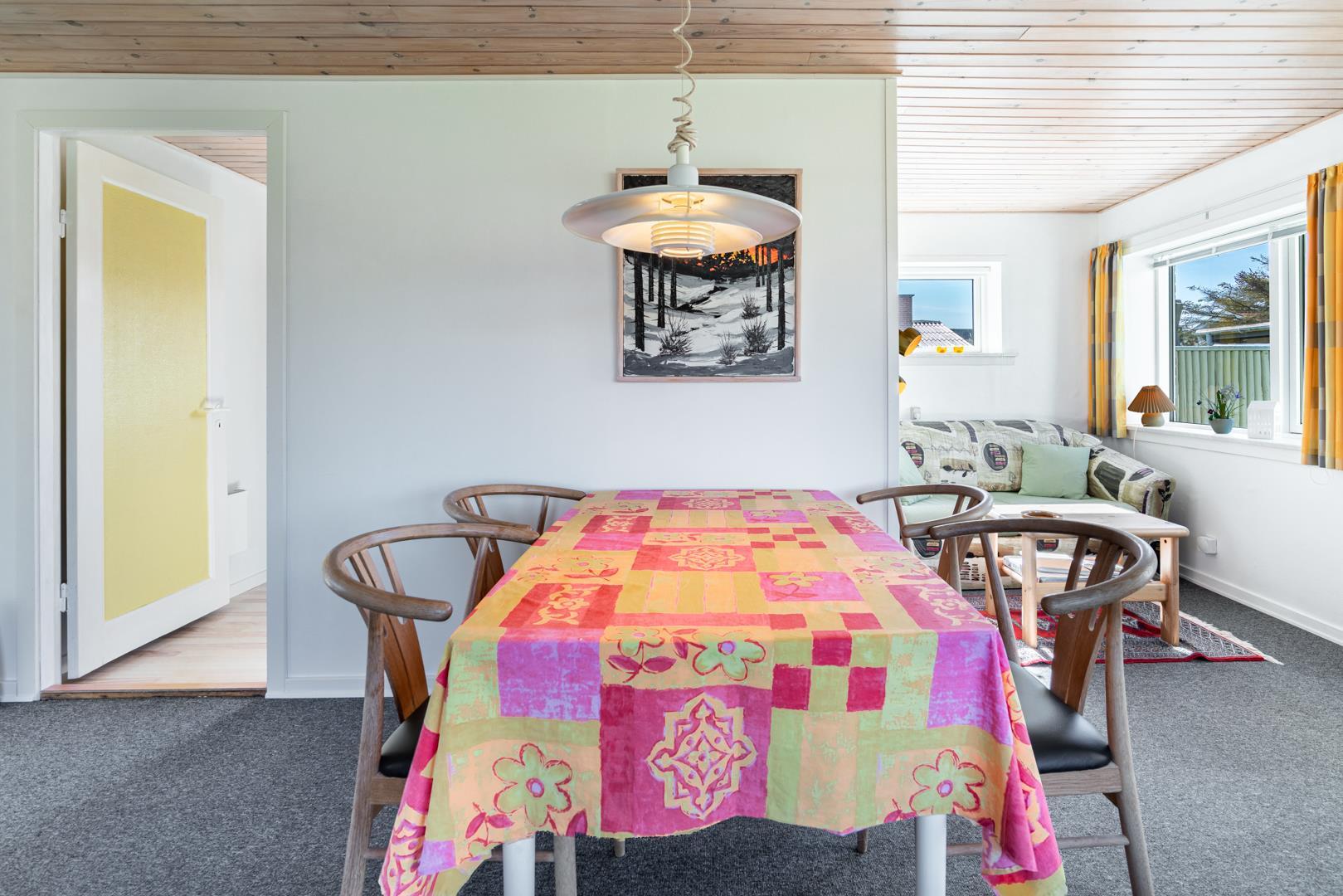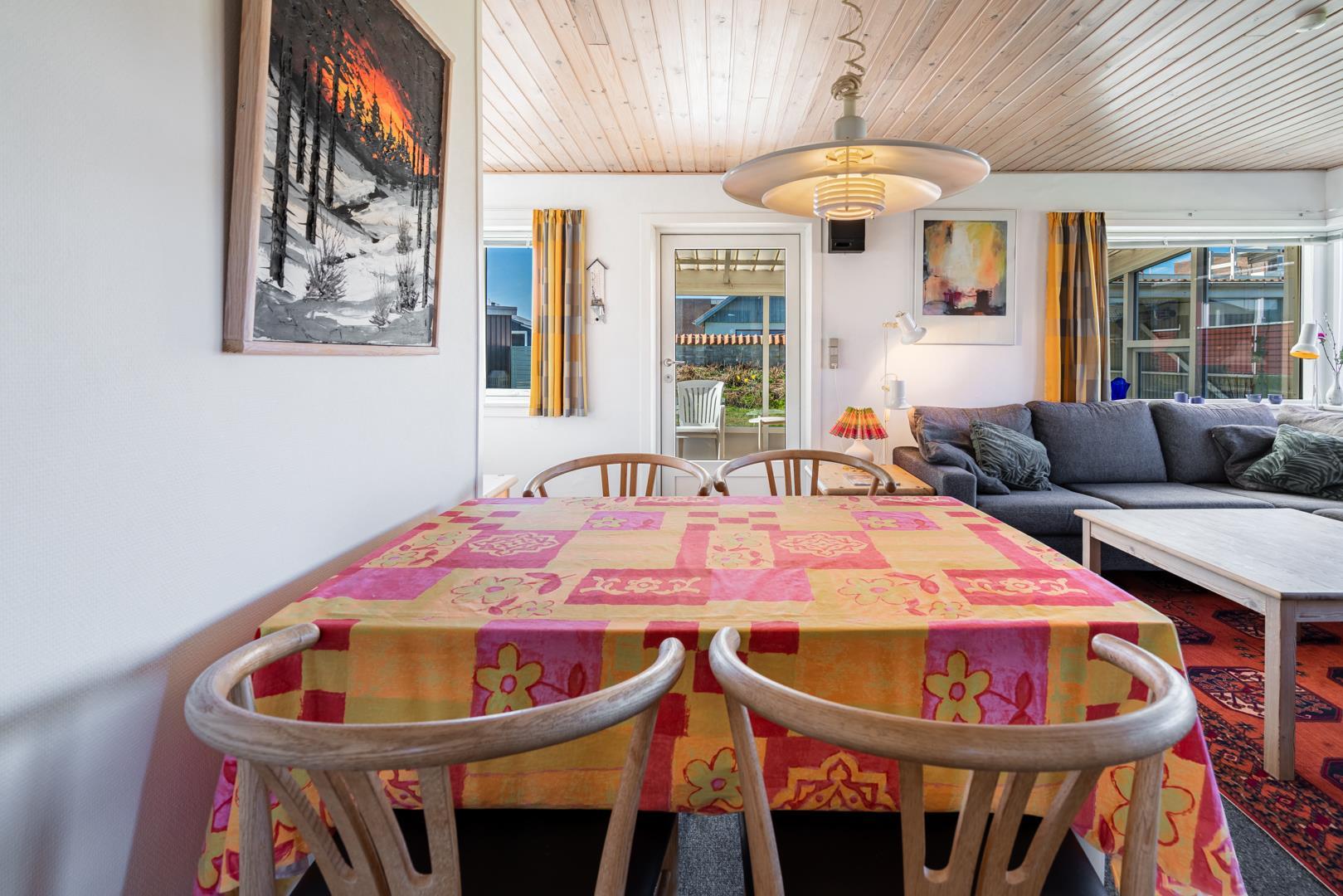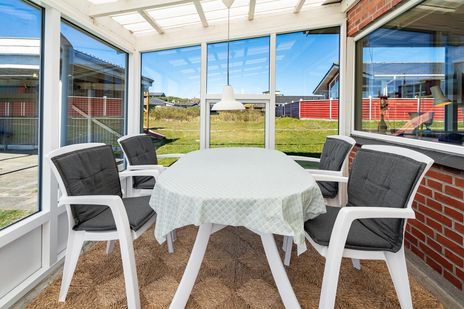 Hyggeligt og velholdt muret feriehus med carport beliggende på en naturgrund kun 2 minutters gang fra Henne Strands centrum. Huset er indrettet med gode og pæne møbler. Fra udestuen er der udgang til lukket og ugeneret 'have'. I 2022 er der kommet nyt flot badeværelse.