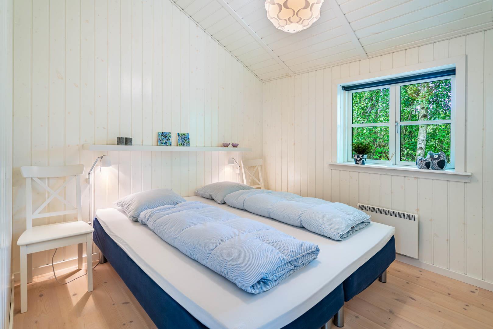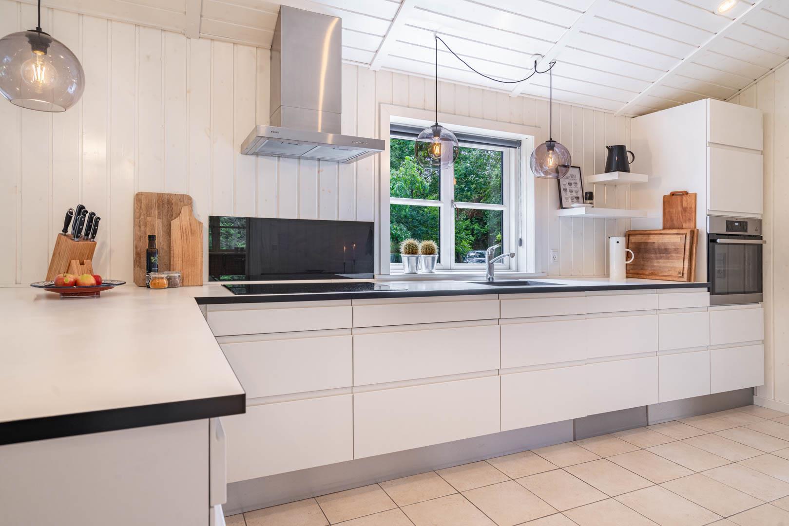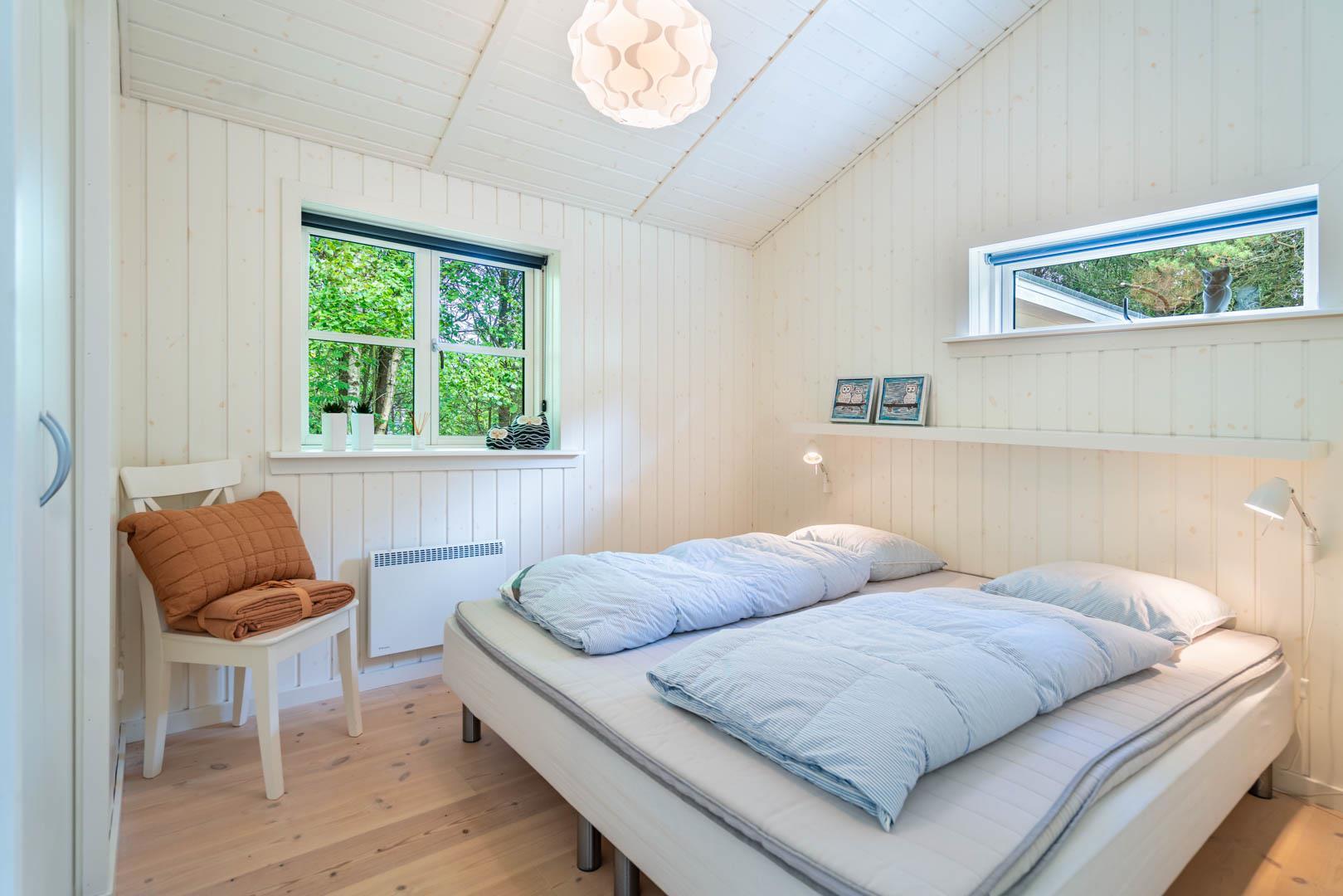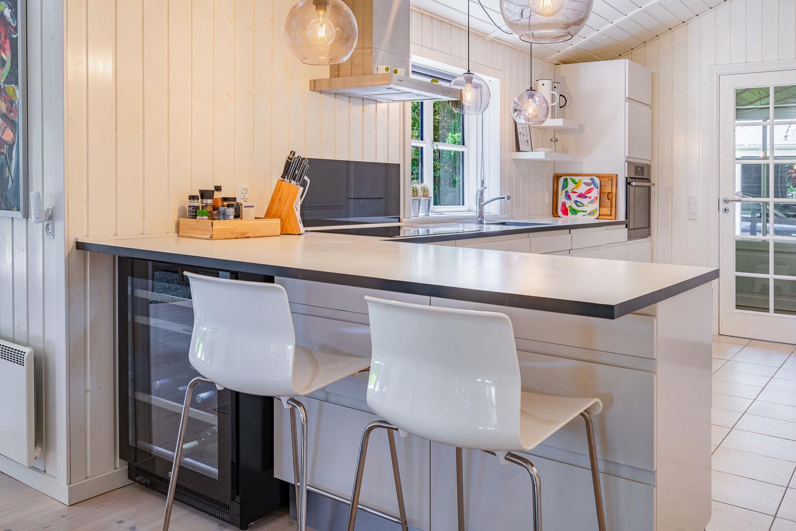 Huset er smagfuldt indrettet i skandinavisk stil, i lyse og venlige nuancer, Der er lagt vægt på kvalitet og hygge. Det dejlige køkken er åbent ind til stuen hvor store vinduer giver et godt lys, i midten af rummet står der en brændeovn. Med gode soverum, 1 badeværelser med bruseniche og badekar + et gæstetoilet, er dette et velfungerende sommerhus.