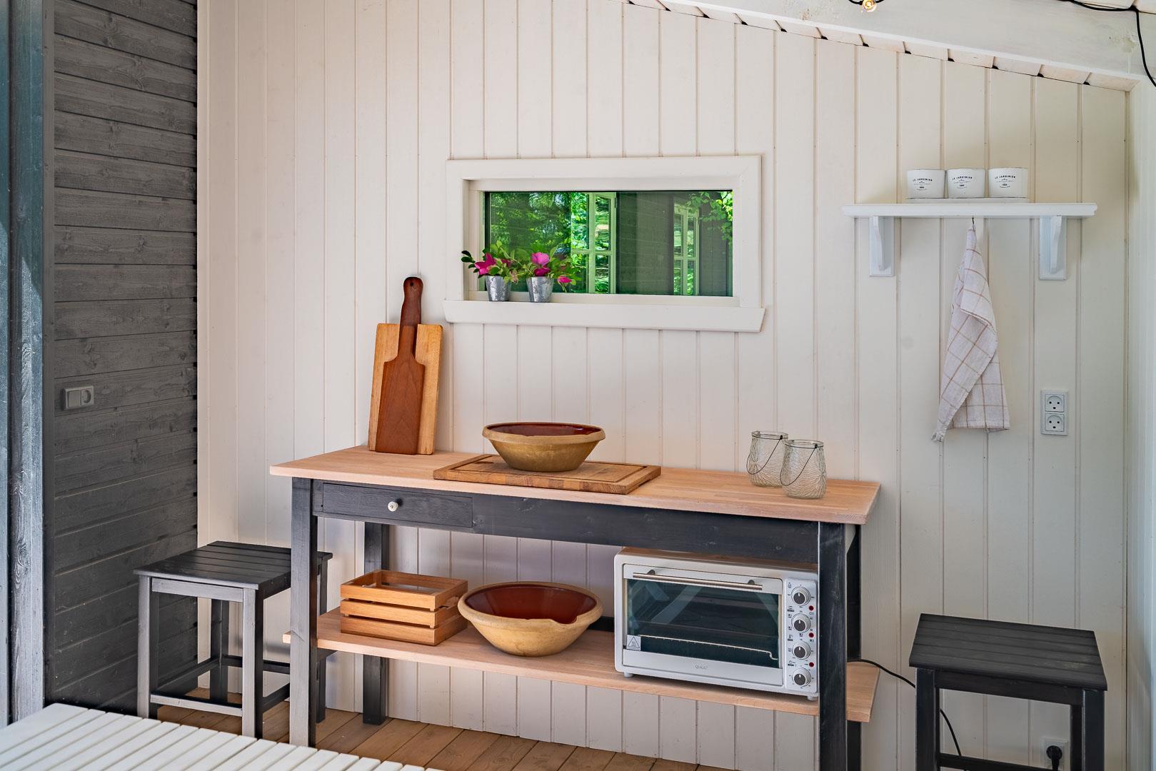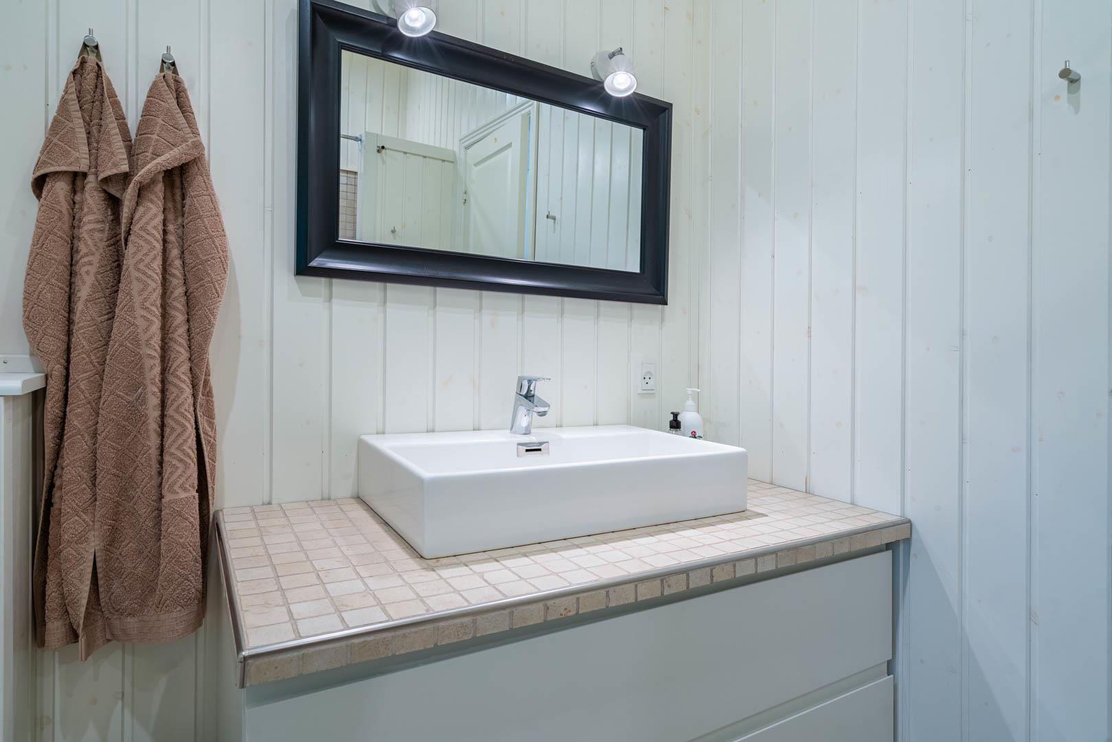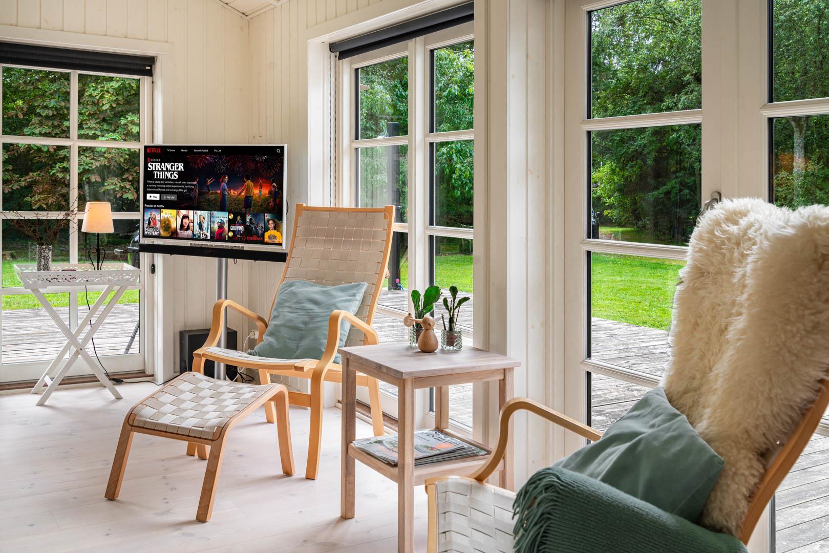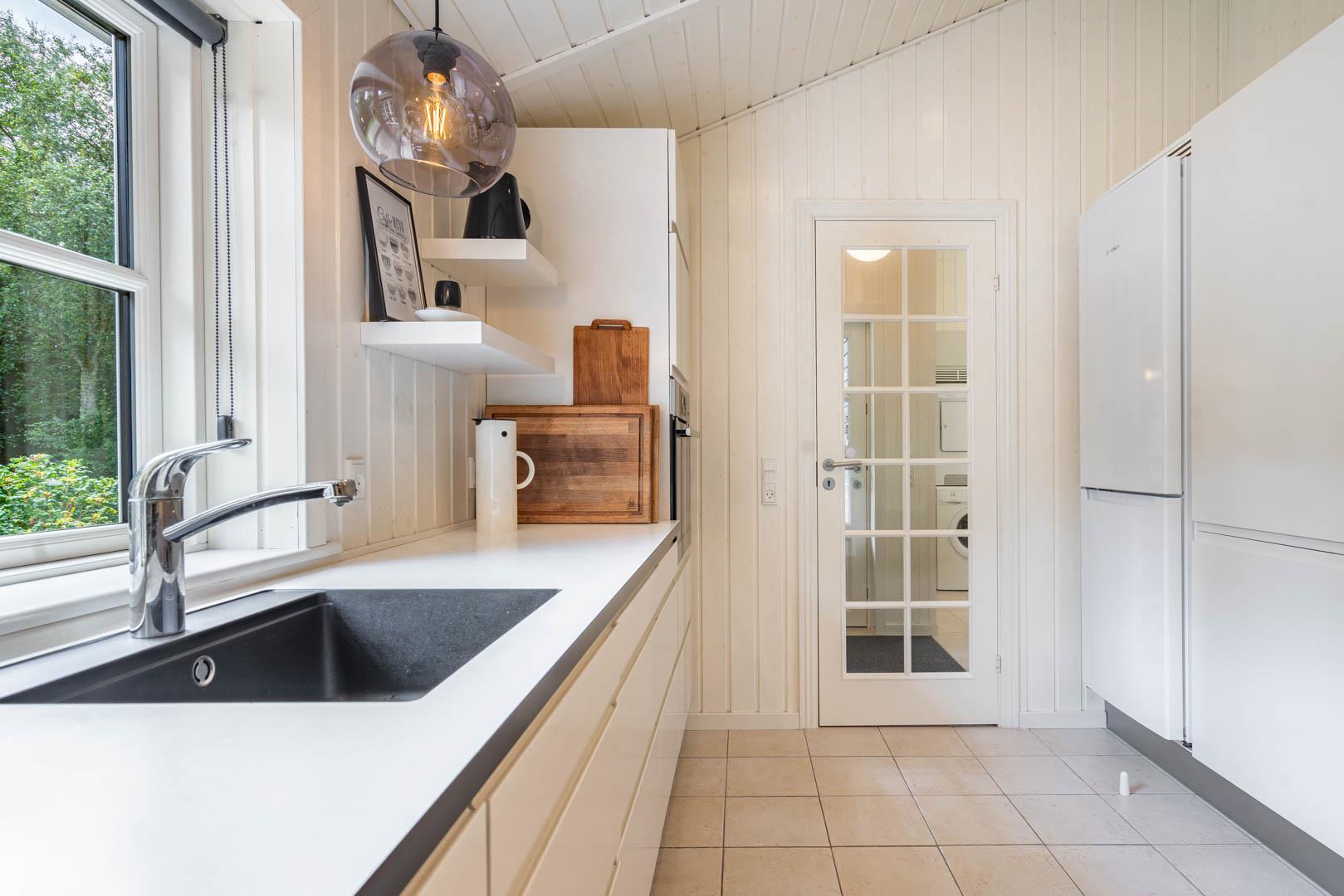 Huset er smagfuldt indrettet i skandinavisk stil, i lyse og venlige nuancer, Der er lagt vægt på kvalitet og hygge. Det dejlige køkken er åbent ind til stuen hvor store vinduer giver et godt lys, i midten af rummet står der en brændeovn. Med gode soverum, 1 badeværelser med bruseniche og badekar + et gæstetoilet, er dette et velfungerende sommerhus.