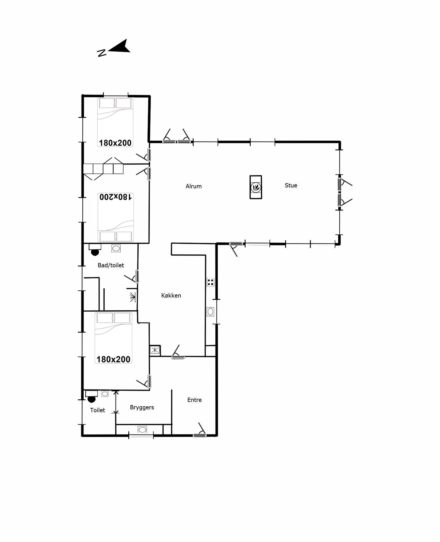 Sengestørrelse: 3 dobbeltsenge 180 x 200 cm.