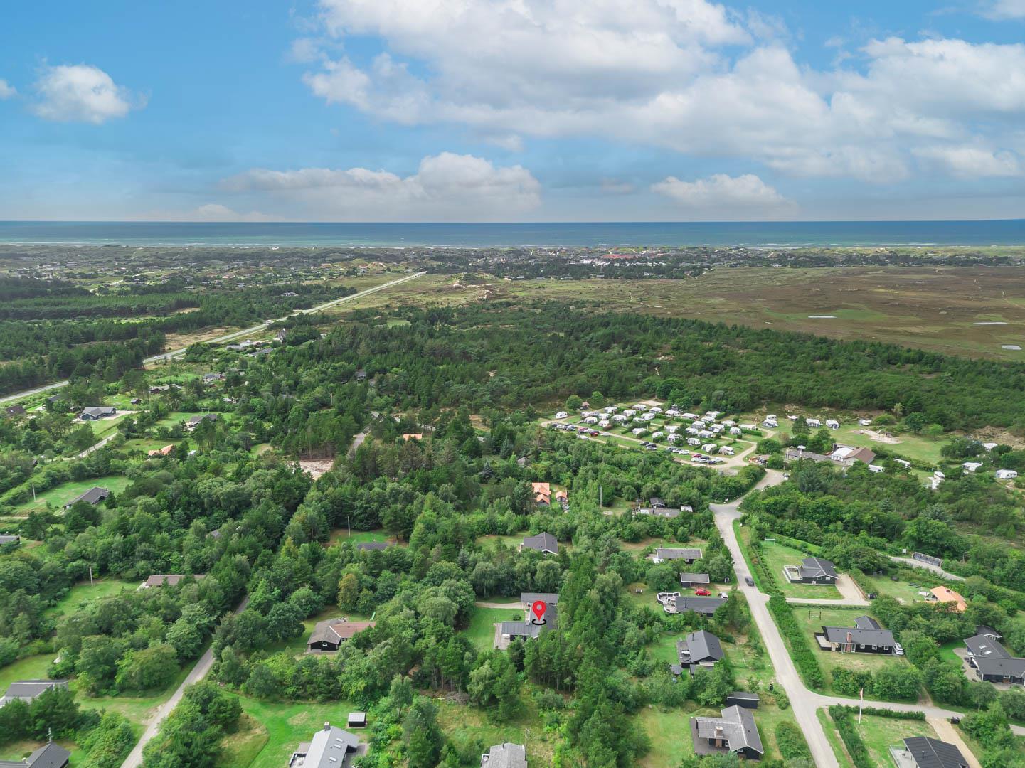 Huset ligger i Henneby ca. 2400 meter fra Vesterhavet. Det er er skønt område tæt på Blåbjerg Plantage, golfbane og Danmarks bedste Mountainbike ruter.