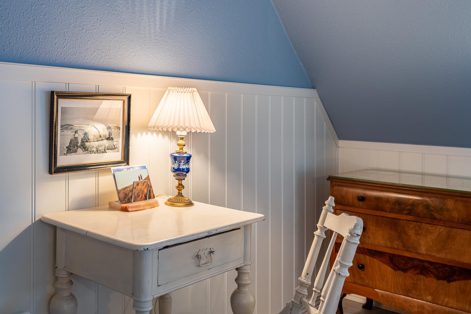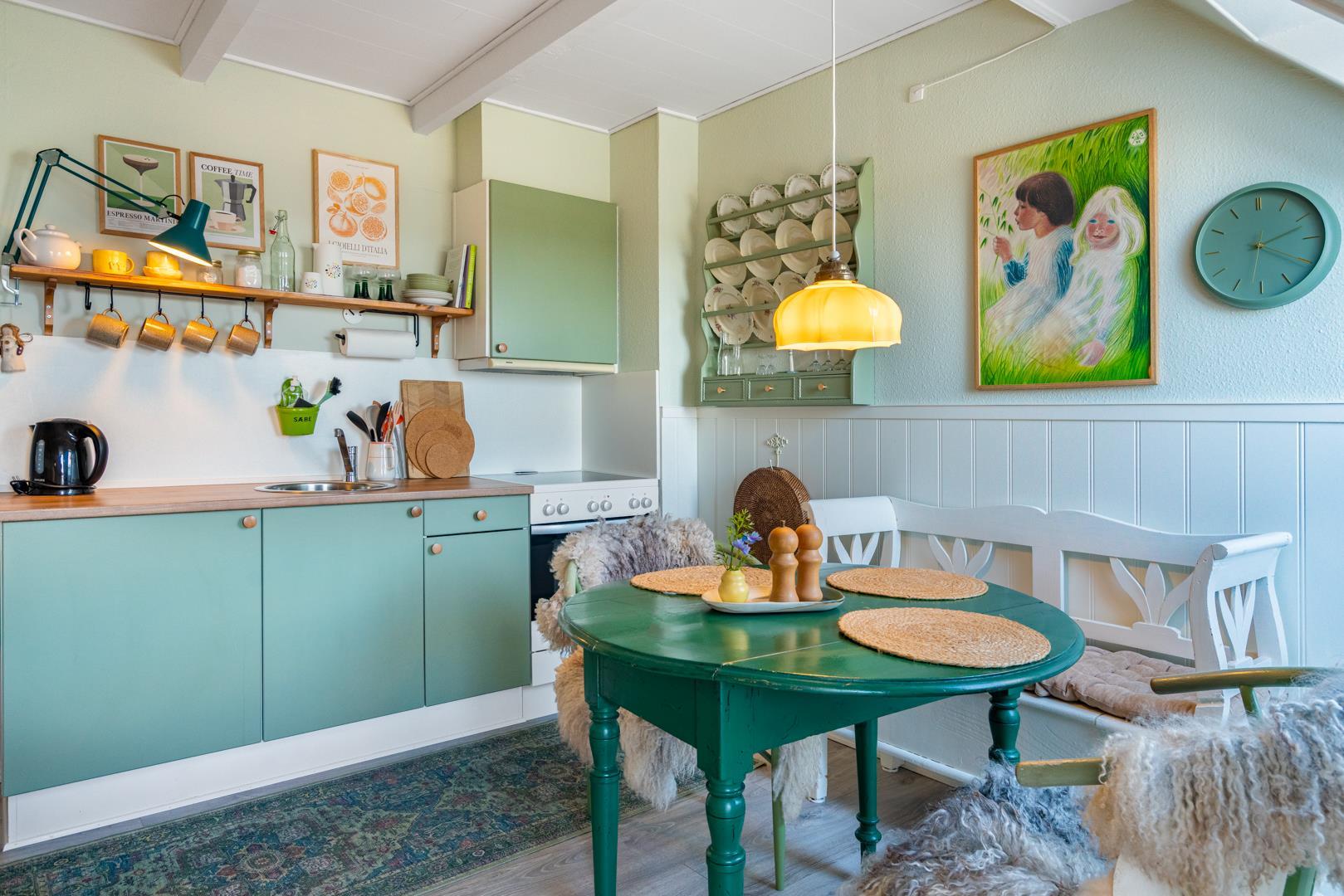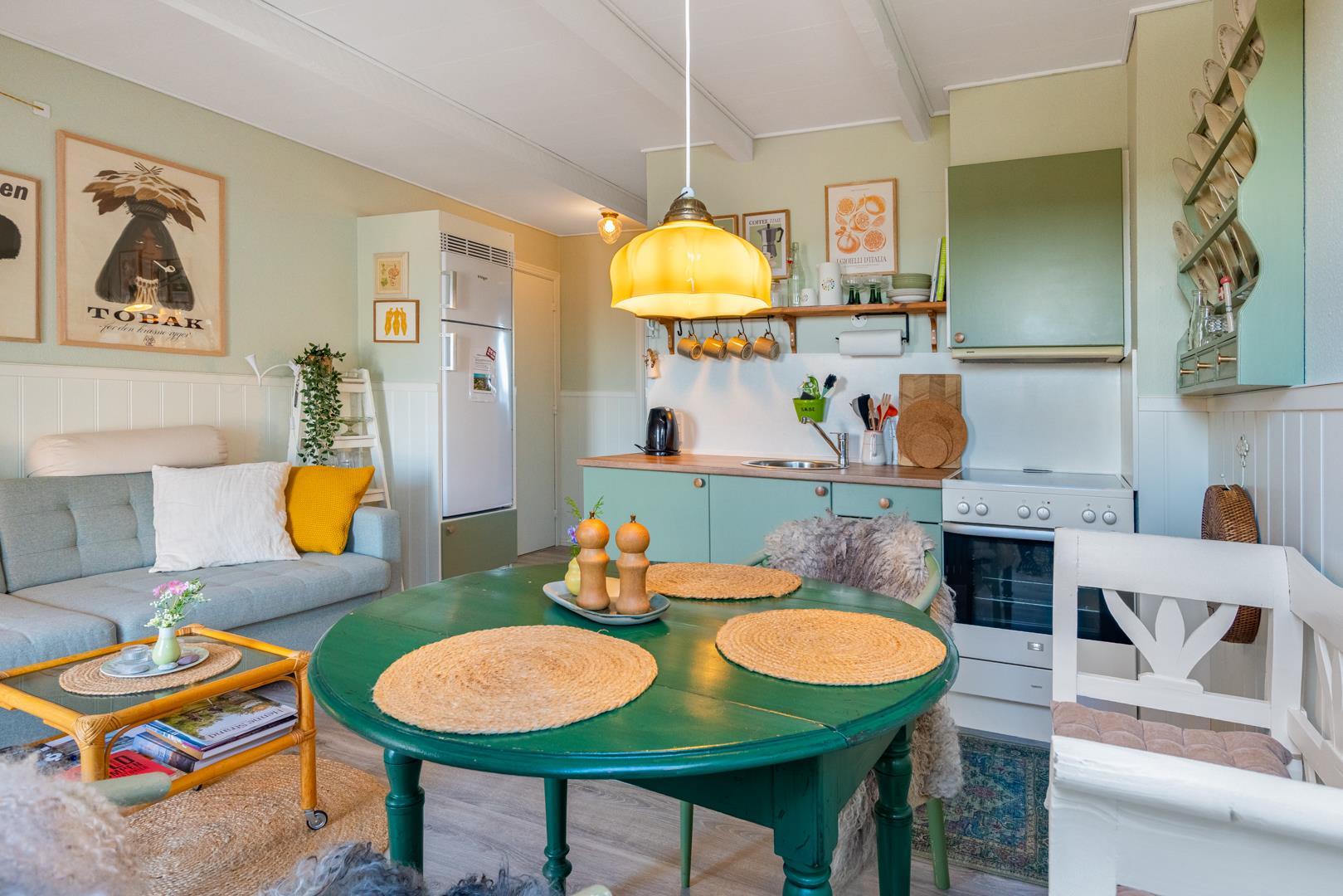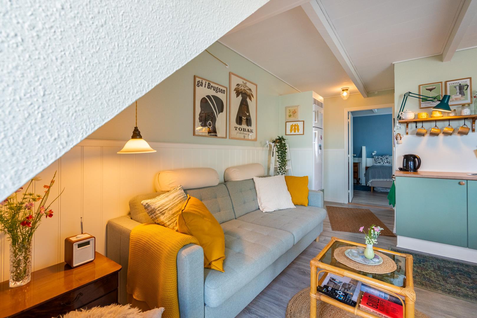 Denne charmerende ferielejlighed i Henne Strand byder på en skøn og nostalgisk stemning med varme farver, retro møbler og hyggelige detaljer, der sikrer ægte feriestemning. I stuen finder I en komfortabel sovesofa, perfekt til afslapning eller ekstra gæster. Soveværelset har en behagelig dobbeltseng og et lille nostalgisk skrivebord – ideelt til at sende postkort hjem fra jeres ferie her i Henne Strand.