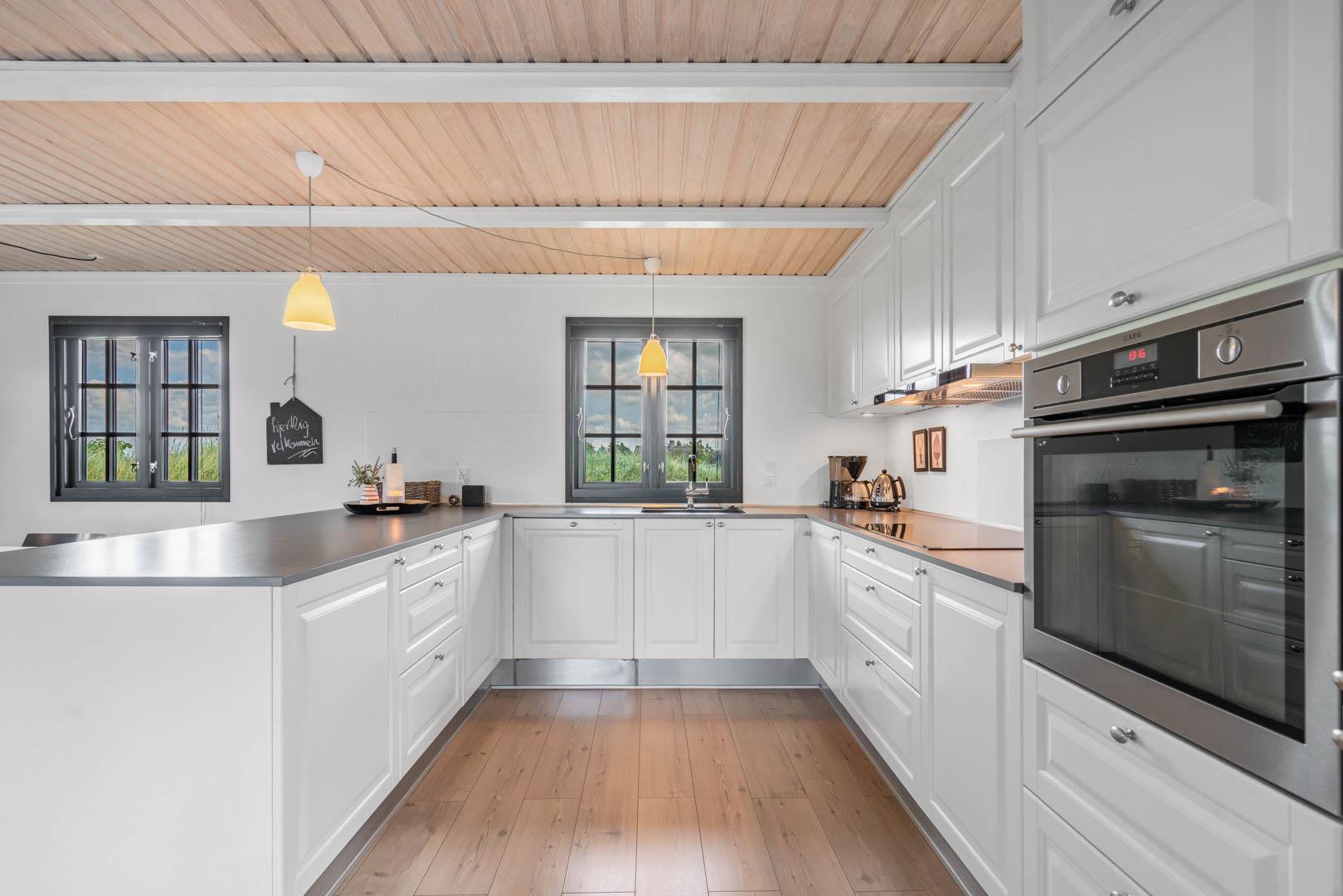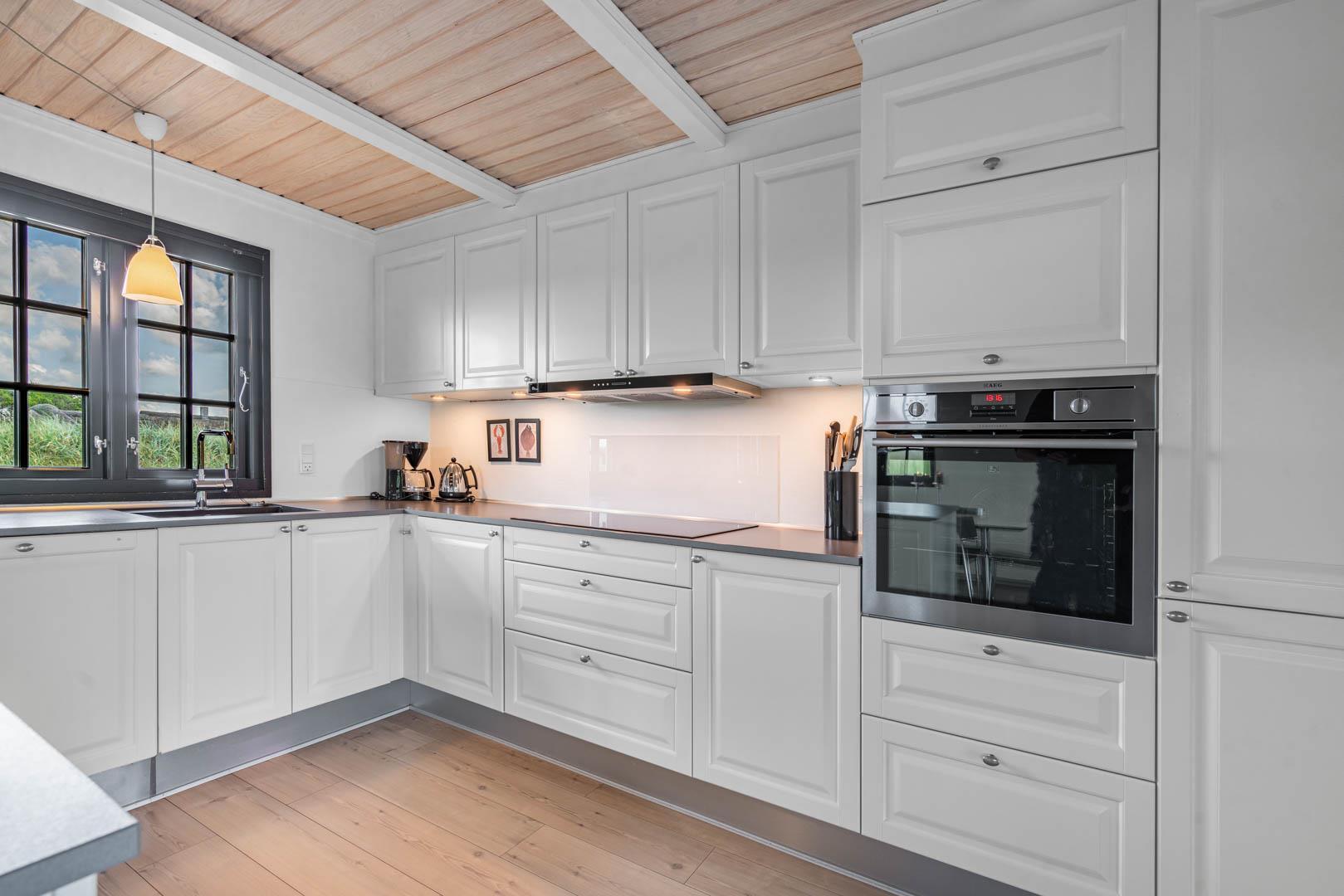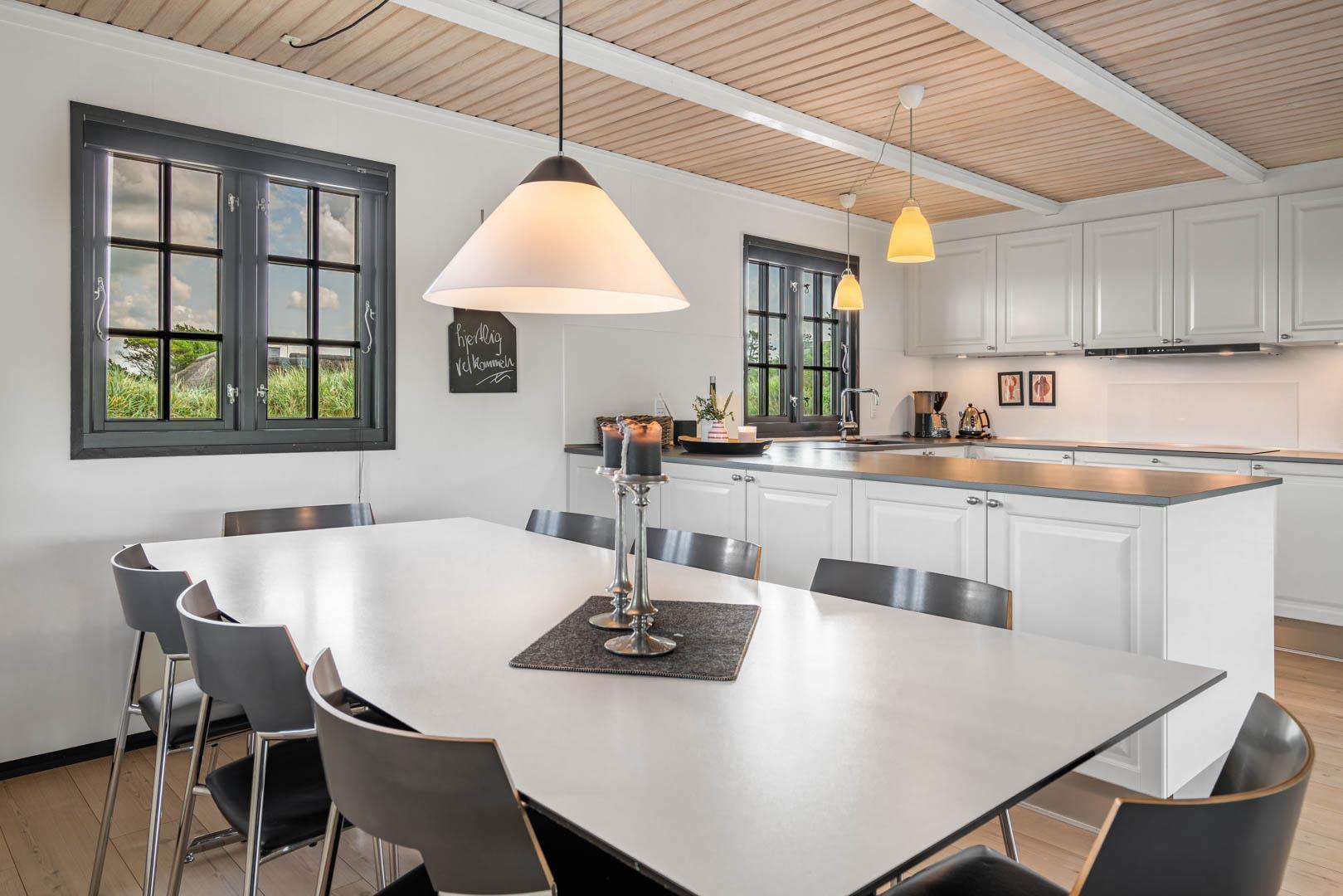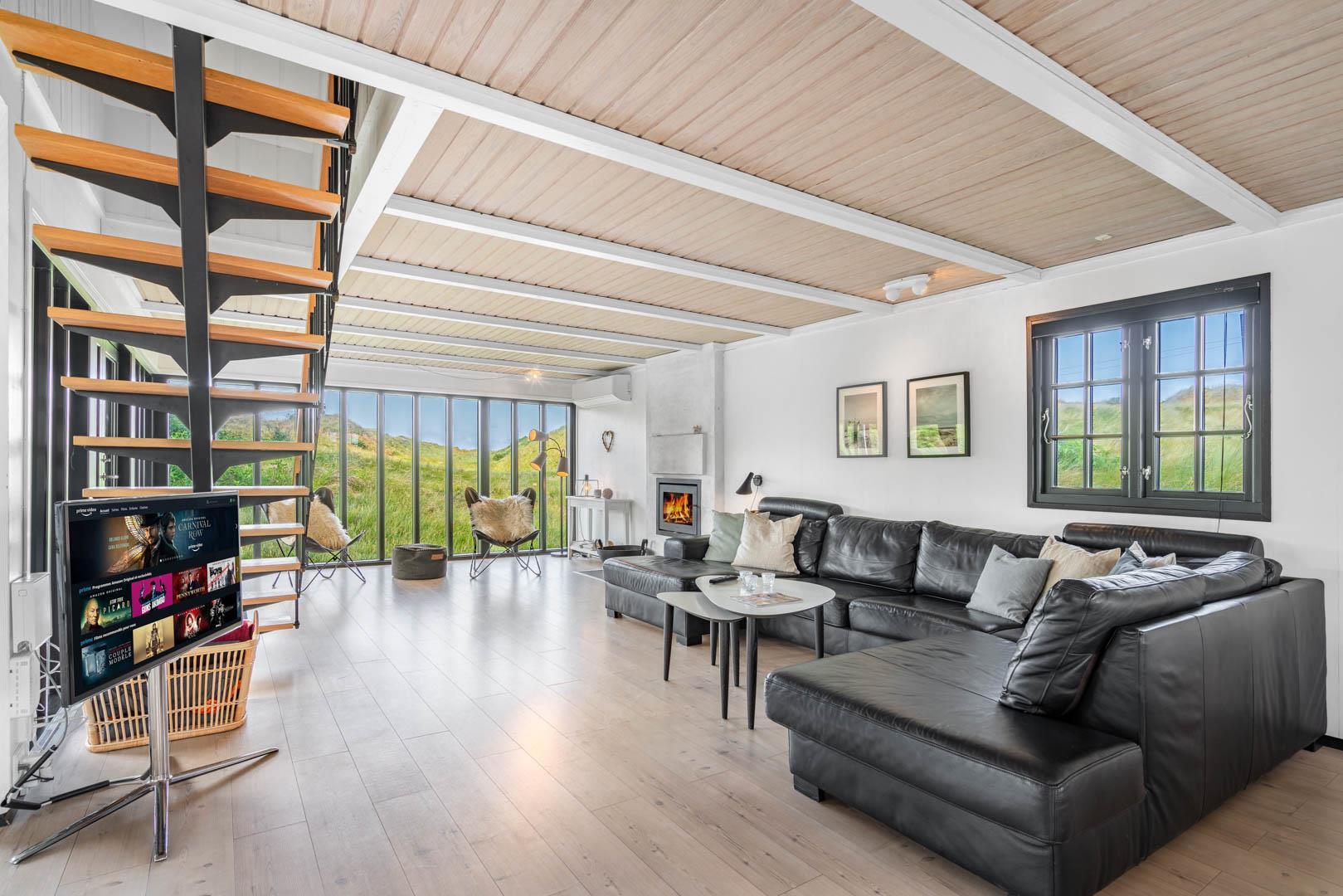 Sommerhusets charmerende ydre med stråtag, sortmalet træbeklædning og hvide sprossevinduer er som en lille reminder om en tid, hvor alt var mere simpelt, hvor himlen var mere blå og solen skinnede hele sommeren. Og det føles næsten også som en mere simpel tid, når man er på ferie her, for naturens rolige lyde, og den måde marehalmen vajer i vinden på, udenfor de store panoramavinduer, gør, at man automatisk sænker skuldrene og slipper hverdagens travlhed og bekymringer.
