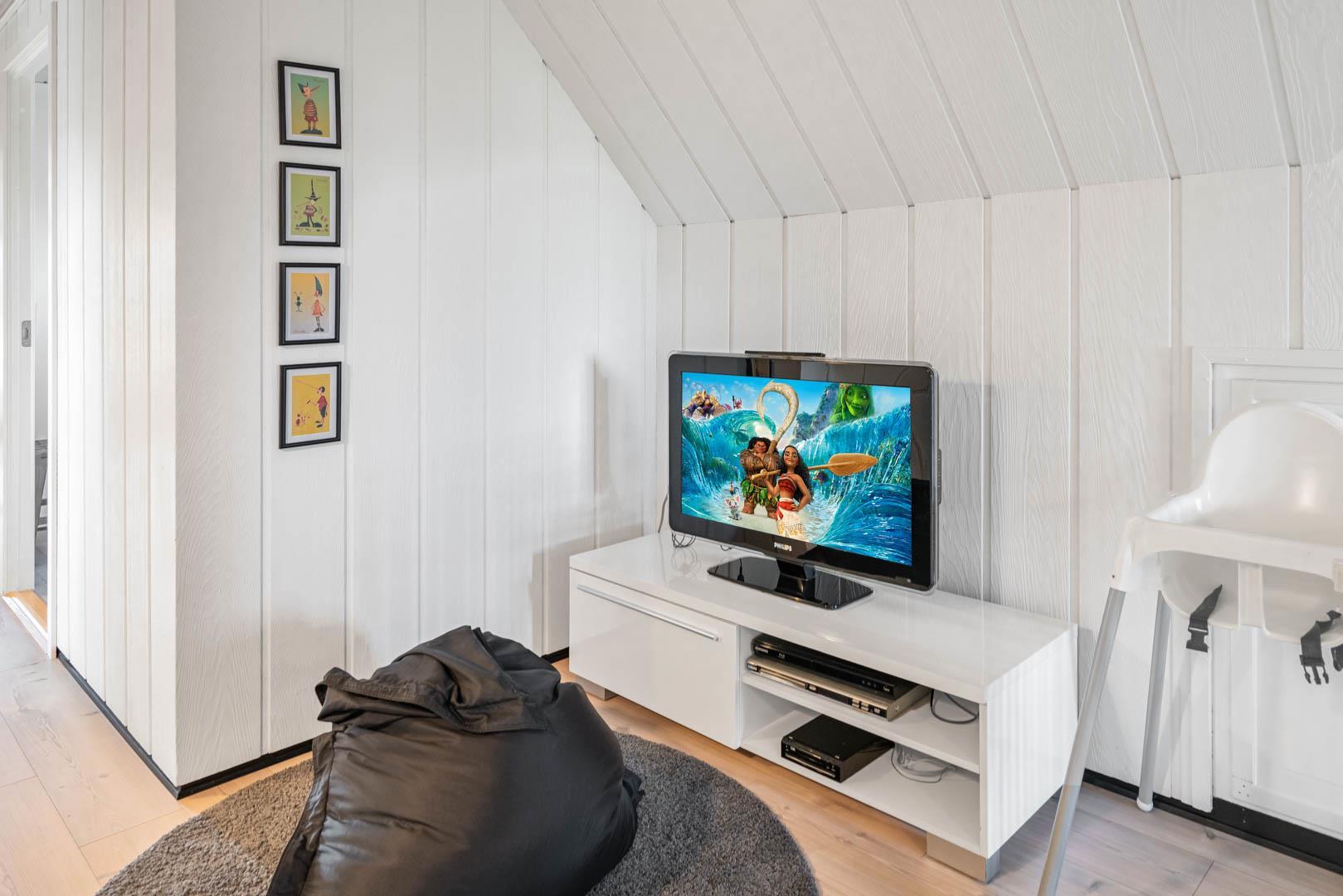 Husets 200 m2 er fordel på to plan med badeværelse i begge. Førstesalen rummer soveafdelingen, mens opholdsrummene ligger i åben forbindelse i stueplan og har indbygget pejs. Badeværelset hernede har både spabad og sauna.