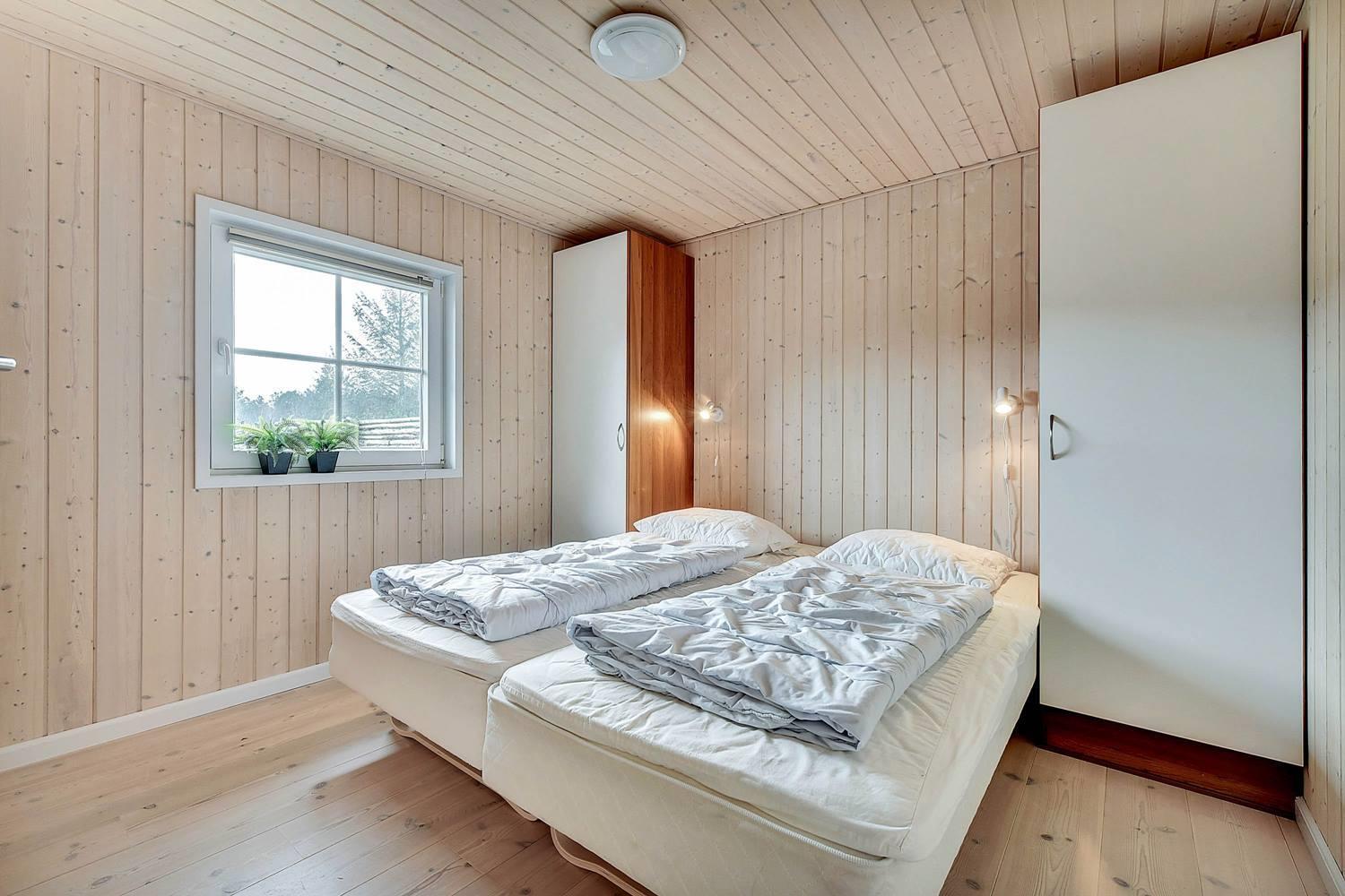 Huset rummer fire soveværelser – tre med dobbeltsenge og ét med to enkeltsenge – samt to flotte badeværelser med gulvvarme. I det ene badeværelse kan I nyde wellness med både spa og sauna. Derudover findes både vaskemaskine, tørretumbler, opvaskemaskine og pusleplads – praktisk for familier med små børn.
