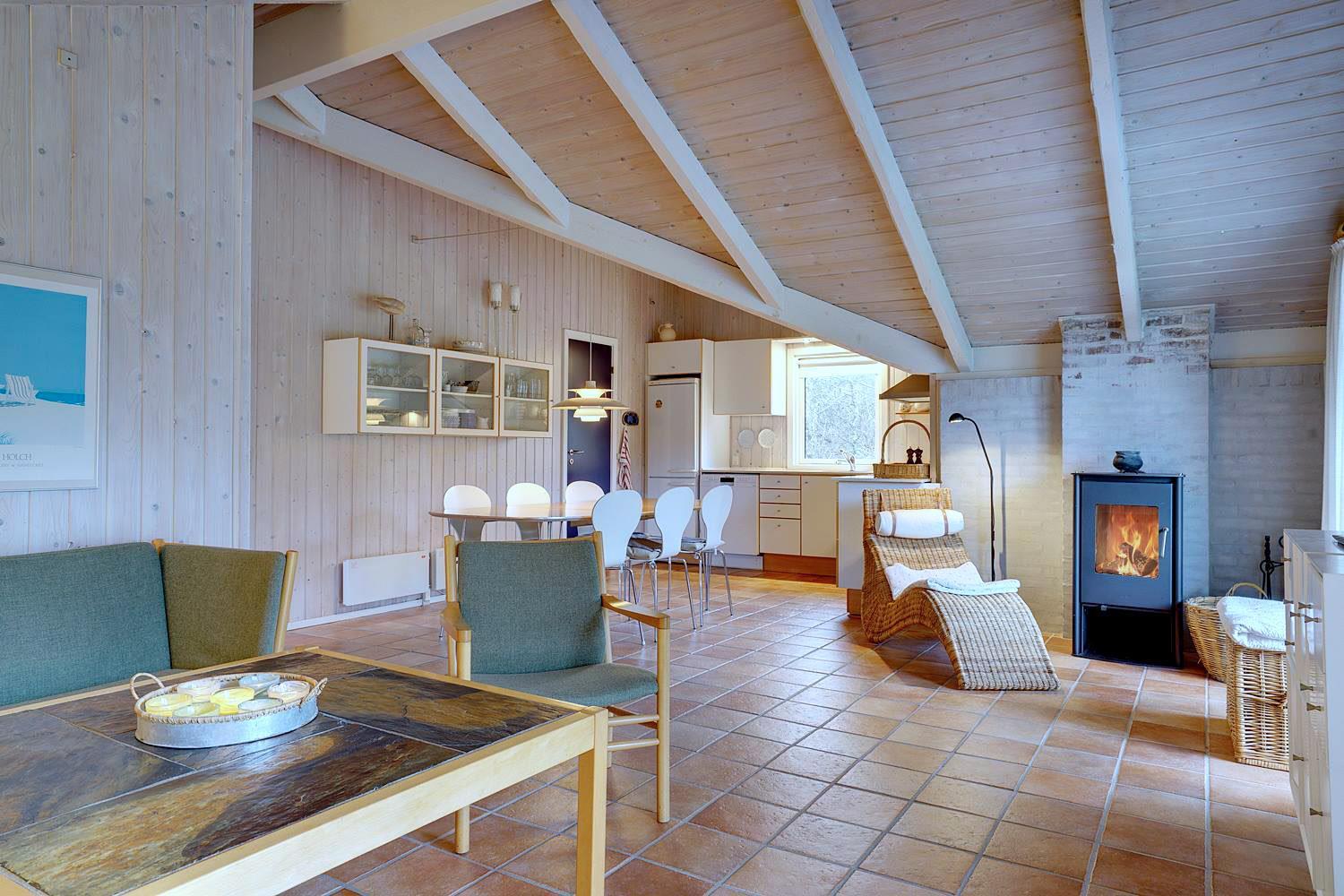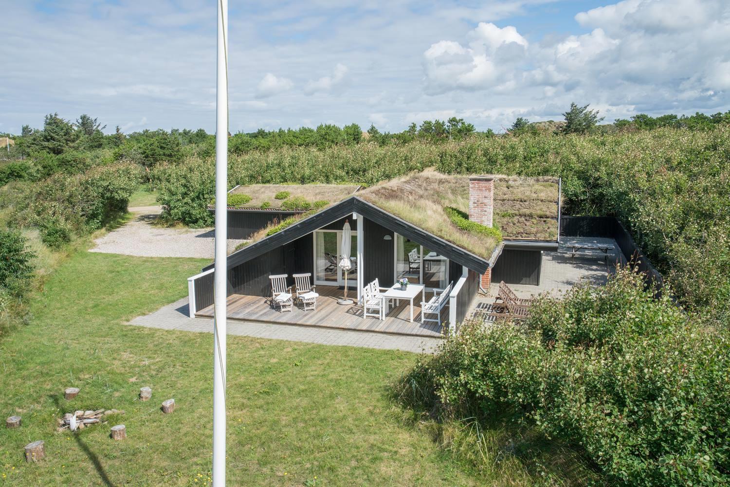 Beliggende midt i fredfyldt natur hun få hundrede meter til Vesterhavet, ligger dette personligt indrettet feriehus kun et par hundrede meter fra de smukke klitter ved Henne Strand. Huset fremstår overalt meget velholdt. I husets stue kan der slappes af foran brændeovnen eller i det hyggelige sofa hjørne. Husets veludstyrede køkken er i åben forbindelse med stuen, hvor fra der er udgang til den dejlige terrasser som omkranser huset. Huset råder over 3 gode soverum. Et skønt feriehus midt i smukt klitlandskab og i gå afstand til stranden.