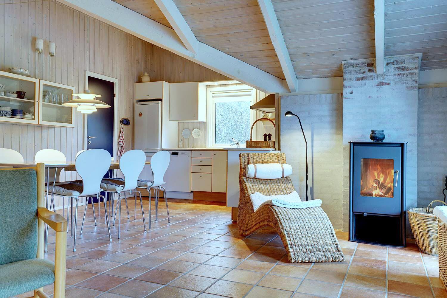 Hyggeligt og velholdt feriehus tæt på Vesterhavet og klitterne ved Henne Strand med terrasse og brændeovn.