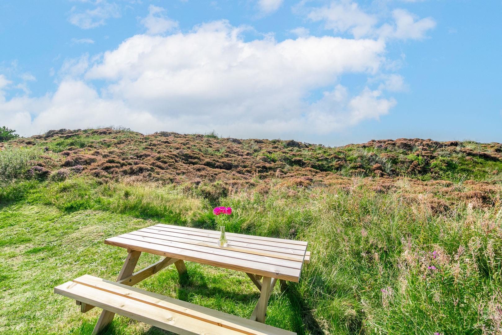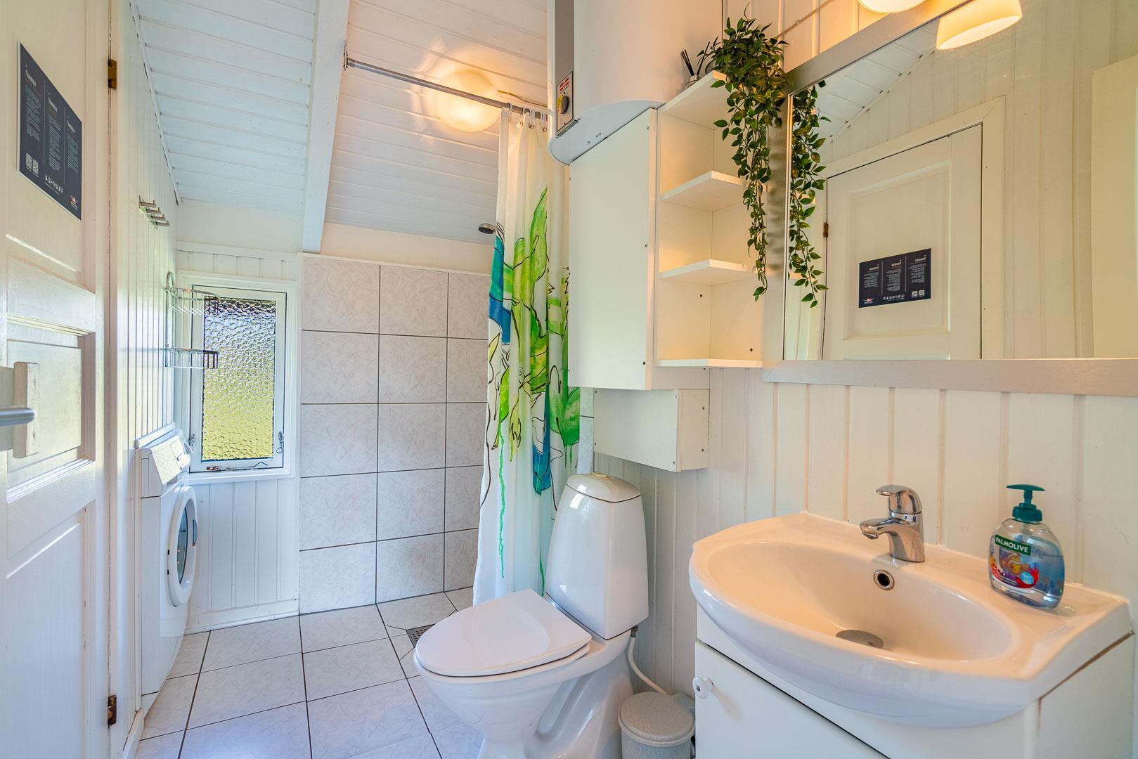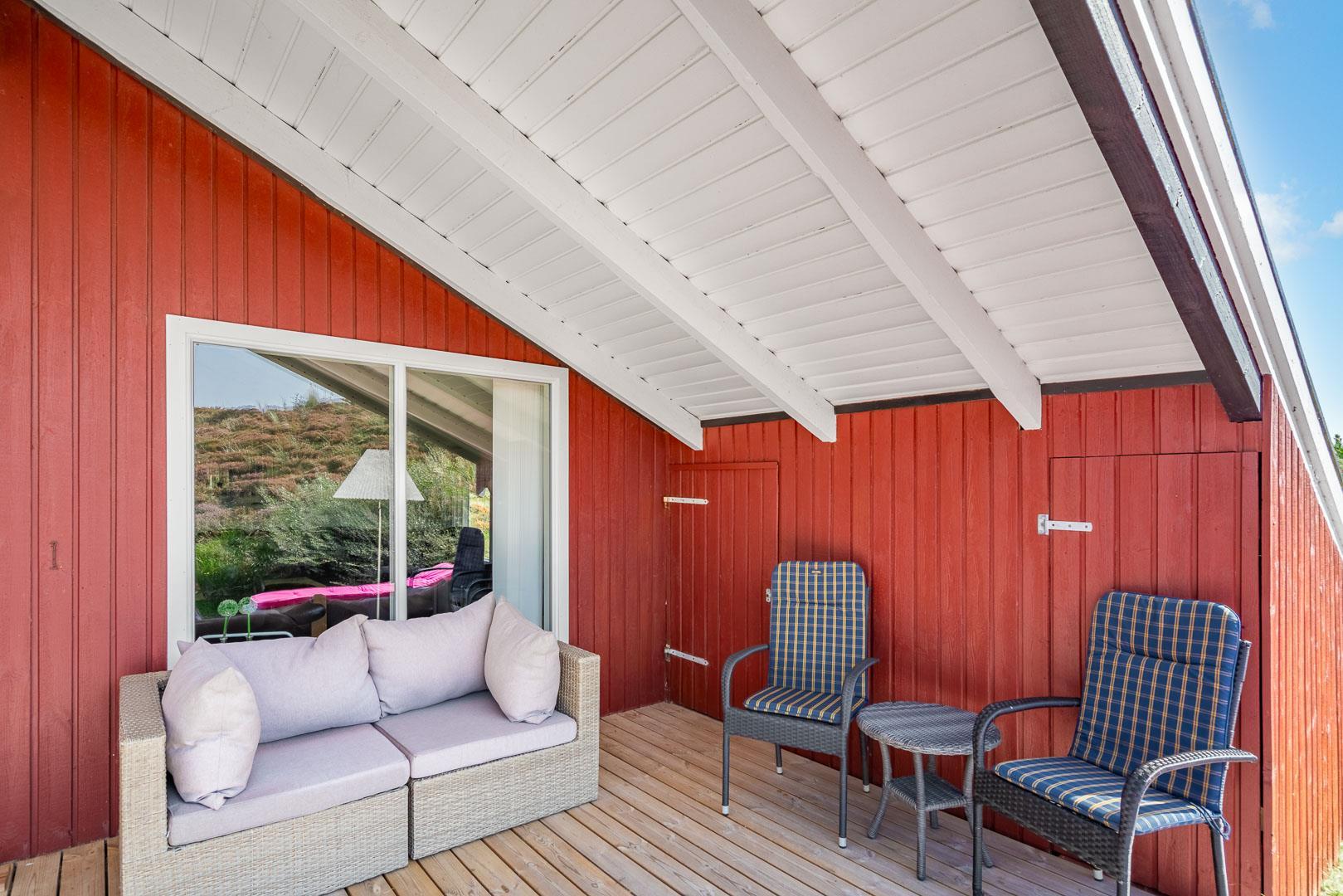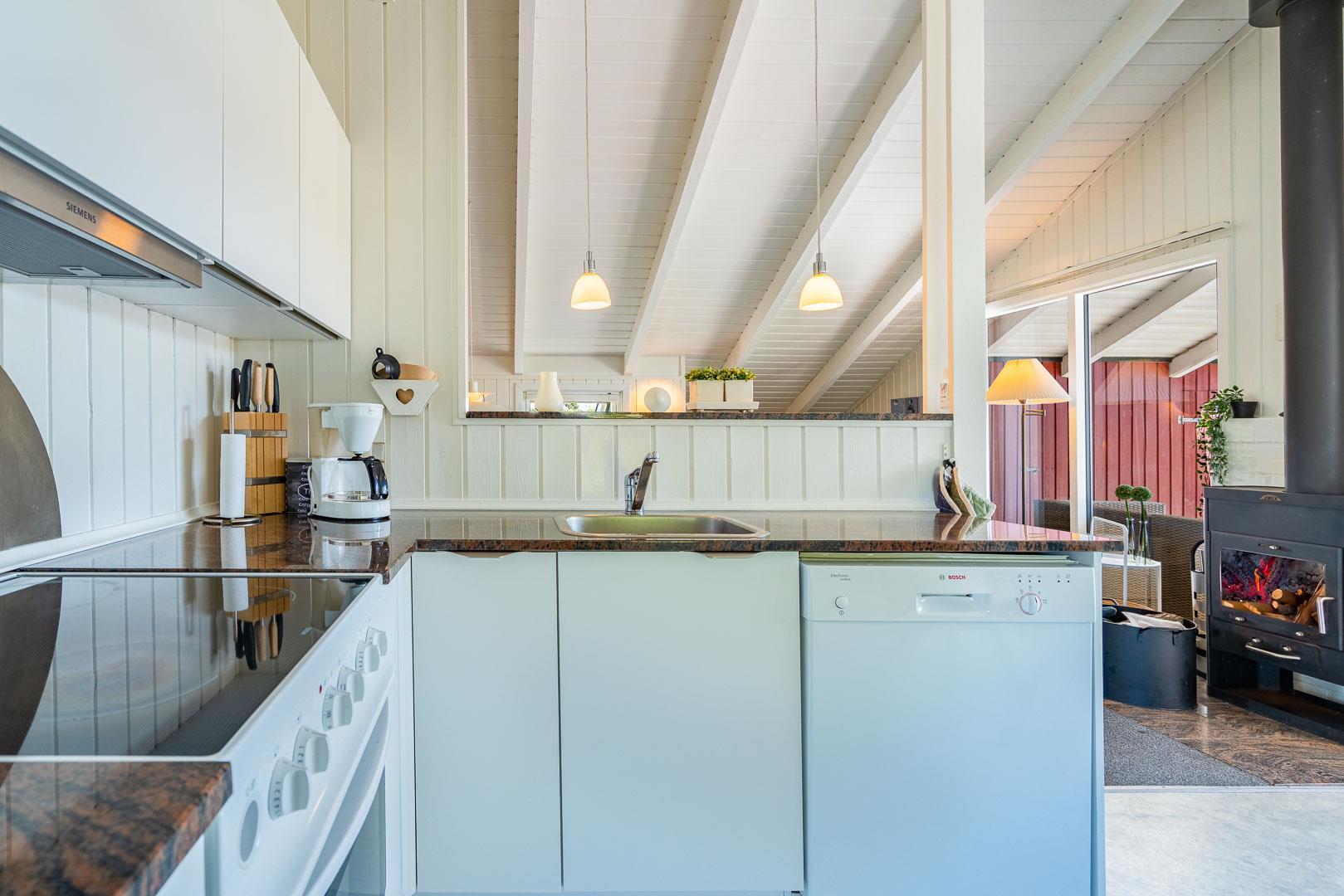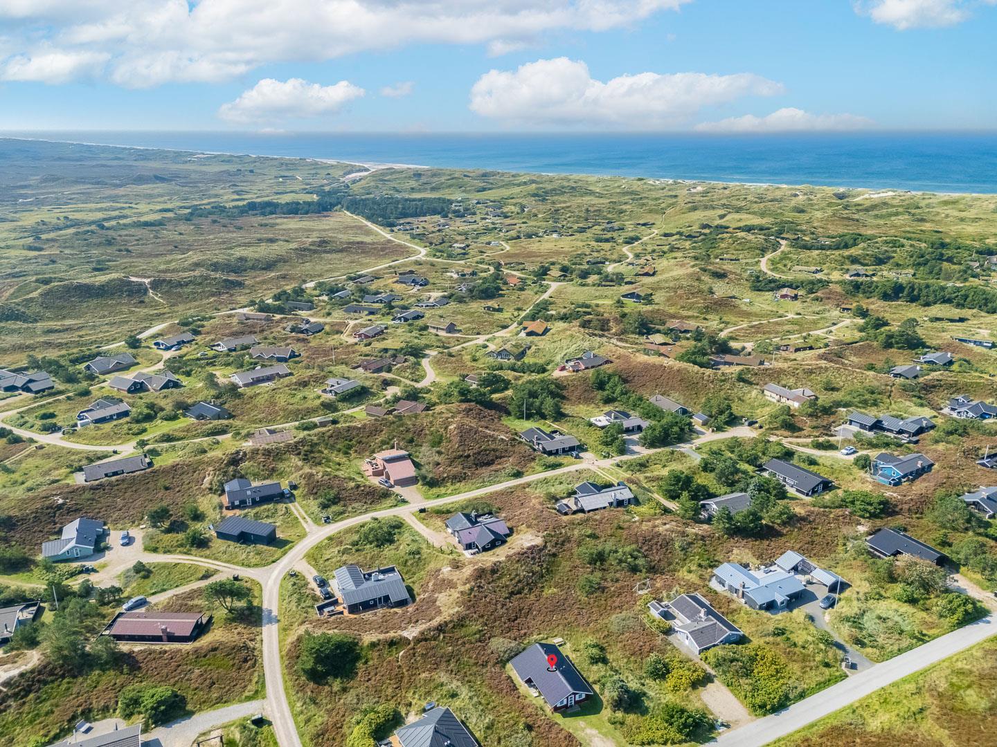 Dette velpassede feriehus med dejlig badeværelse, er beliggende på en kuperet klitgrund. Kombineret køkken -spisekrog og hyggelig stue med loft til kip og brændeovn, og som er indrettet med pæne og gode møbler. Der er dejlige og ugeneret delvis overdækket træterrasse.