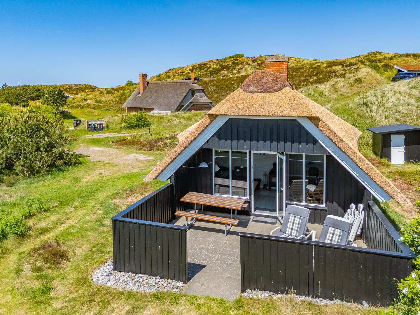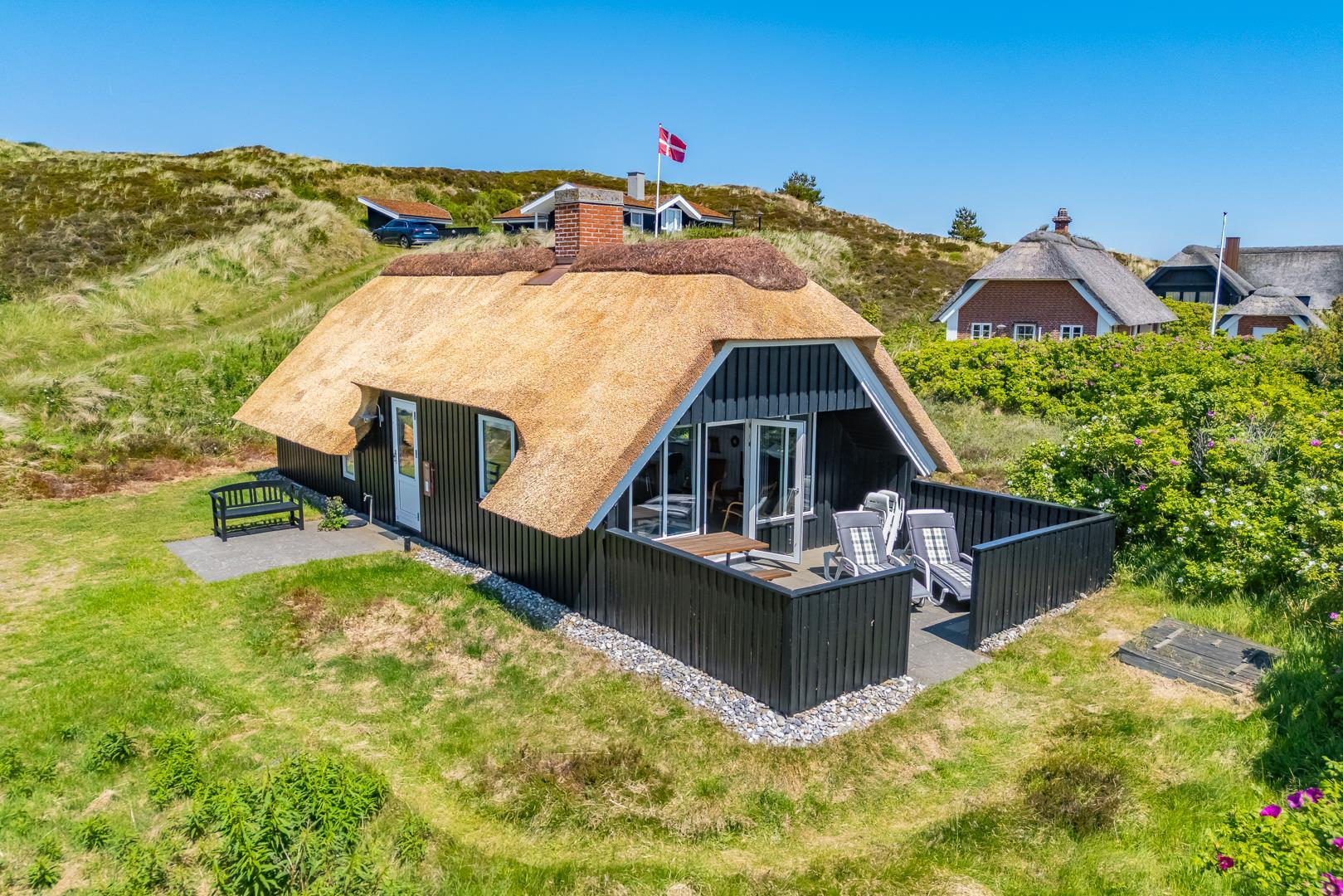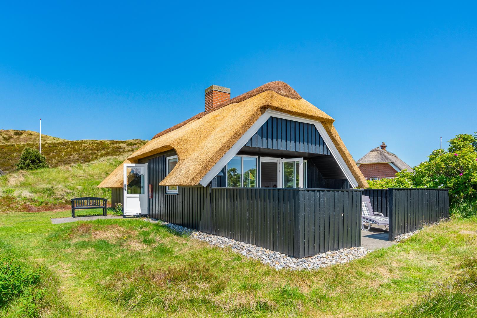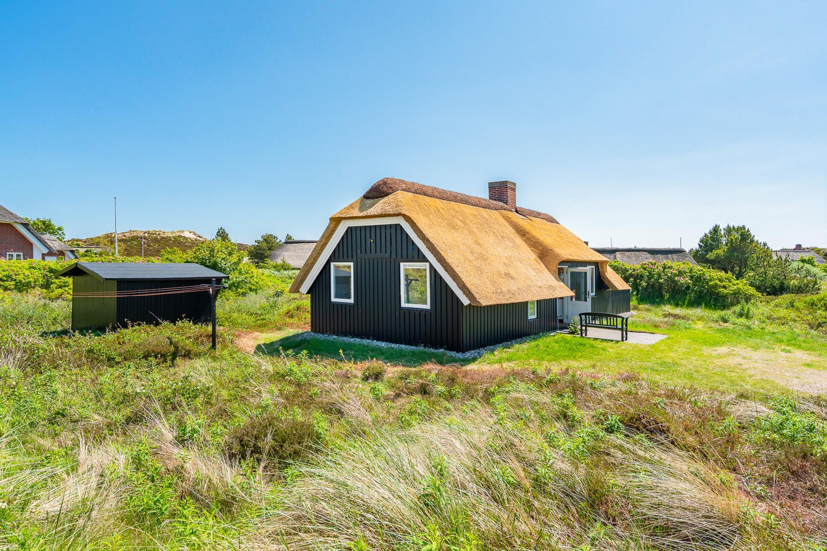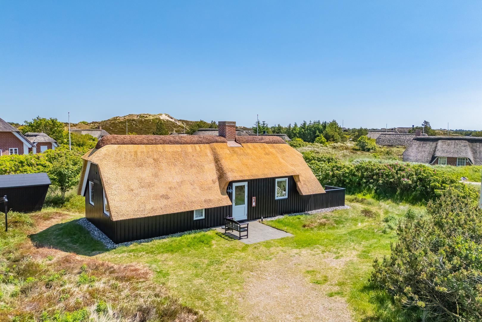 Velholdt, stråtækt feriehus som løbende er moderniseret. Huset er beliggende på en større klitgrund i meget rolige omgivelser. Feriehuset fremstår meget hyggeligt og har en rigtig god beliggenhed ved Henne Strand Fra feriehusets hyggelige stue med brændeovn, er der udgang til feriehusets gode terrasse. Et rigtig dejlig feriehus til den lille familie.