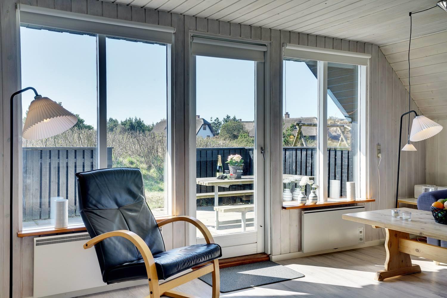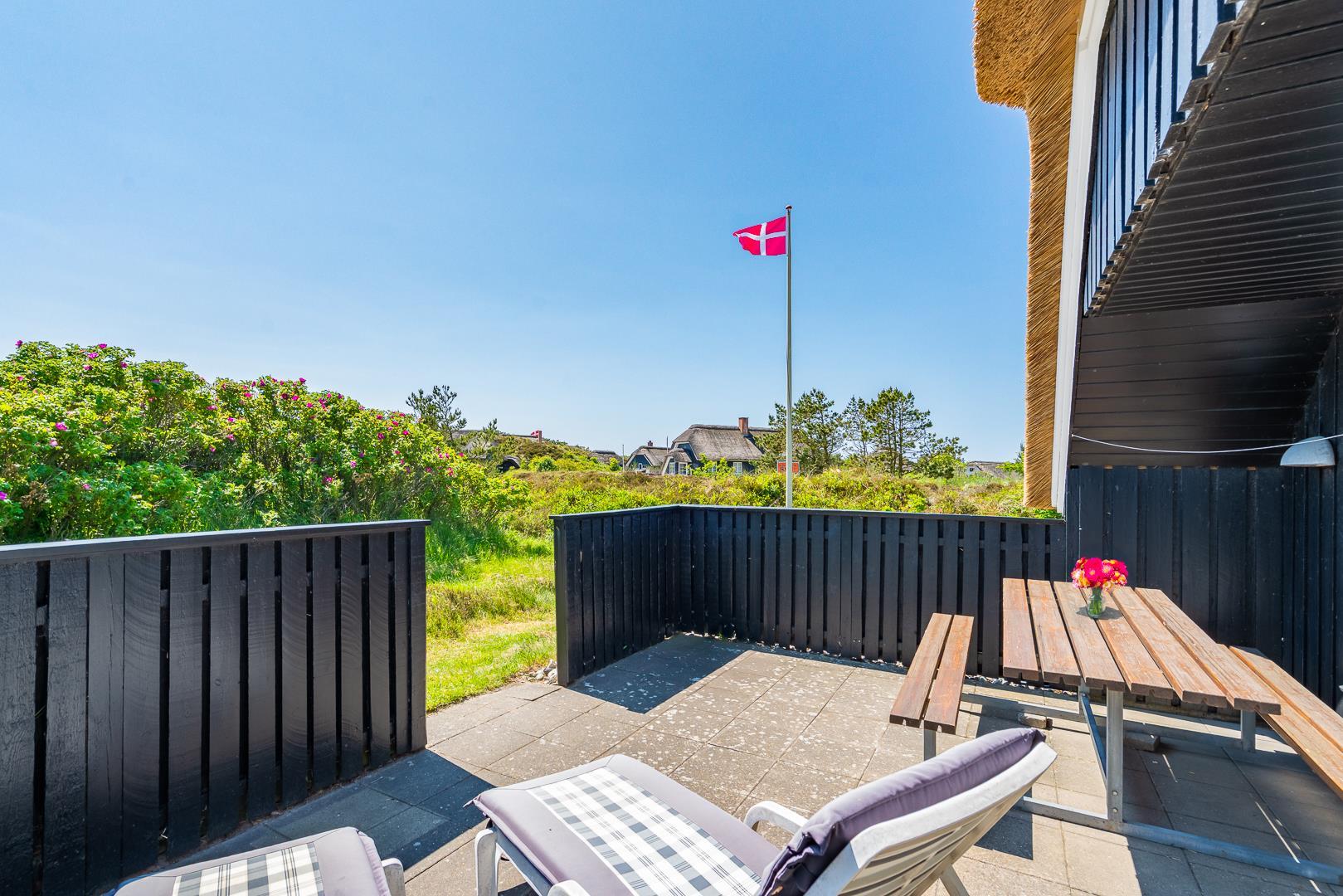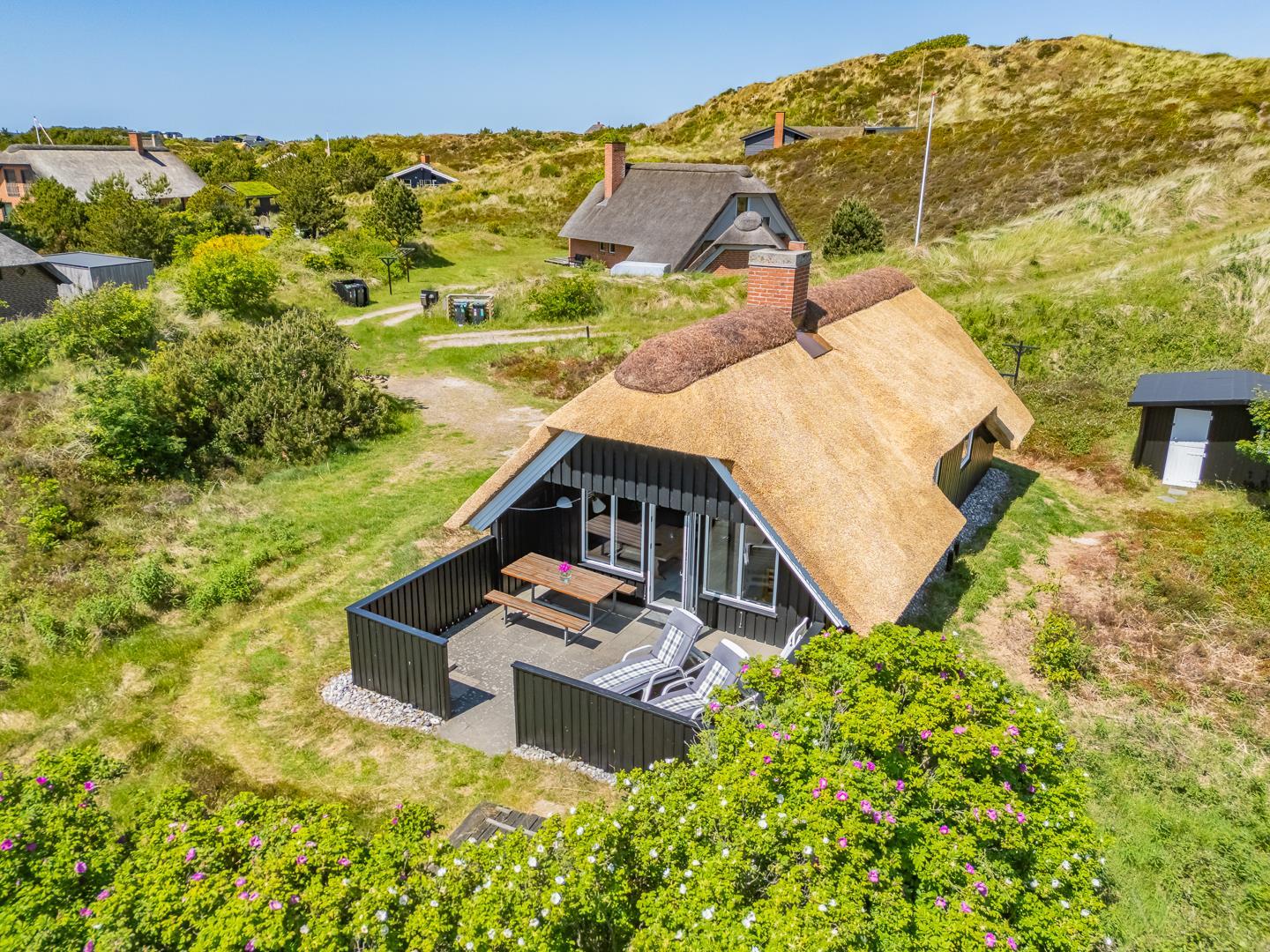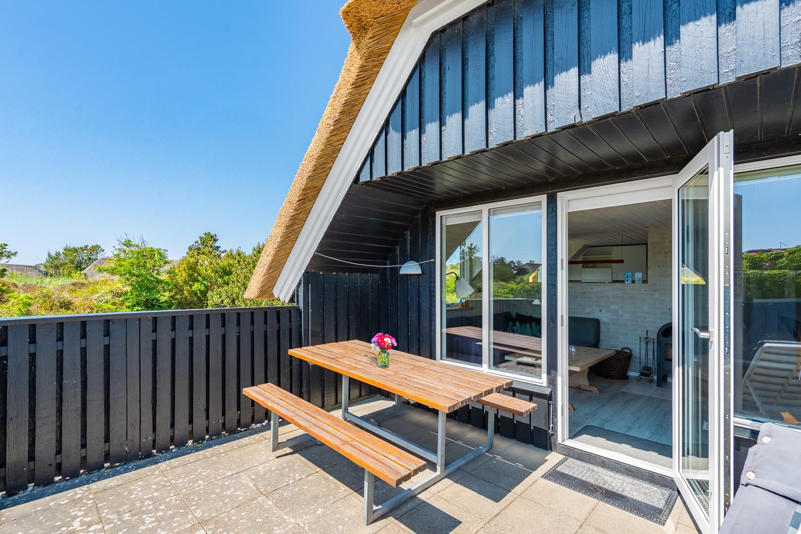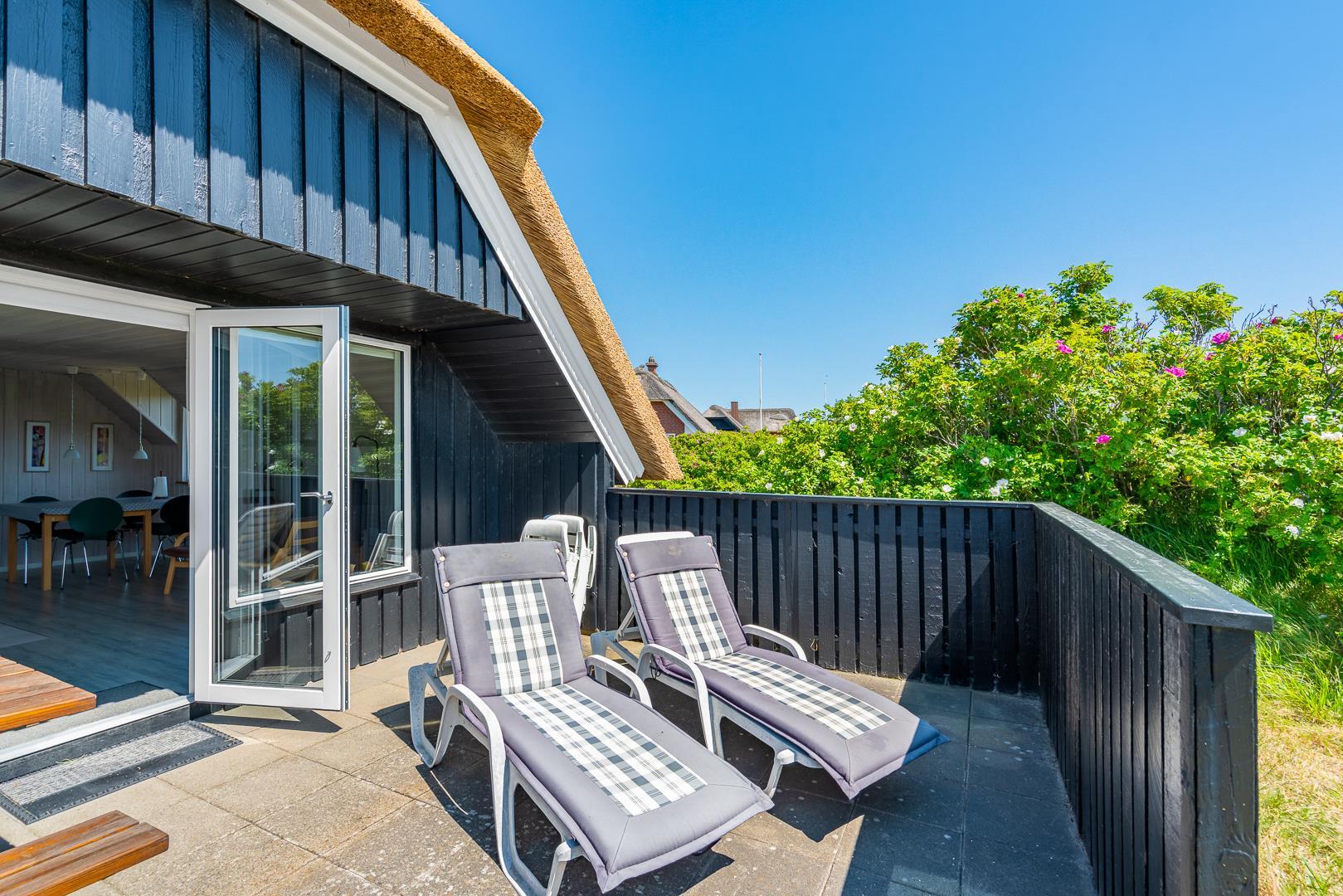 Velholdt, stråtækt feriehus som løbende er moderniseret. Huset er beliggende på en større klitgrund i meget rolige omgivelser. Feriehuset fremstår meget hyggeligt og har en rigtig god beliggenhed ved Henne Strand Fra feriehusets hyggelige stue med brændeovn, er der udgang til feriehusets gode terrasse. Et rigtig dejlig feriehus til den lille familie.