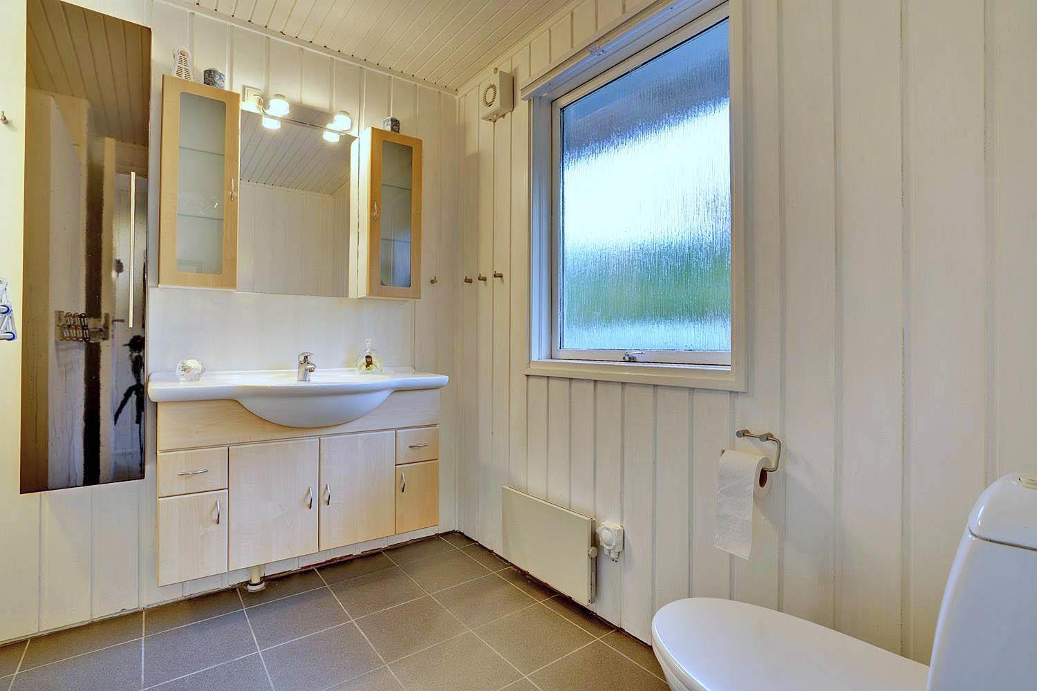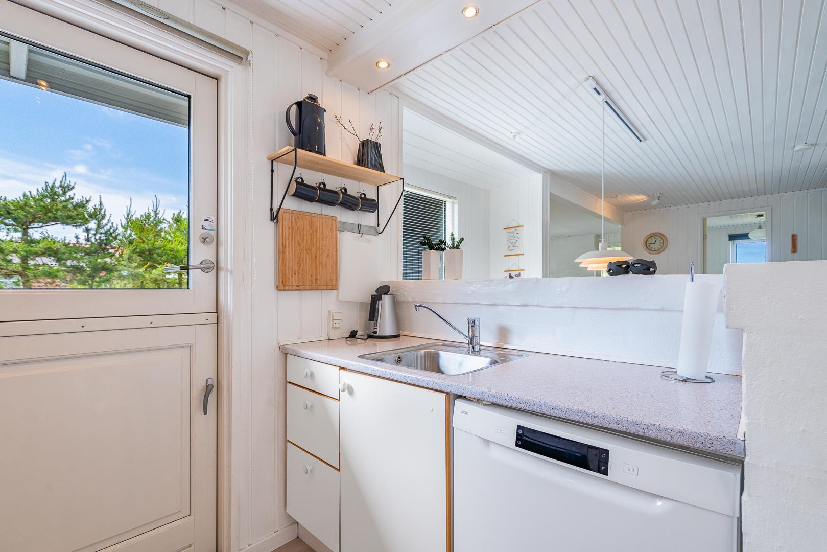 Derudover byder huset på et badeværelse med sauna, hvor du kan slappe af efter en dag på stranden. Det veludstyrede køkken er i åben forbindelse med stuen, så du kan lave mad, mens du stadig er en del af familiehyggen.