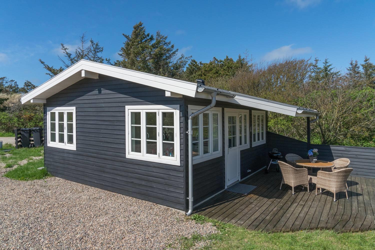 Et skønt lille SOMMERHUS ikke langt fra Vesterhavet og Henne Strands hyggelige strandbutikker, restauranter og caféer. Har I cyklen med er der rig mulighed for at få dem luftet på de mange cykelstier der er i området, der er også kun 5 minutters bilkørsel til Henne Golfklub.