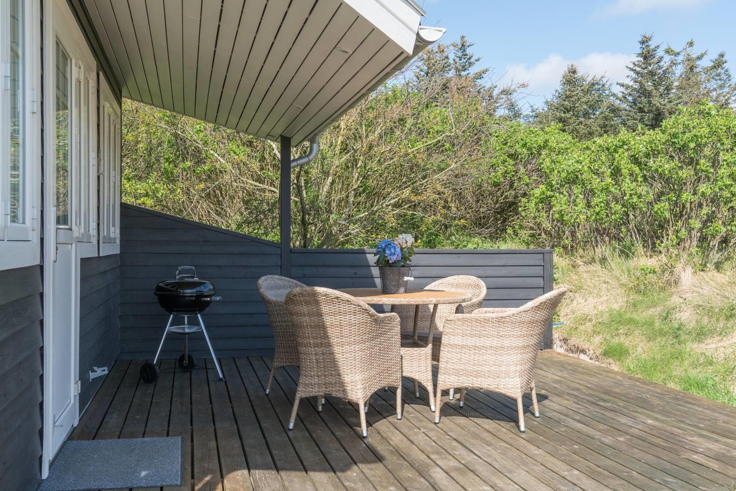 Nyd freden, solen og grillaftenen på den ugenerede delvis overdækkede træterrasse.