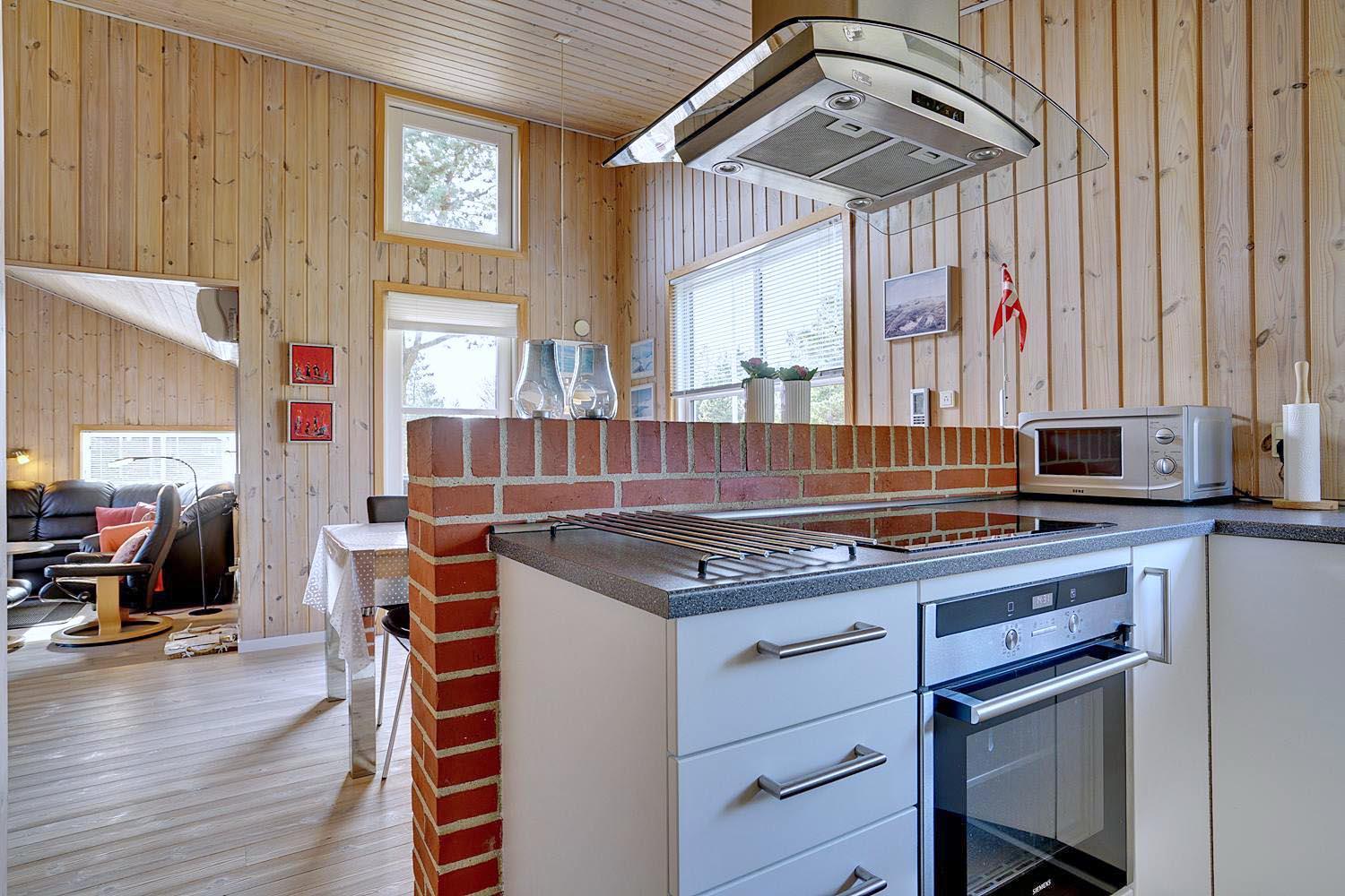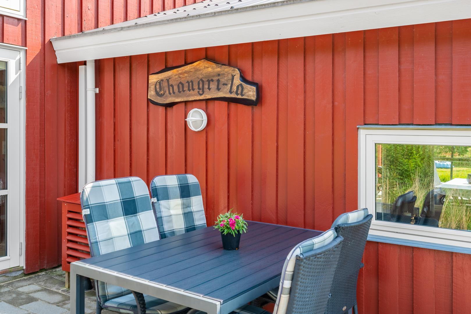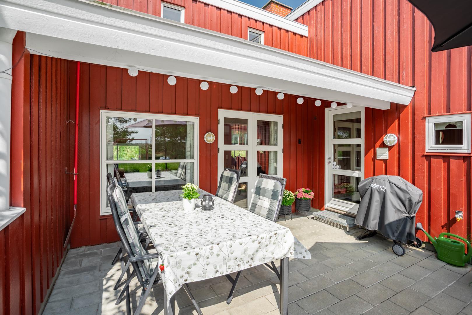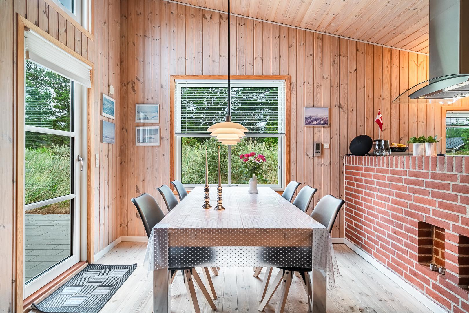 Huset er smagfuldt indrettet med pæne og komfortable møbler, der skaber en hyggelig og indbydende atmosfære. Der er trægulve i huset. Det pæne køkken er kombineret med en spiseafdeling, der gør det nemt at samles til gode måltider. Den hyggelige stue har direkte udgang til en delvist overdækket, ugeneret terrasse samt en mindre terrasse mod vest, hvor du kan nyde aftensolen.