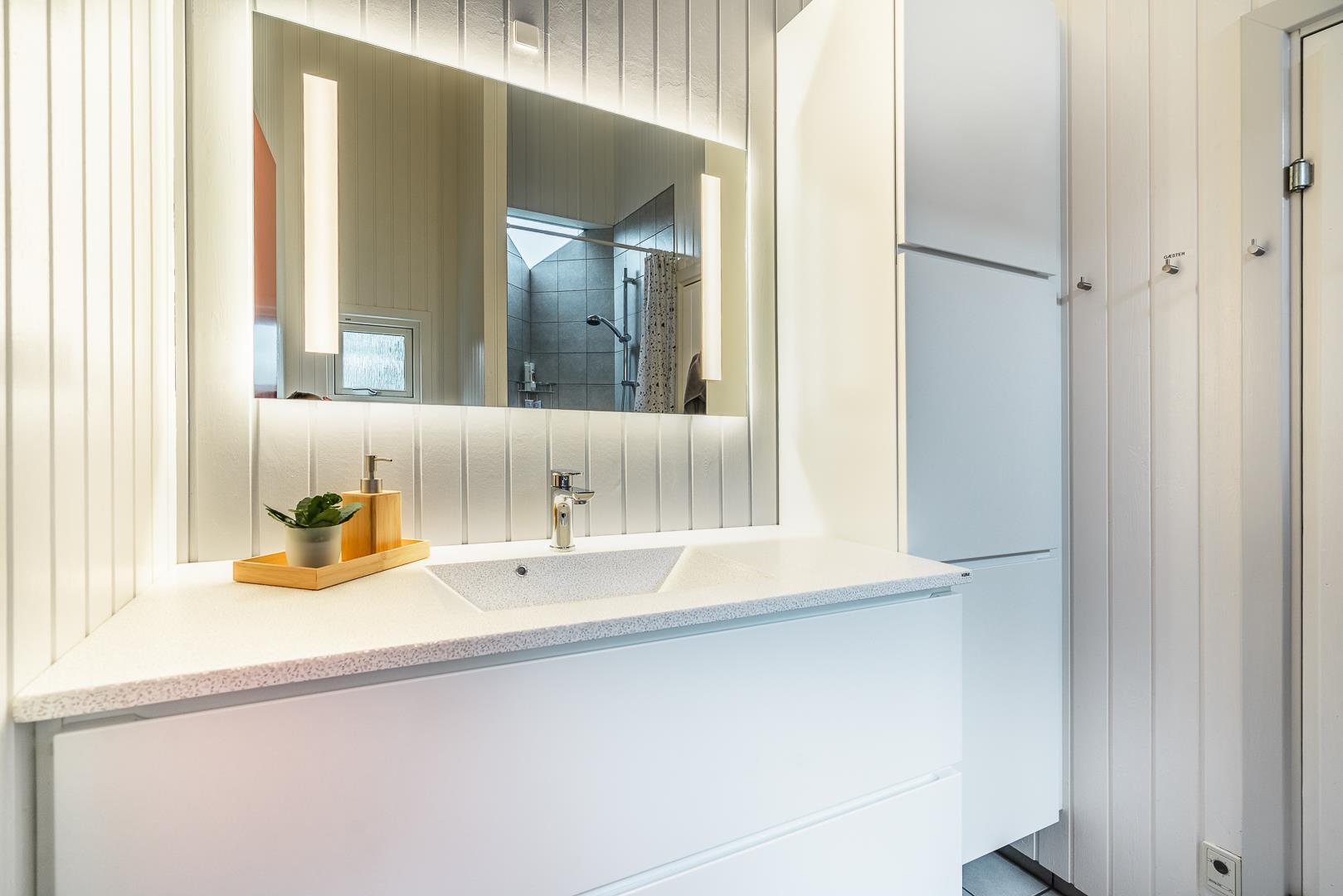 Badeværelset blev moderniseret i 2022 og fremstår flot og tidssvarende. Derudover er huset udstyret med Smart TV, hurtigt internet (200/200 Mbit) og komfortable senge, der sikrer en god nats søvn.