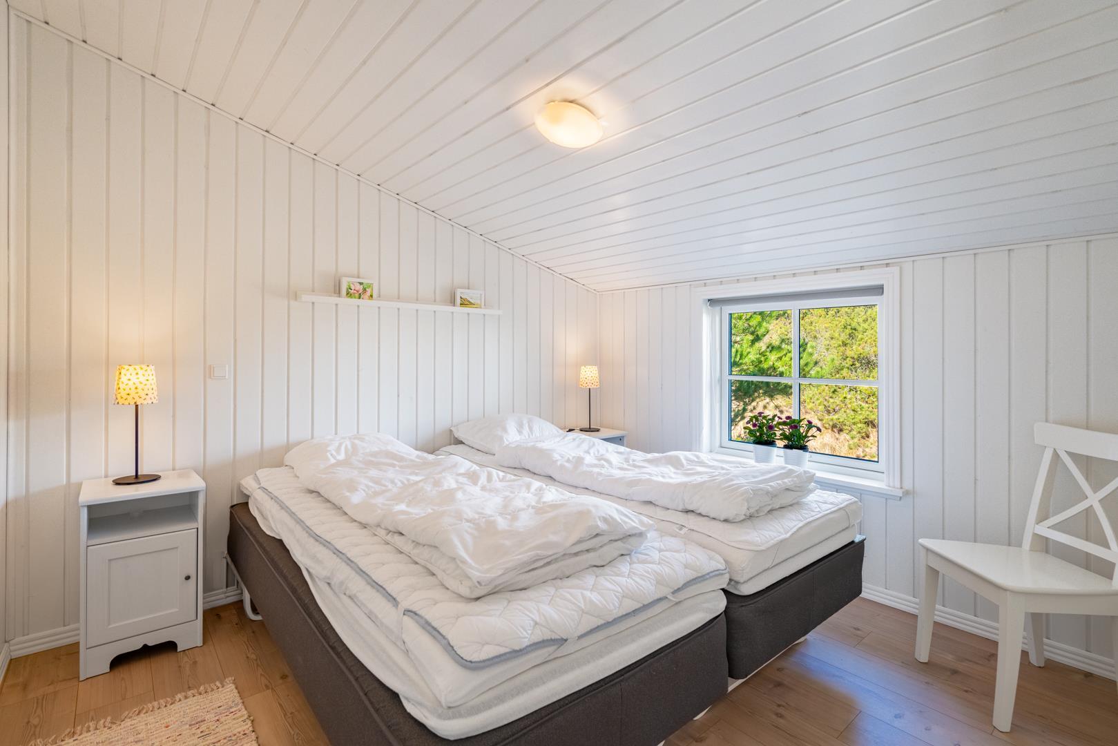Huset byder på tre gode soveværelser og et flot badeværelse. Udendørs kan du nyde solen og stilheden på de omkringliggende træterrasser, der byder på gode lækroge og skøn udsigt til naturen.