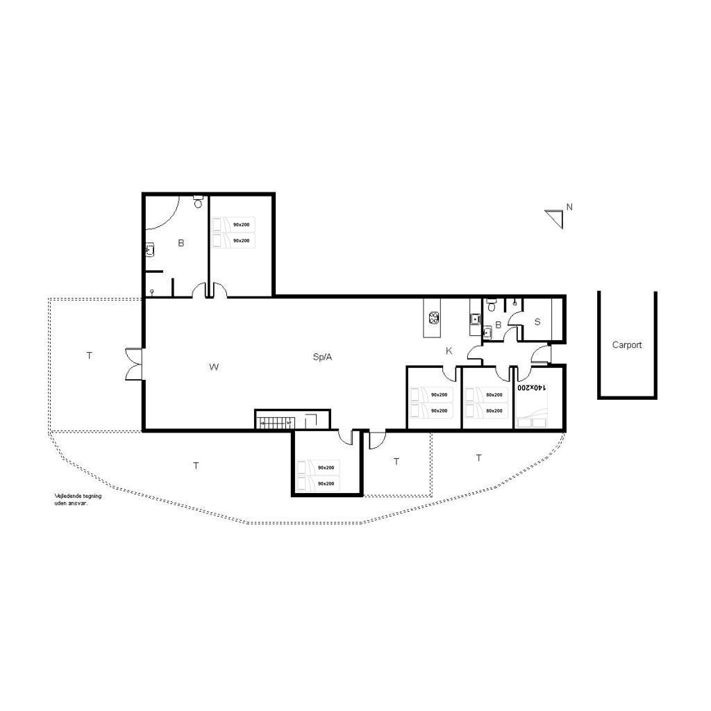 Sengestørrelse: 3 dobbeltsenge med 2 madrasser 90 x 200 cm + 1 dobbeltseng med 2 madrasser 80 x 200 cm + 1 dobbeltseng 140 x 200 cm.