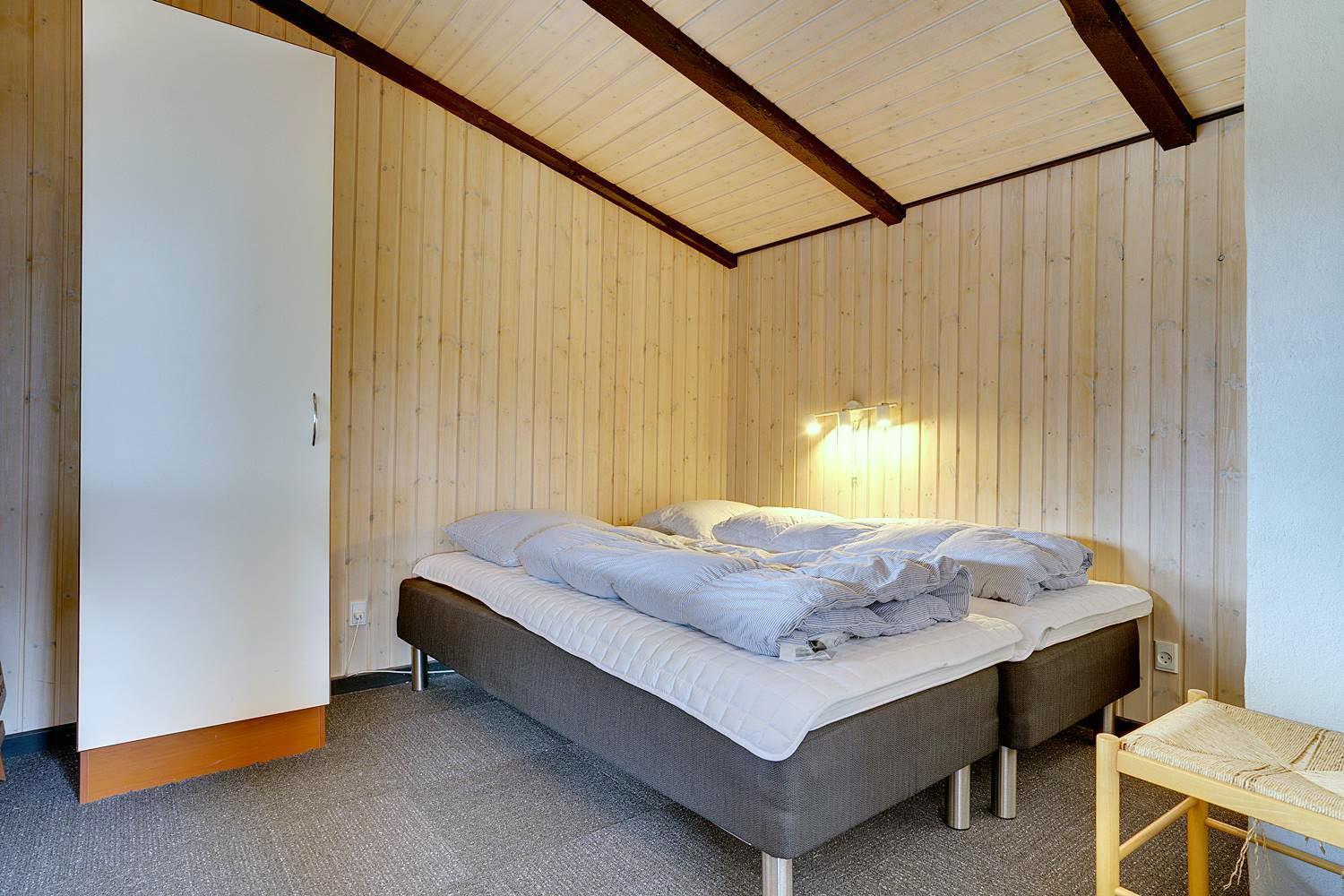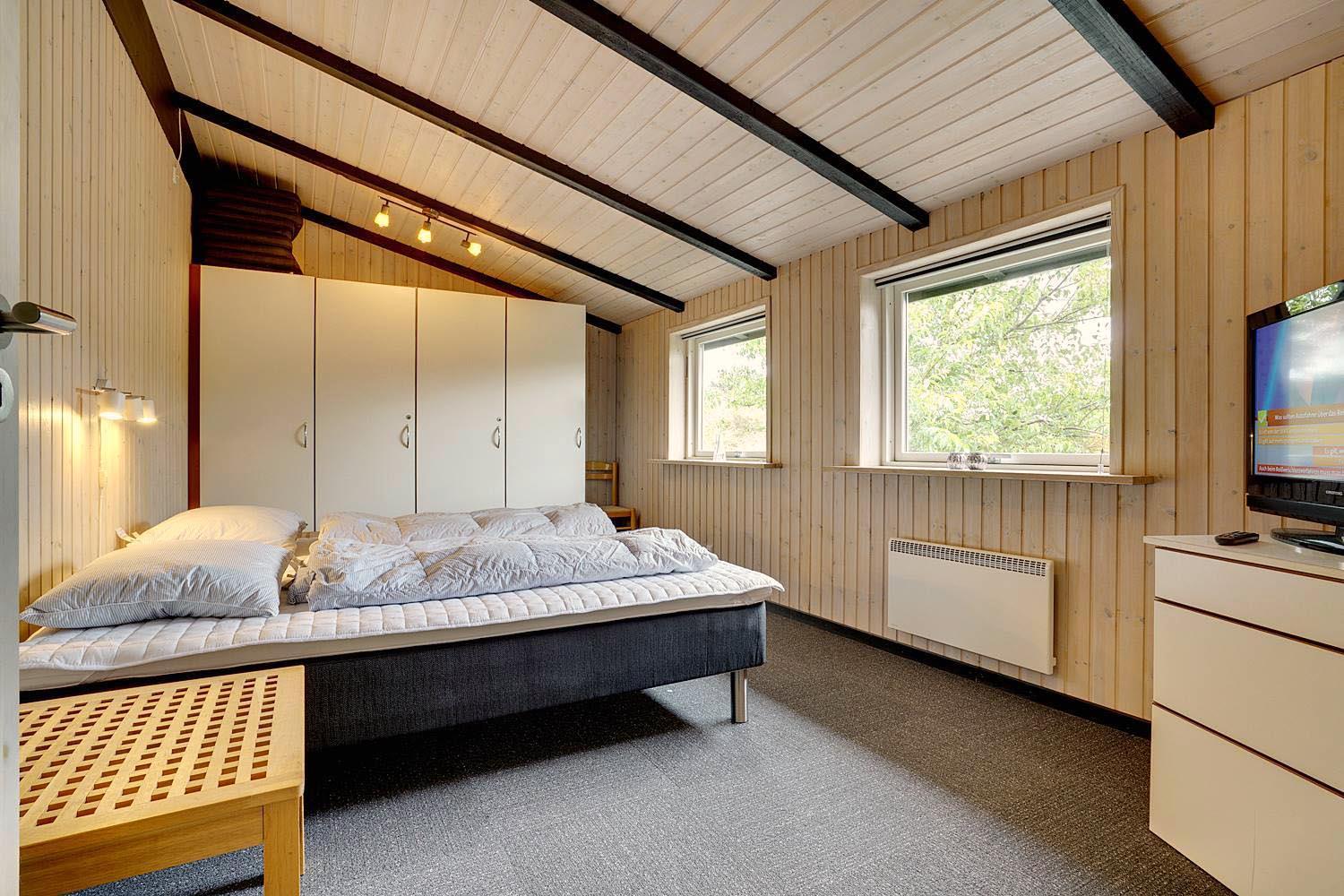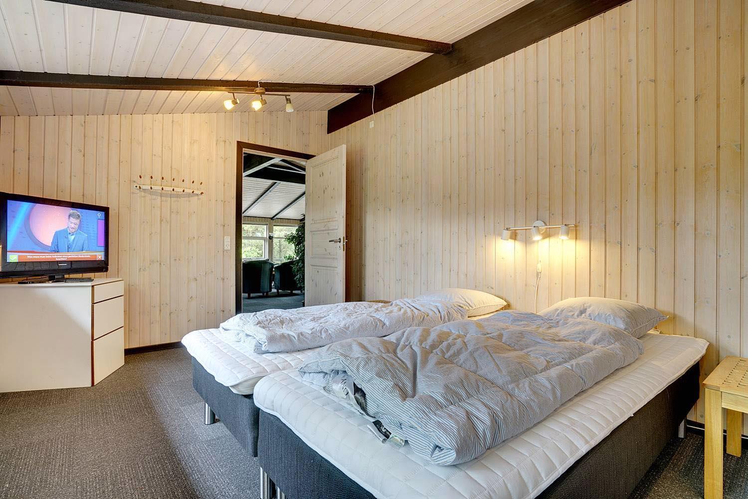 Det store soveværelse ligger praktisk tæt på det ene badeværelse, og derudover er der flere gode soveværelser, hvoraf ét har ekstra TV, perfekt til afslapning eller en stille stund.