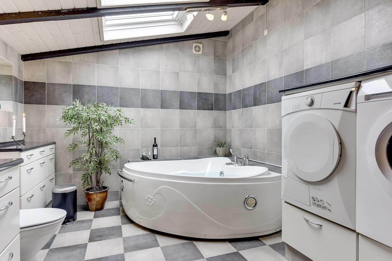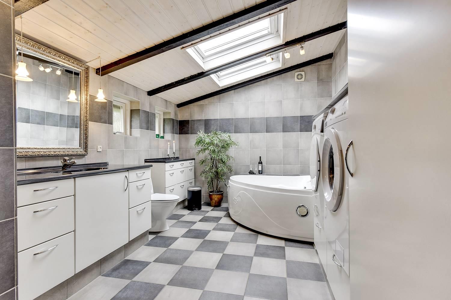 Huset byder på hele to badeværelser, hvoraf det ene er lækkert og lyst med stor bruseniche og spa, mens det andet – ældre, men funktionelt – har sauna, perfekt til afslapning efter en dag i den friske luft.