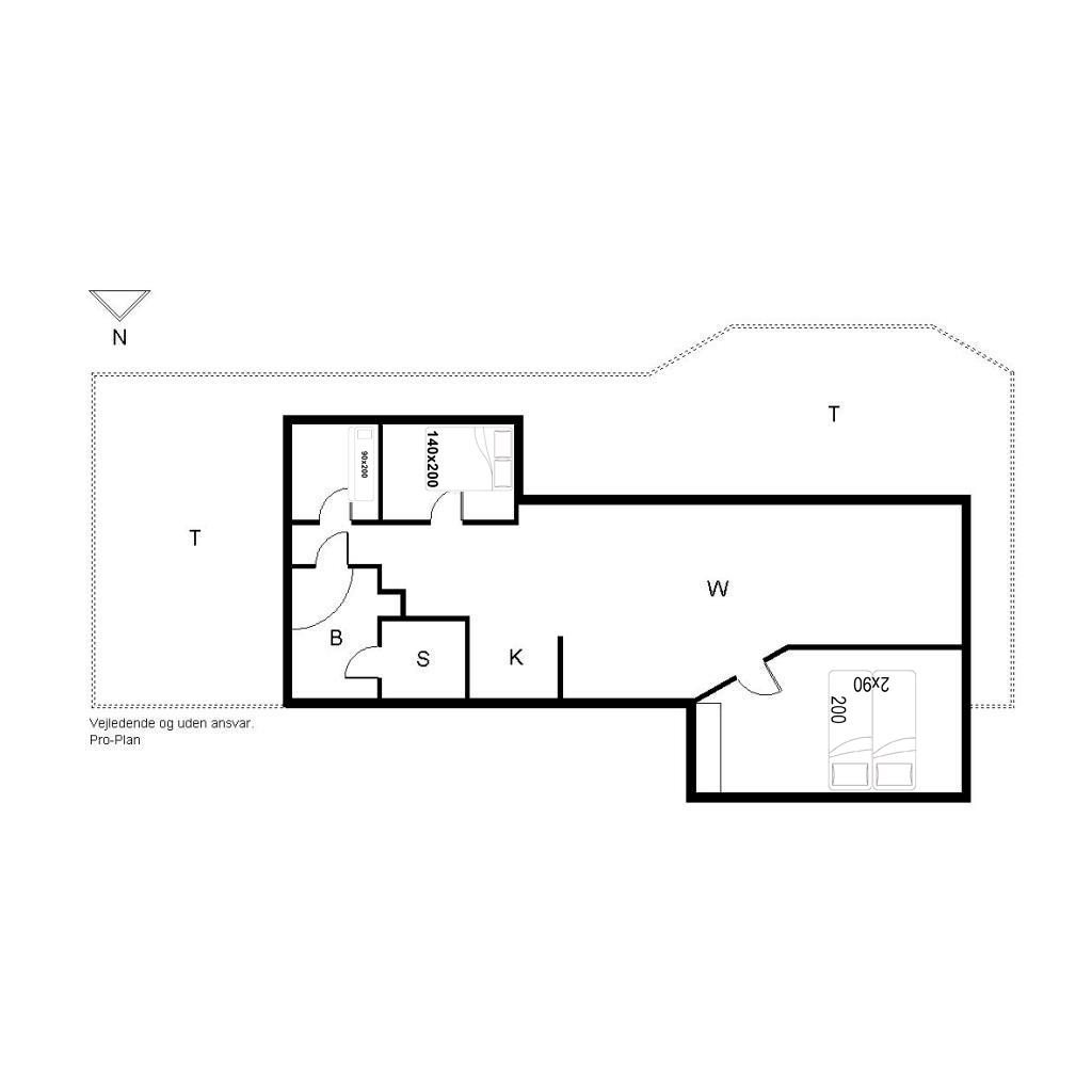 Sengestørrelser: 1 dobbeltseng med 2 madrasser 90 x 200 cm + 1 dobbeltseng 140 x 200 cm + 1 køjeseng 90 x 200 cm