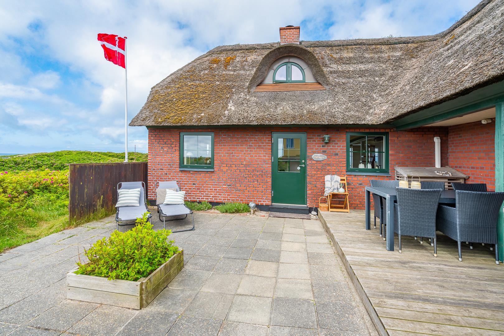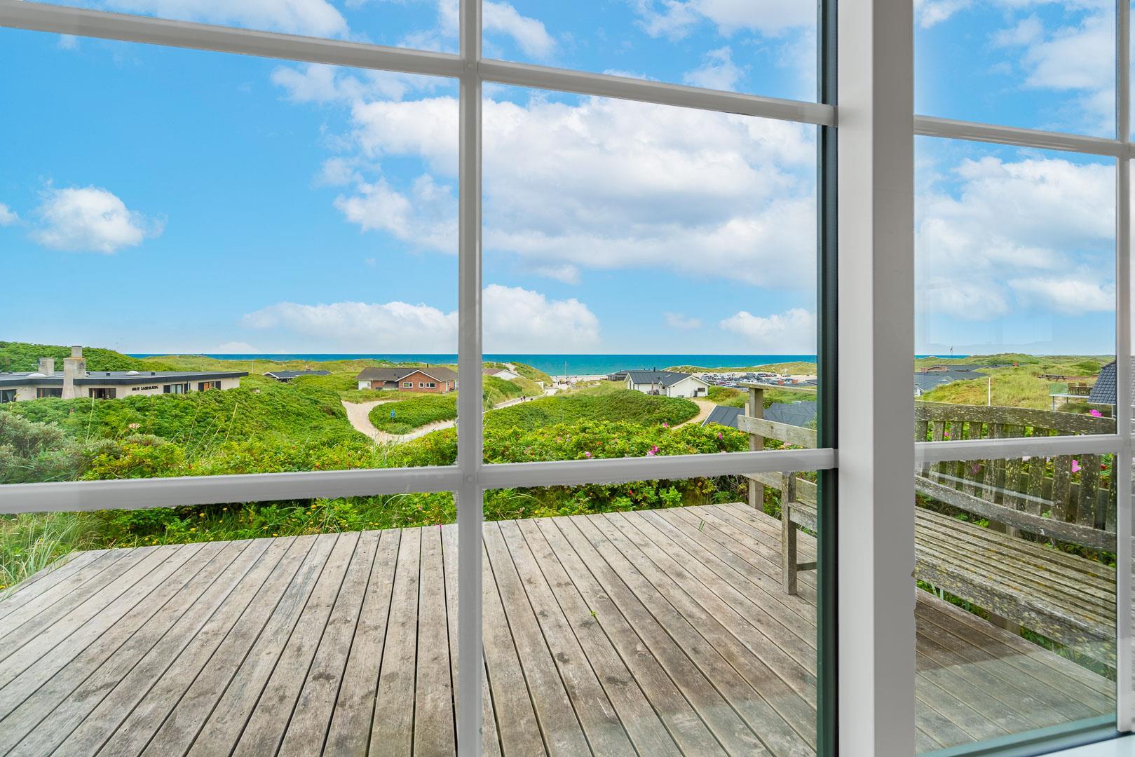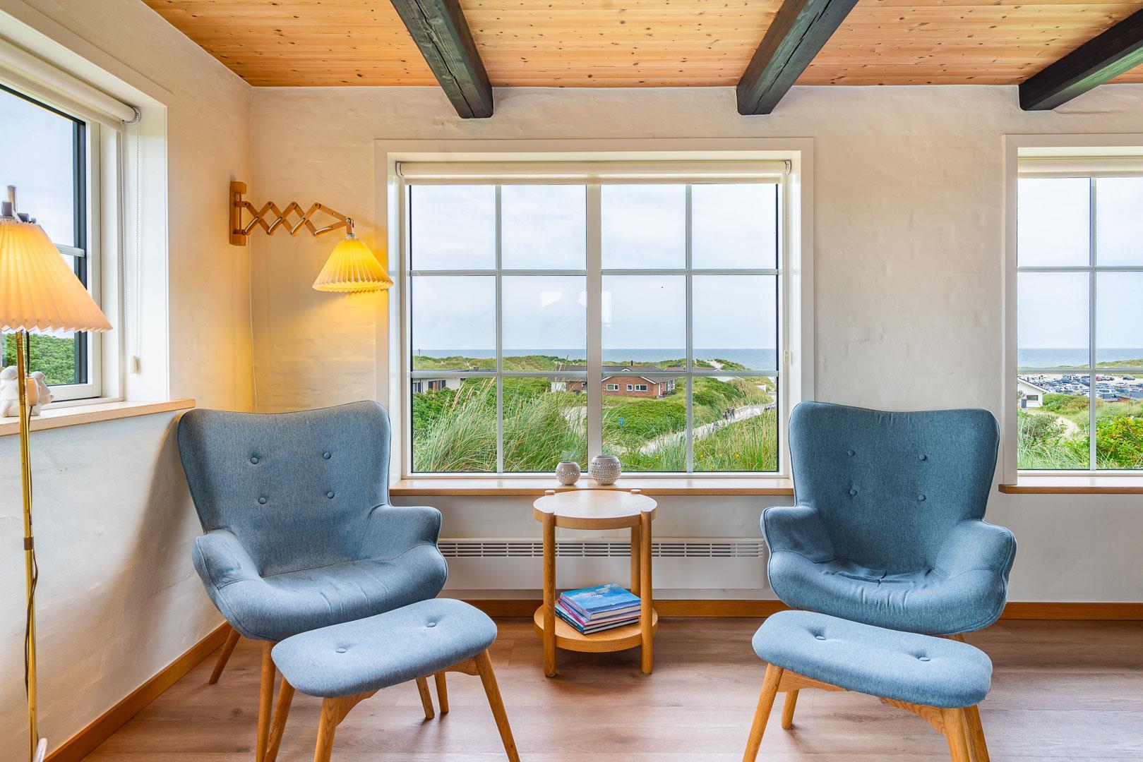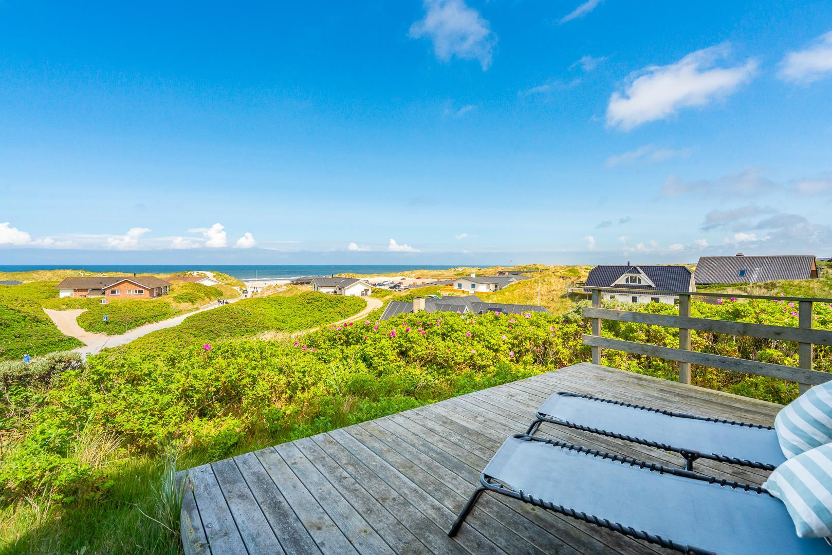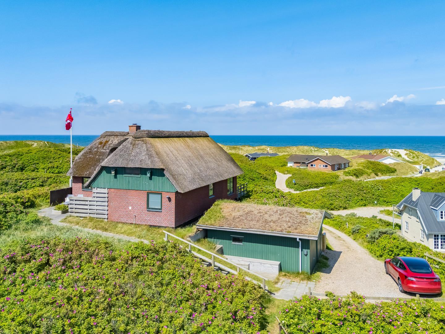 Her finder du et unikt sommerhus, perfekt placeret på en af Vestkystens bedste beliggenheder. Med en fantastisk udsigt over stranden og det mægtige Vesterhav, som du kan nyde fra alle sider af huset – nord, syd og vest. Mod øst åbner landskabet sig med Henne Strand by og det vidtstrakte hedeområde nord for byen.