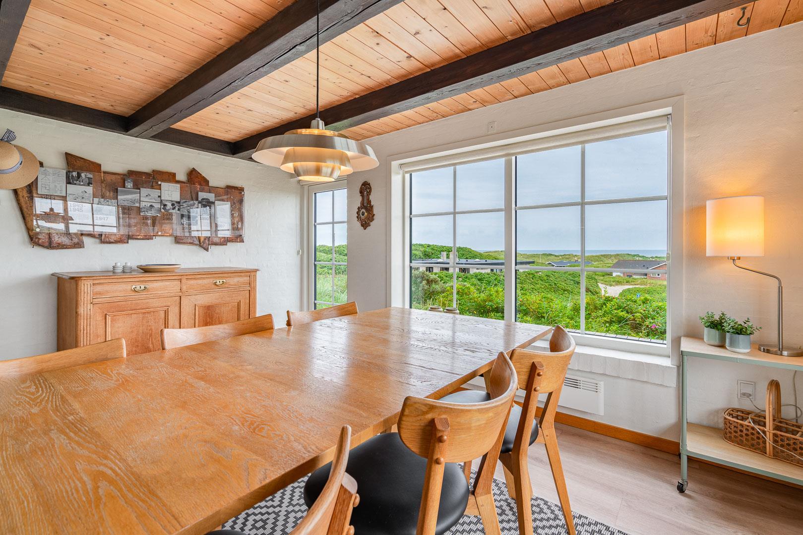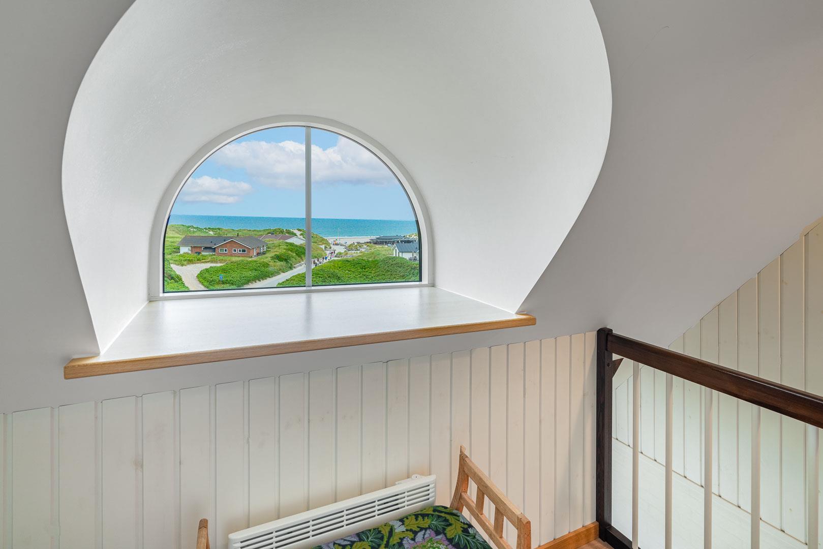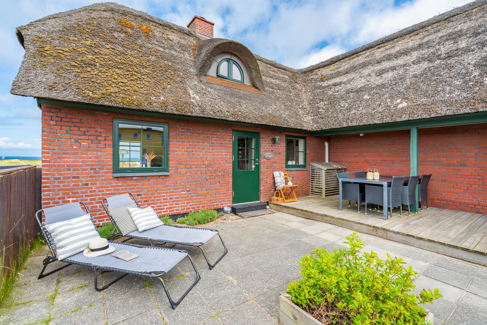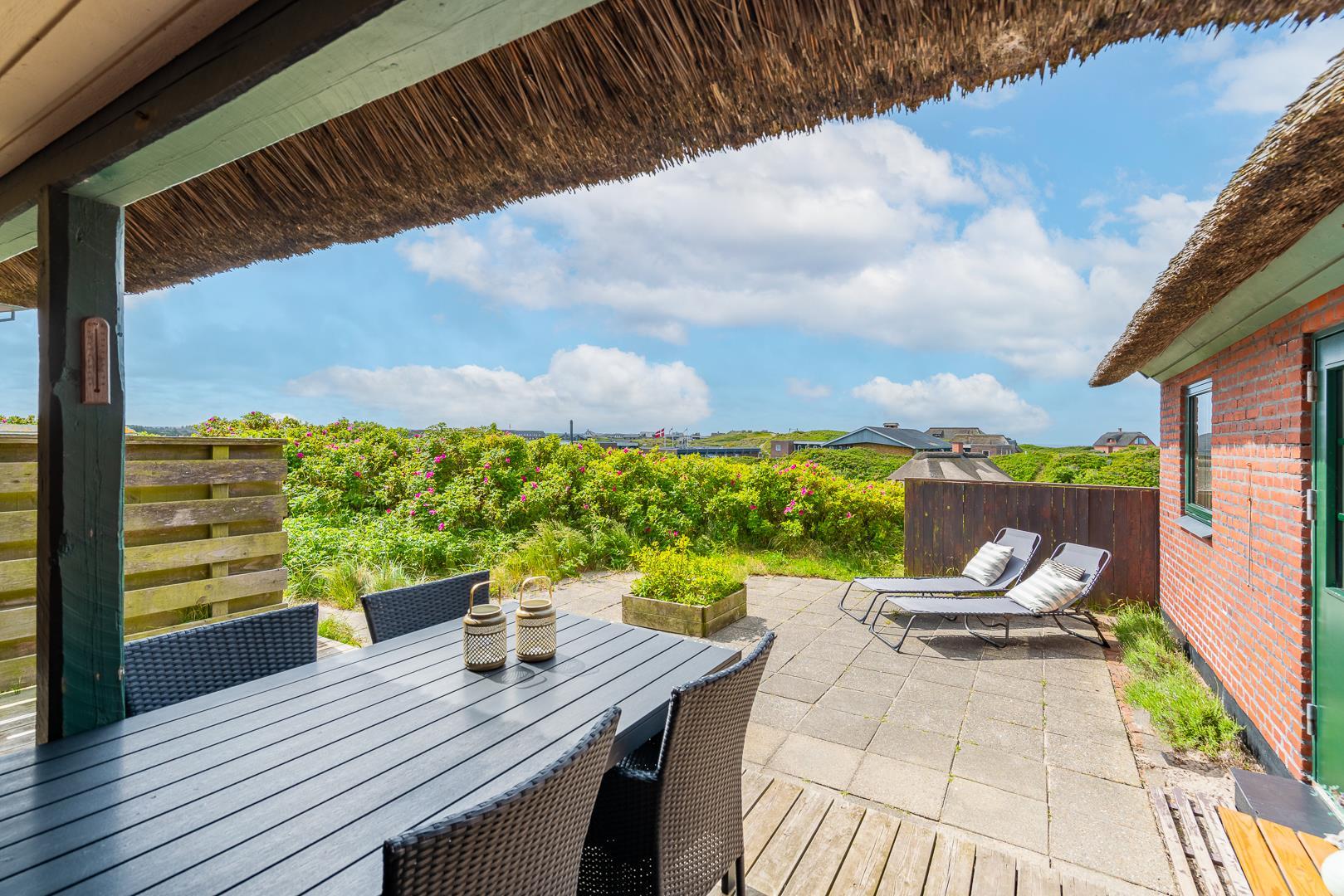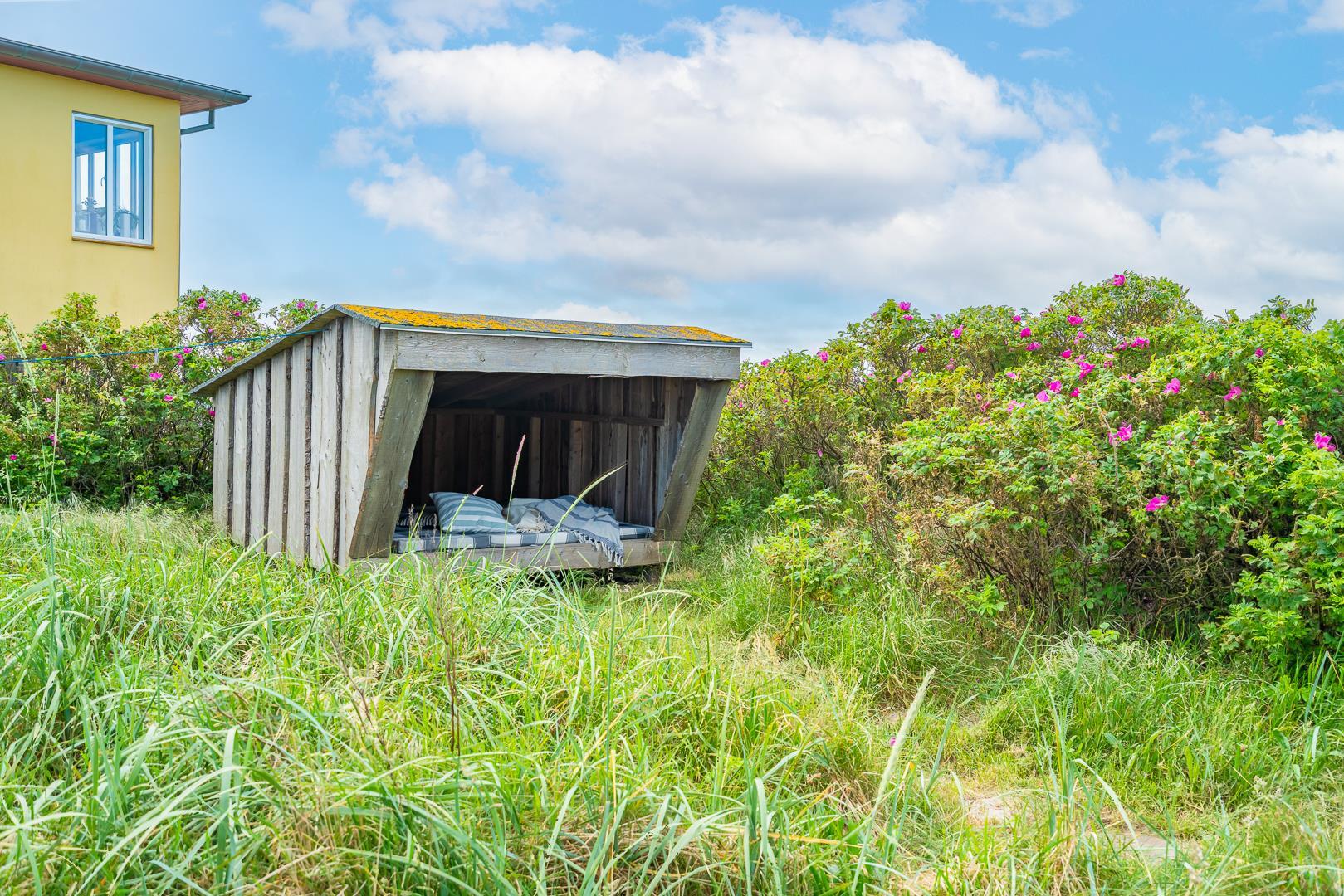 Her finder du et unikt sommerhus, perfekt placeret på en af Vestkystens bedste beliggenheder. Med en fantastisk udsigt over stranden og det mægtige Vesterhav, som du kan nyde fra alle sider af huset – nord, syd og vest. Mod øst åbner landskabet sig med Henne Strand by og det vidtstrakte hedeområde nord for byen.