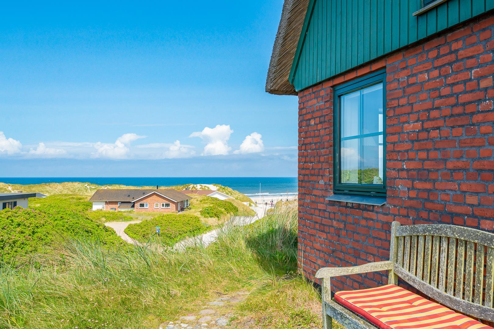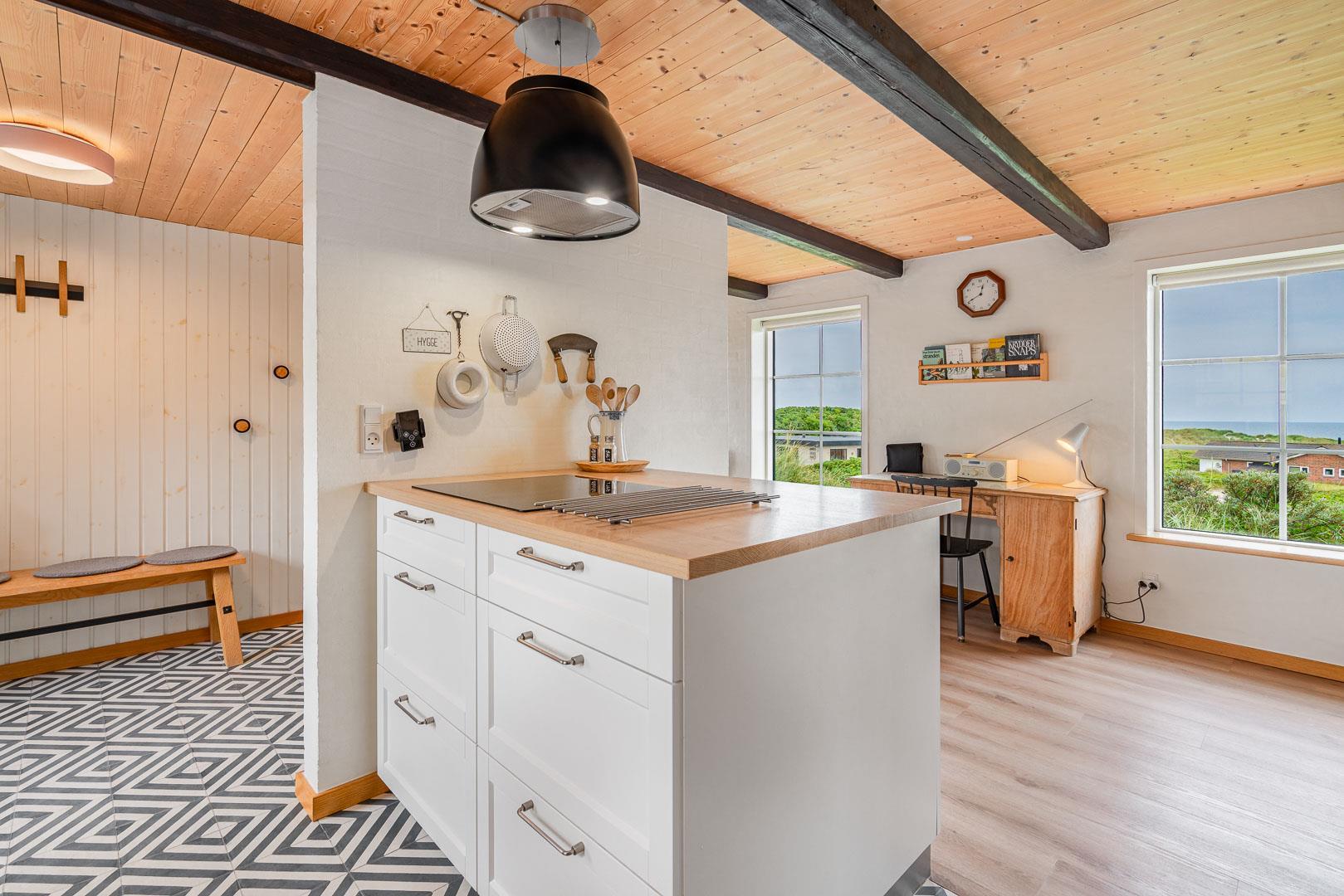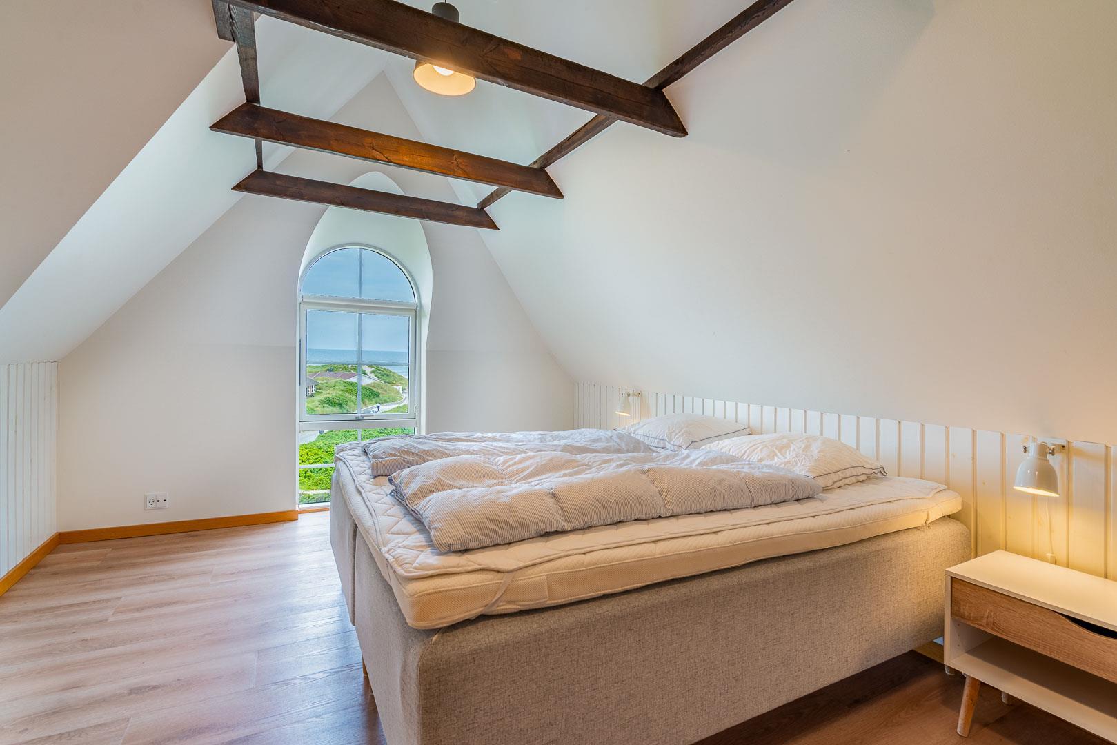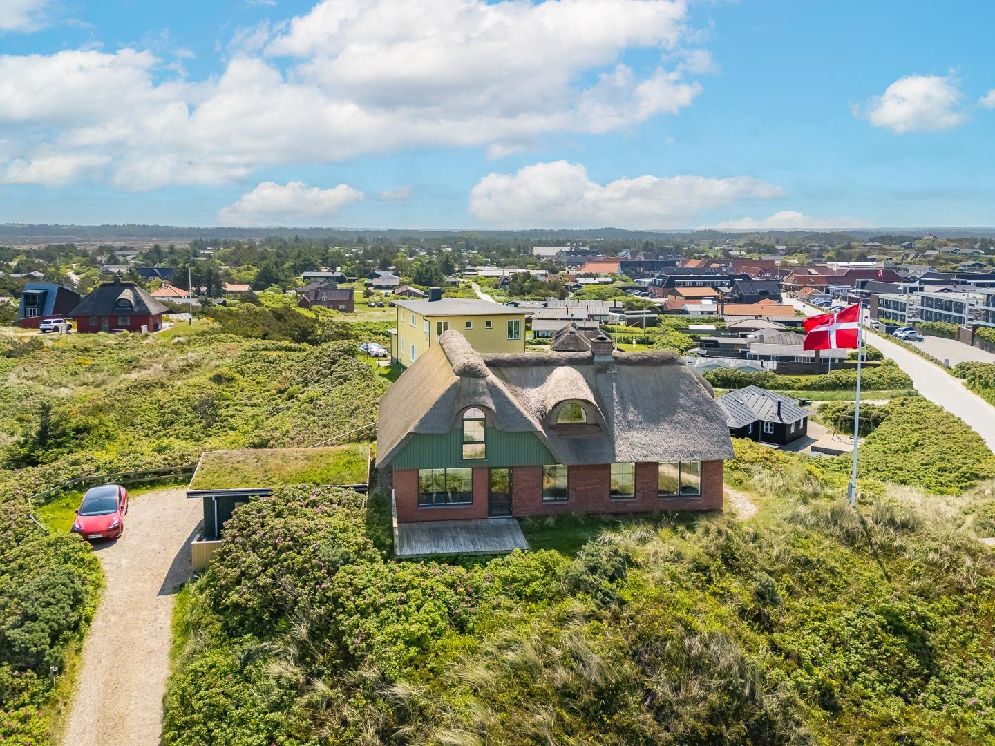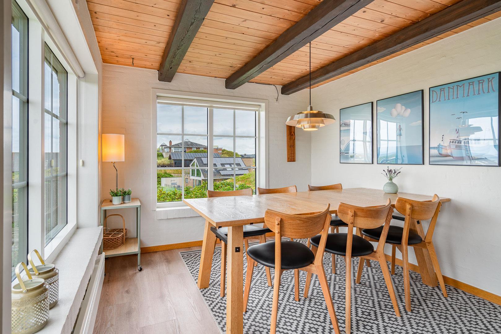 Her finder du et unikt sommerhus, perfekt placeret på en af Vestkystens bedste beliggenheder. Med en fantastisk udsigt over stranden og det mægtige Vesterhav, som du kan nyde fra alle sider af huset – nord, syd og vest. Mod øst åbner landskabet sig med Henne Strand by og det vidtstrakte hedeområde nord for byen.