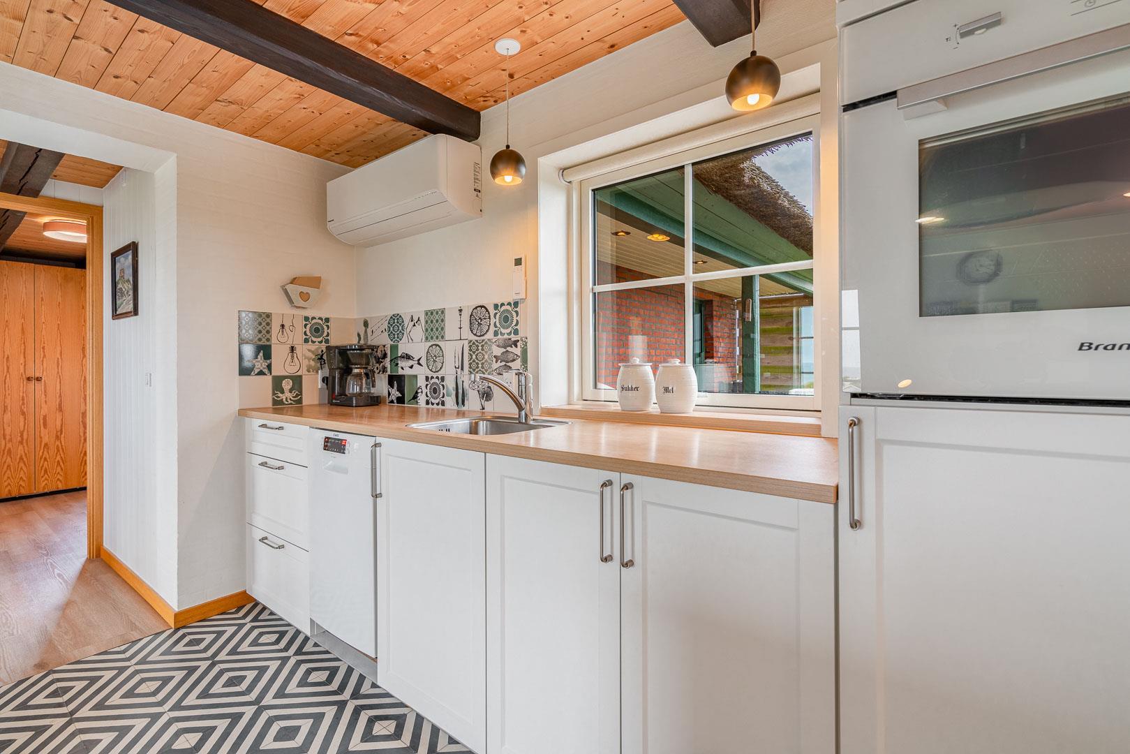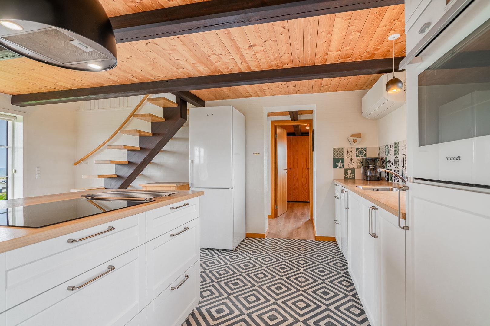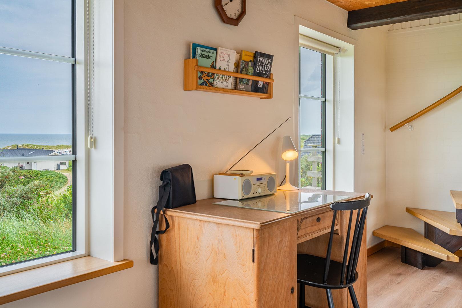 Sommerhuset er løbende renoveret med omhu – feriehuset bevarer sin særlige historie og fremstår nu lyst og hyggeligt. Det er et familiejet sommerhus fra 1933, og dets unikke beliggenhed gjorde det til en udkigspost under 2. verdenskrig, hvilket gør det til et af de ældste bevarede sommerhuse i Henne Strand. Med placeringen på en klittop i 36 meters højde er du kun 100 meter fra stranden og 200 meter fra byens centrum. Havet kan nydes fra alle soveværelser, men oplevelsen er mest betagende fra første sal, hvor kvistvinduerne strækker sig fra gulv til loft. I den hyggelige stue og spisestue vil du også opleve den fantastiske udsigt. Her finder du også det perfekte sted til at slappe af med en god bog foran brændeovnen. Med to badeværelser og et flot lækkert køkken i åben forbindelse med stuen, samt en solrig terrasse i læ for vinden, er dette det ideelle sted for en mindeværdig ferie, der skal opleves.