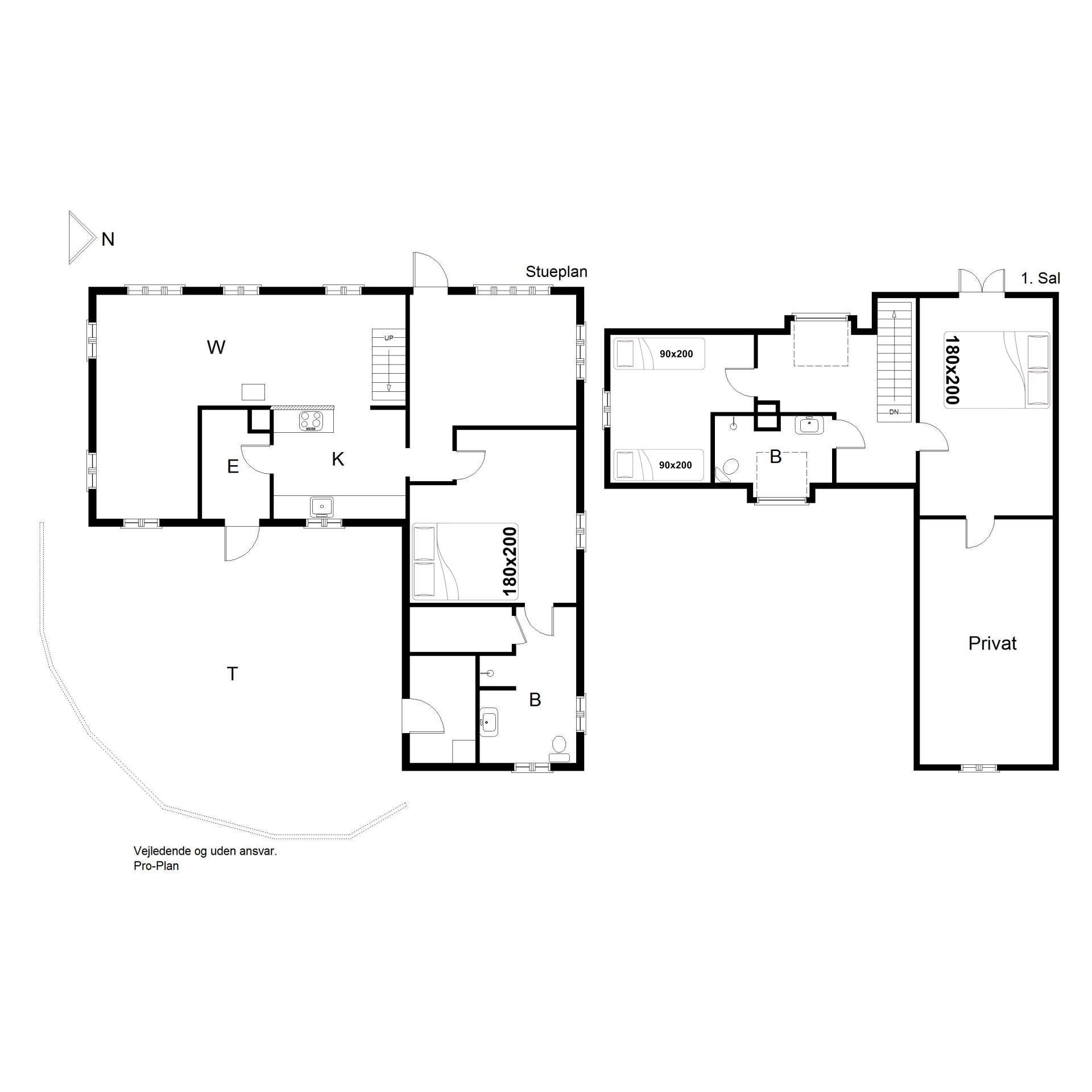 Sengestørrelse: 2 dobbeltsenge 180 x 200 cm + 2 enkeltsenge 90 x 200 cm