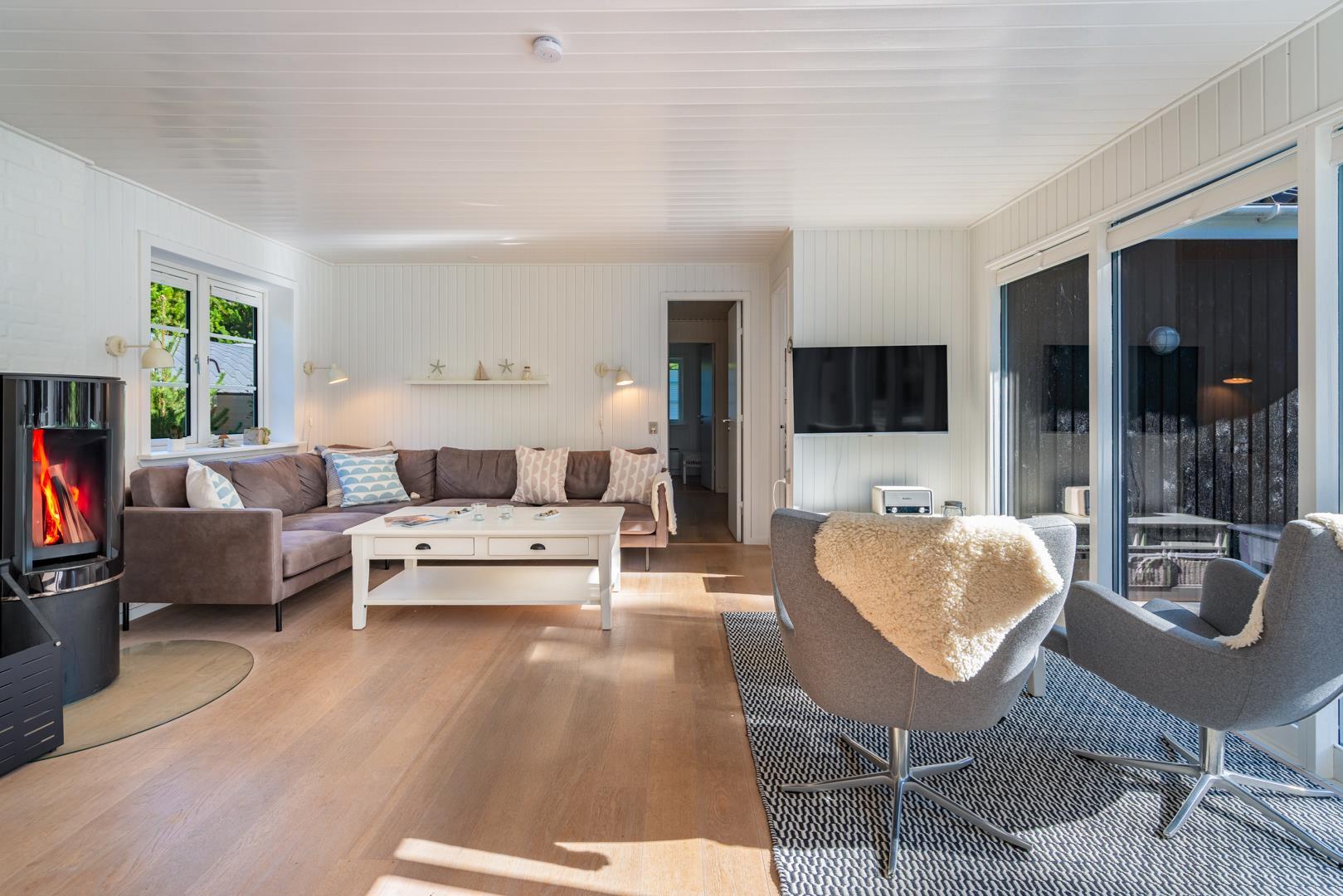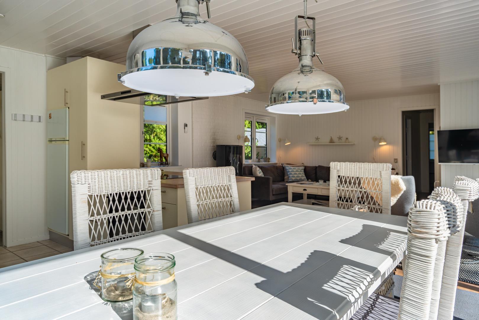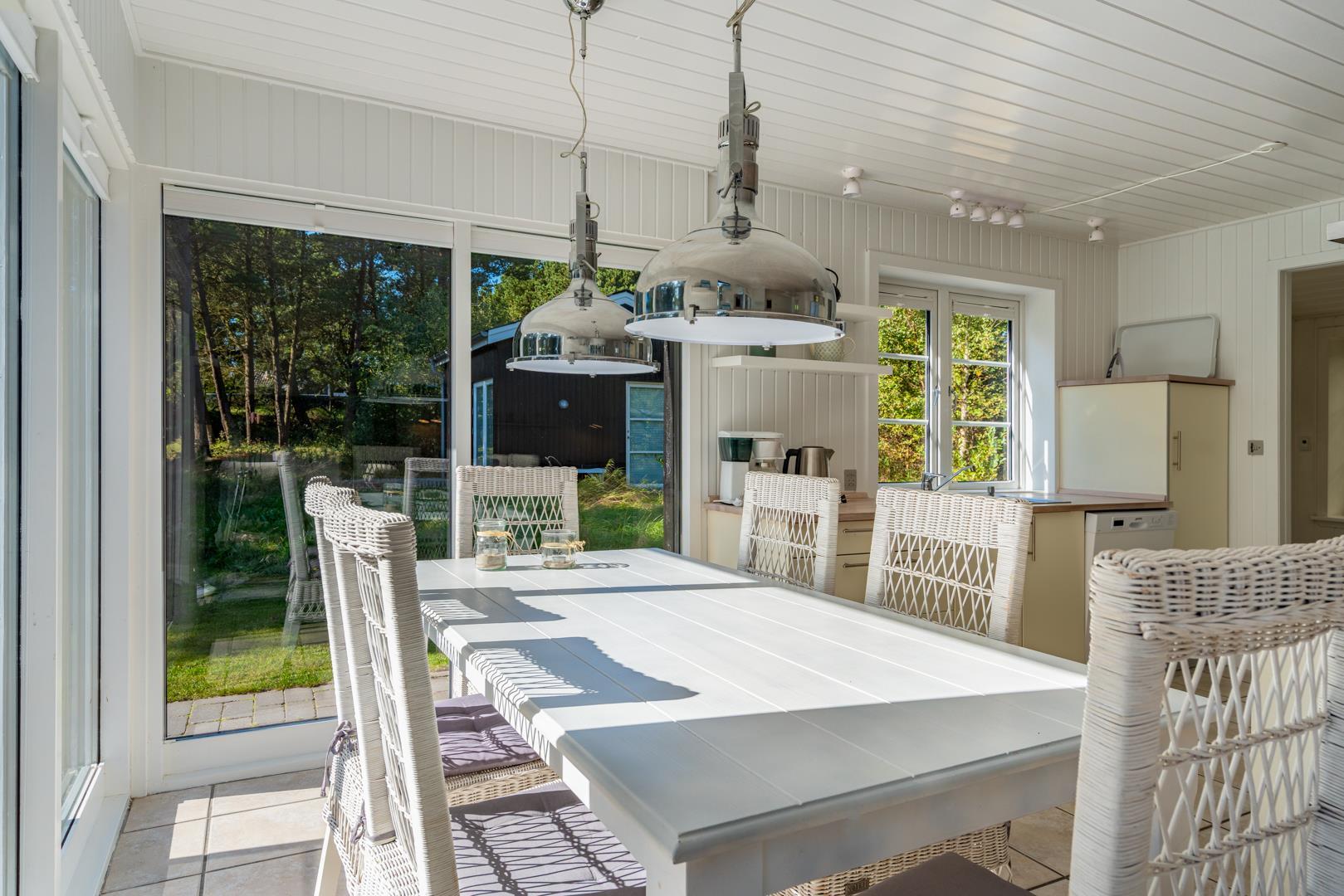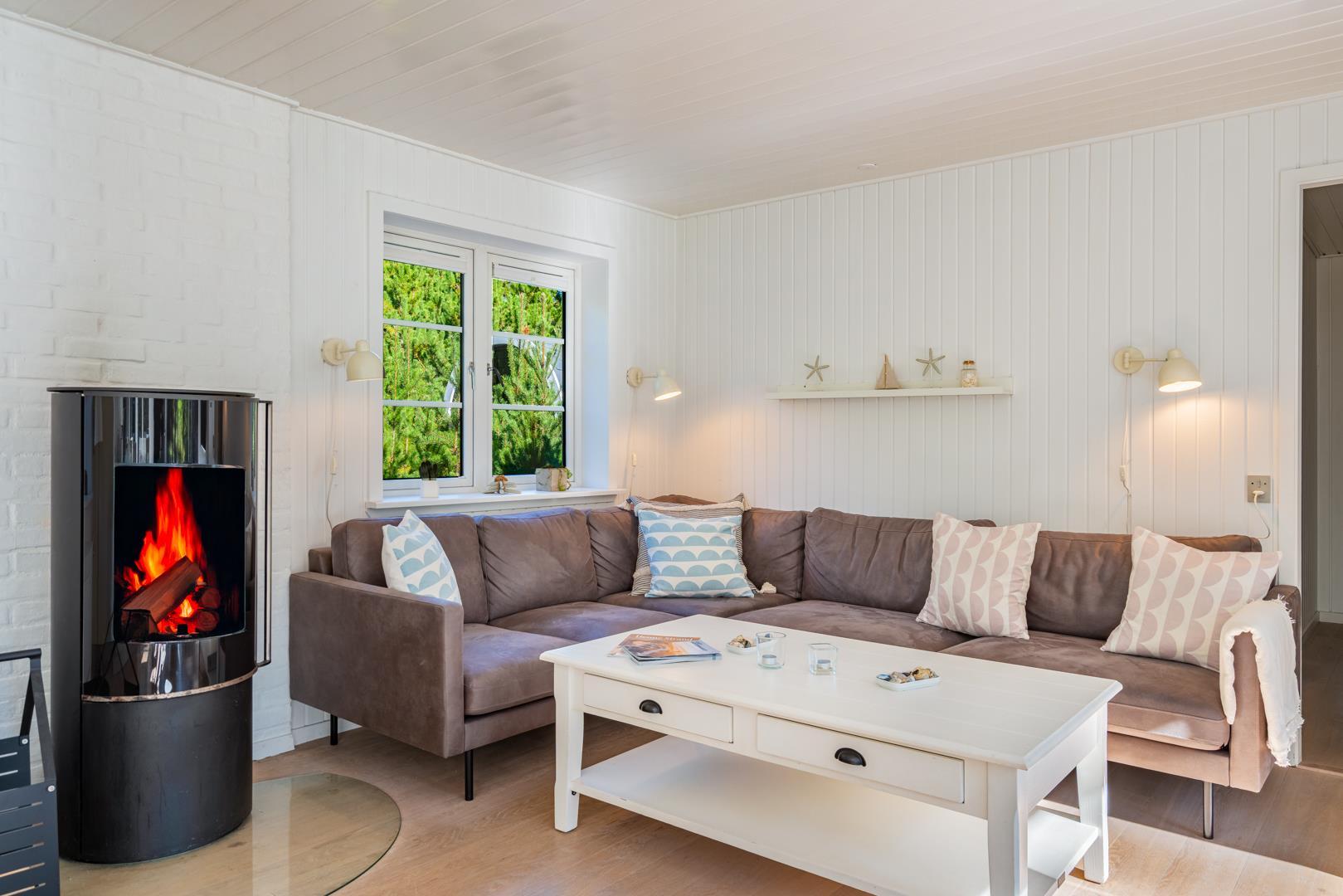 Idyllisk feriehus beliggende på en pragtfuld naturgrund i rolige natur omgivelser. Dejligt kombineret køkken og opholdsrum. Huset er lyst, hvidt og venligt og indrettet med god stil . 3 soverum med 4 enkeltsenge og 1 dobbeltseng. Dejlig træterrasse med havemøbler, liggestole, grill og markise. Lækkert nyere badeværelse. Udendørssauna. Energibesparende varmepumpe. Et super charmerende feriehus hvor rammerne er skabt for en god ferie ved Henne Strand.