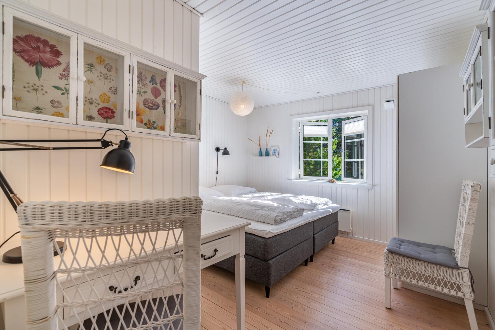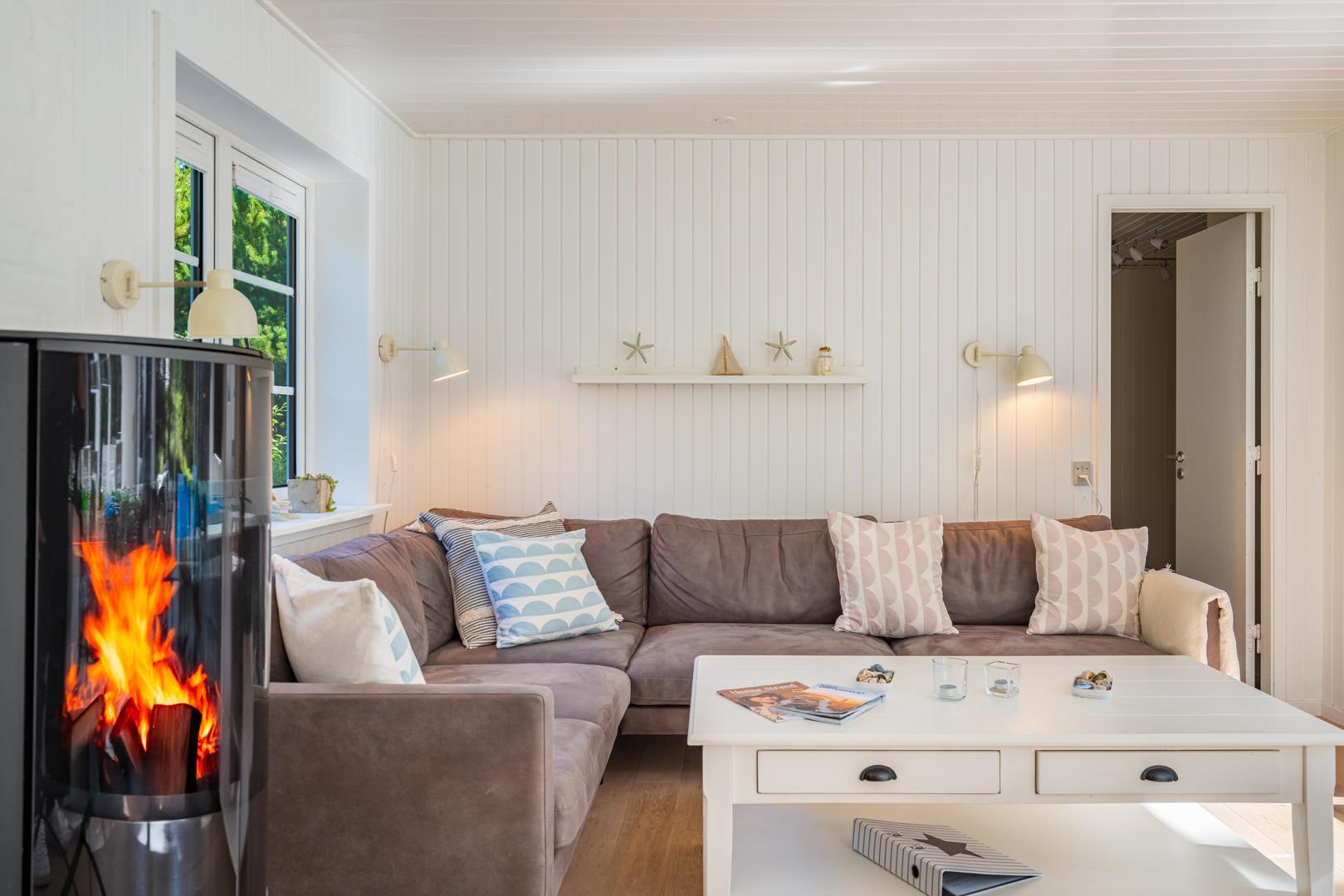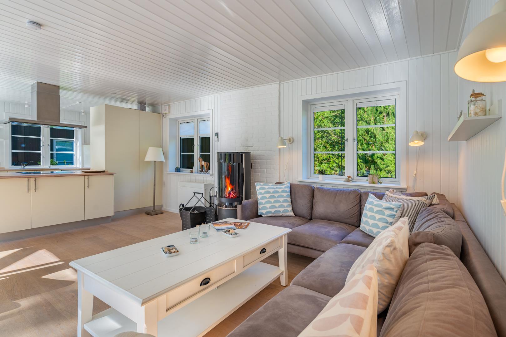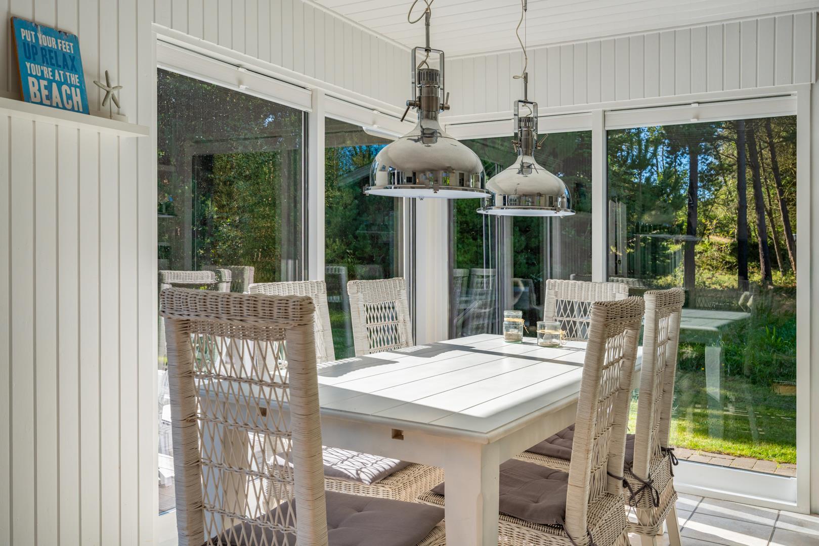 Idyllisk feriehus beliggende på en pragtfuld naturgrund i rolige natur omgivelser. Dejligt kombineret køkken og opholdsrum. Huset er lyst, hvidt og venligt og indrettet med god stil . 3 soverum med 4 enkeltsenge og 1 dobbeltseng. Dejlig træterrasse med havemøbler, liggestole, grill og markise. Lækkert nyere badeværelse. Udendørssauna. Energibesparende varmepumpe. Et super charmerende feriehus hvor rammerne er skabt for en god ferie ved Henne Strand.