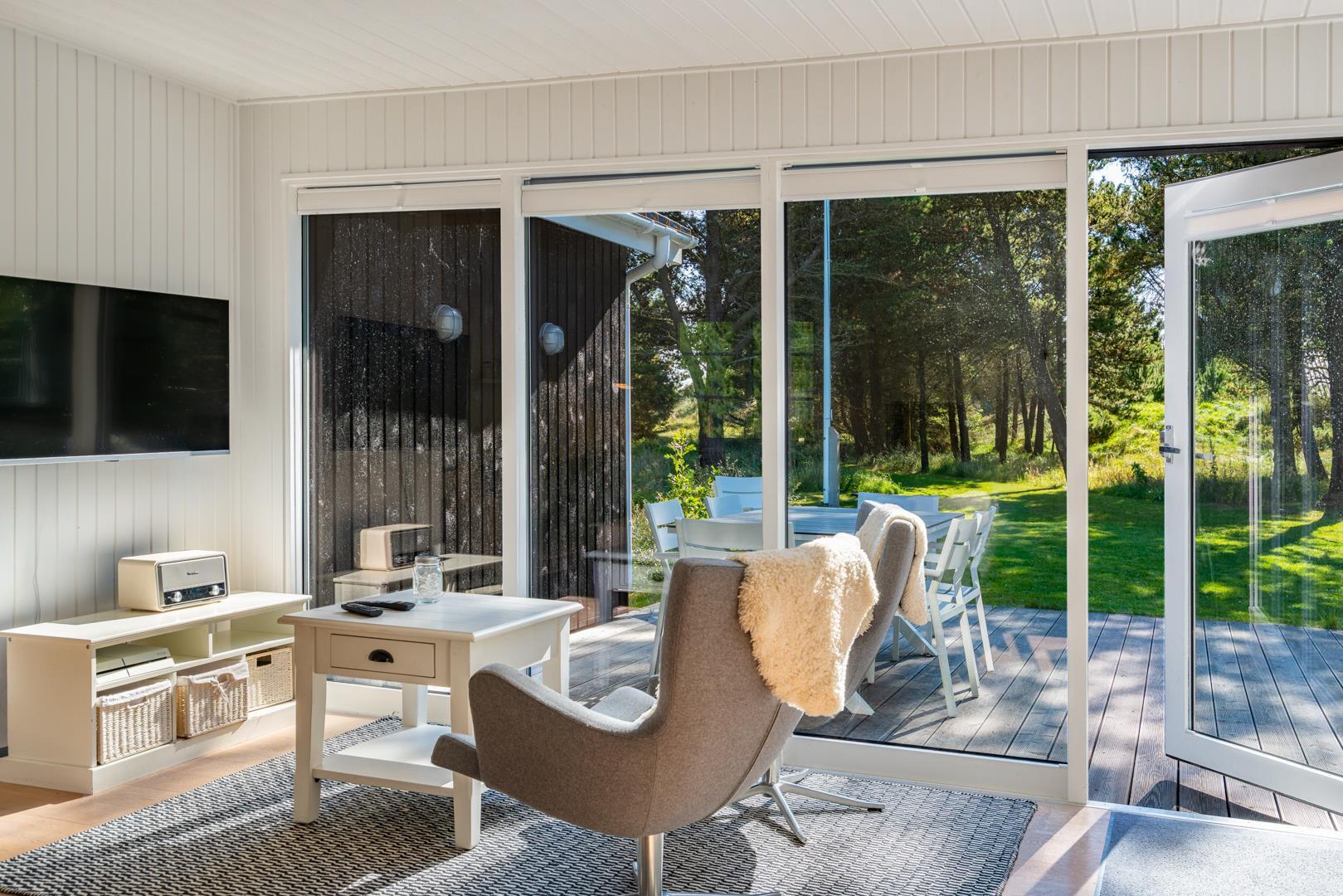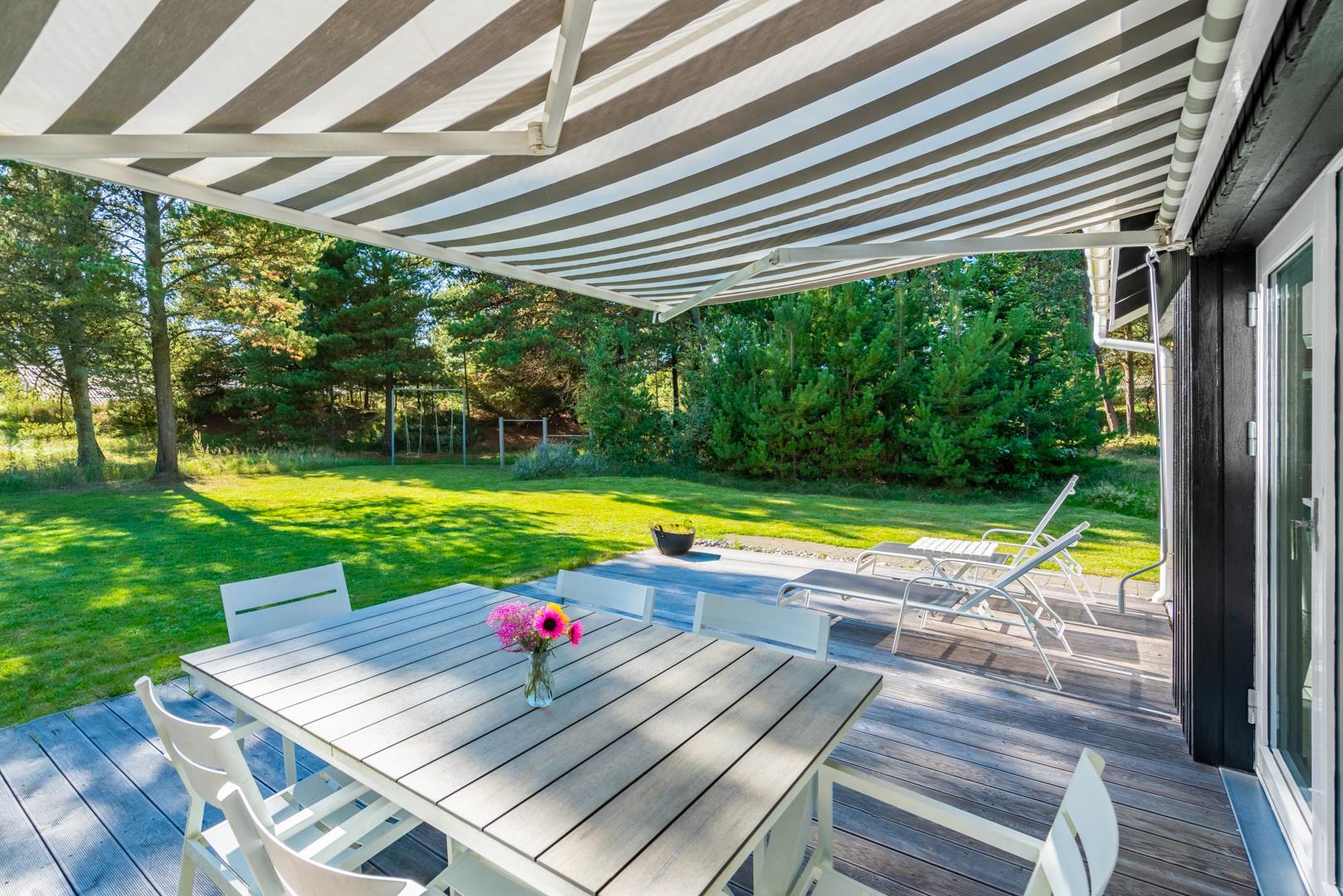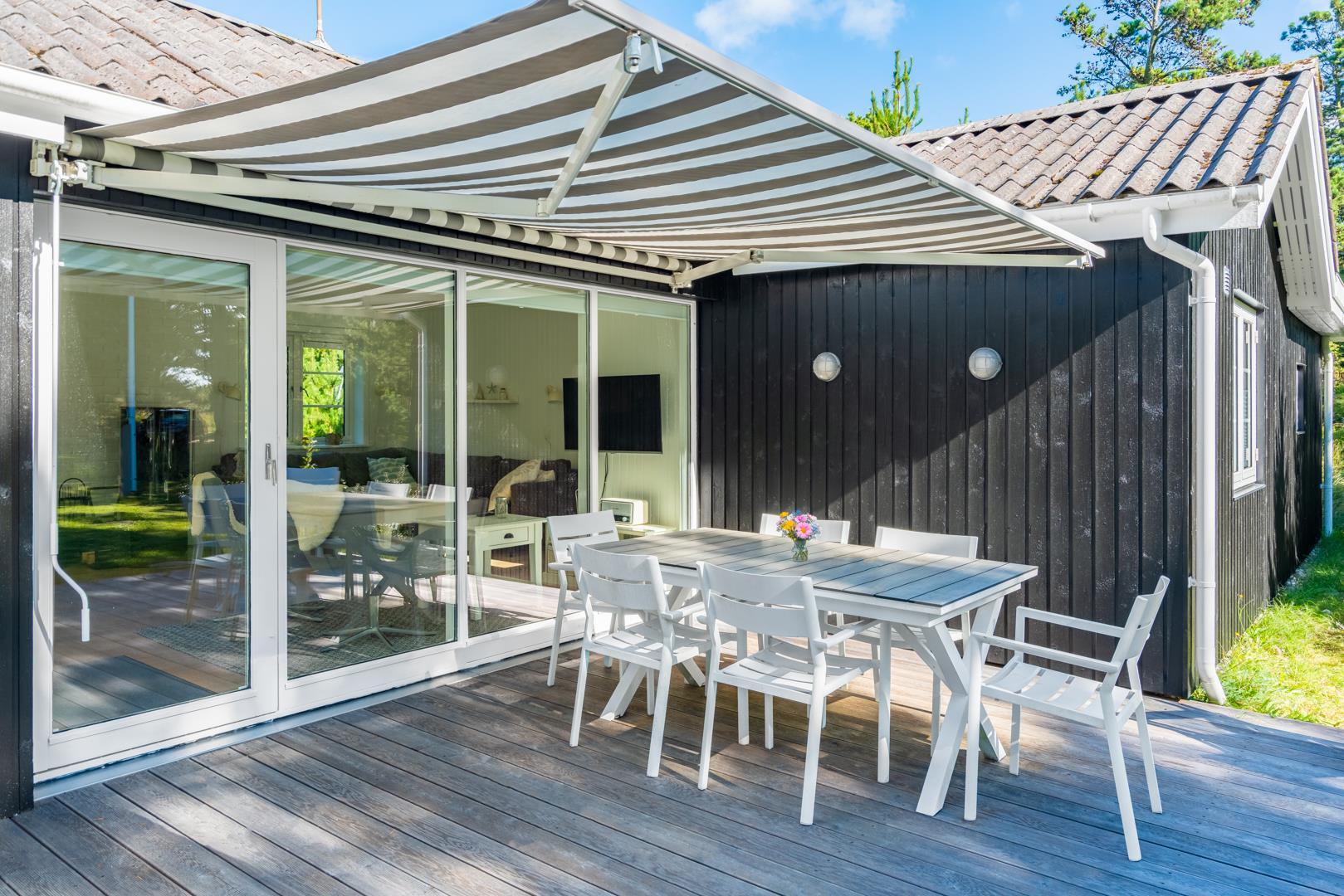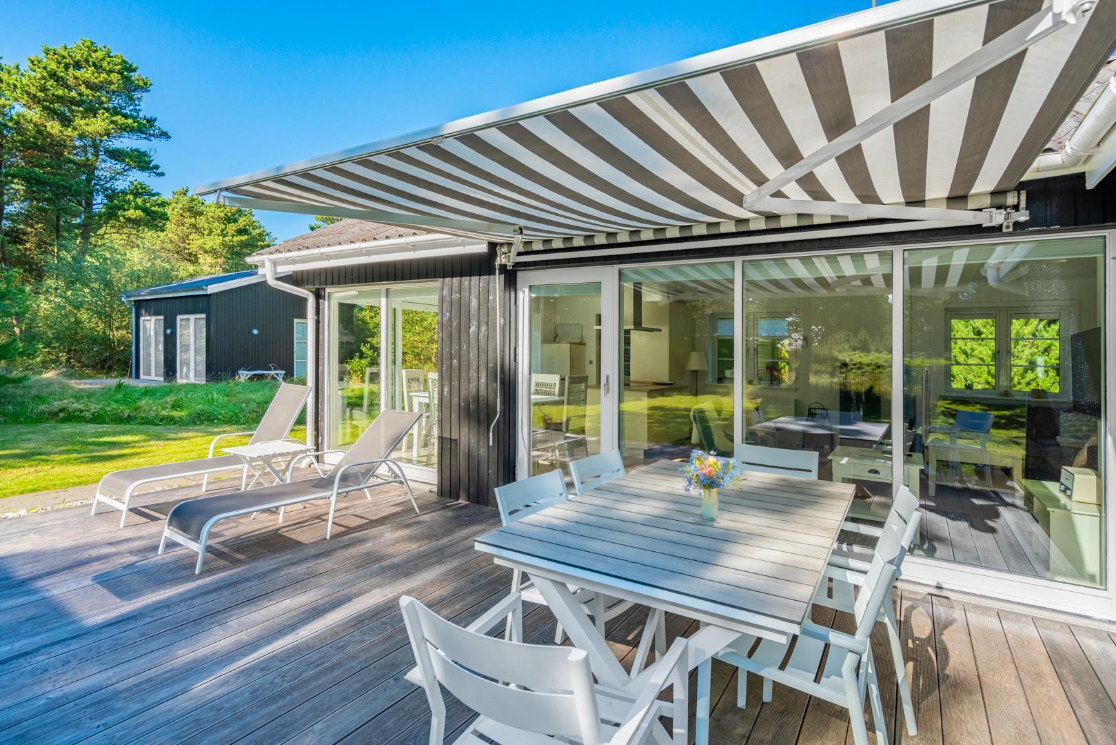Hyggeligt feriehus i Henne Strand med sauna, stor terrasse og skøn naturgrund nær stranden.