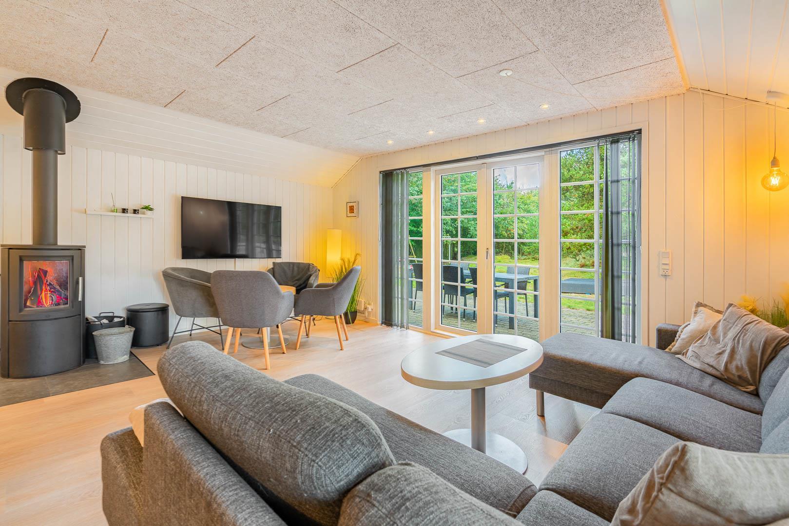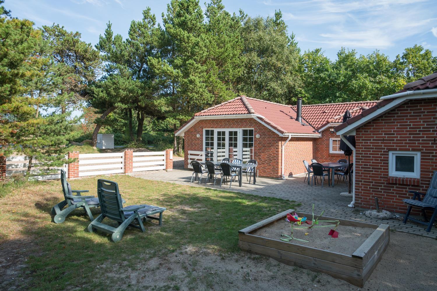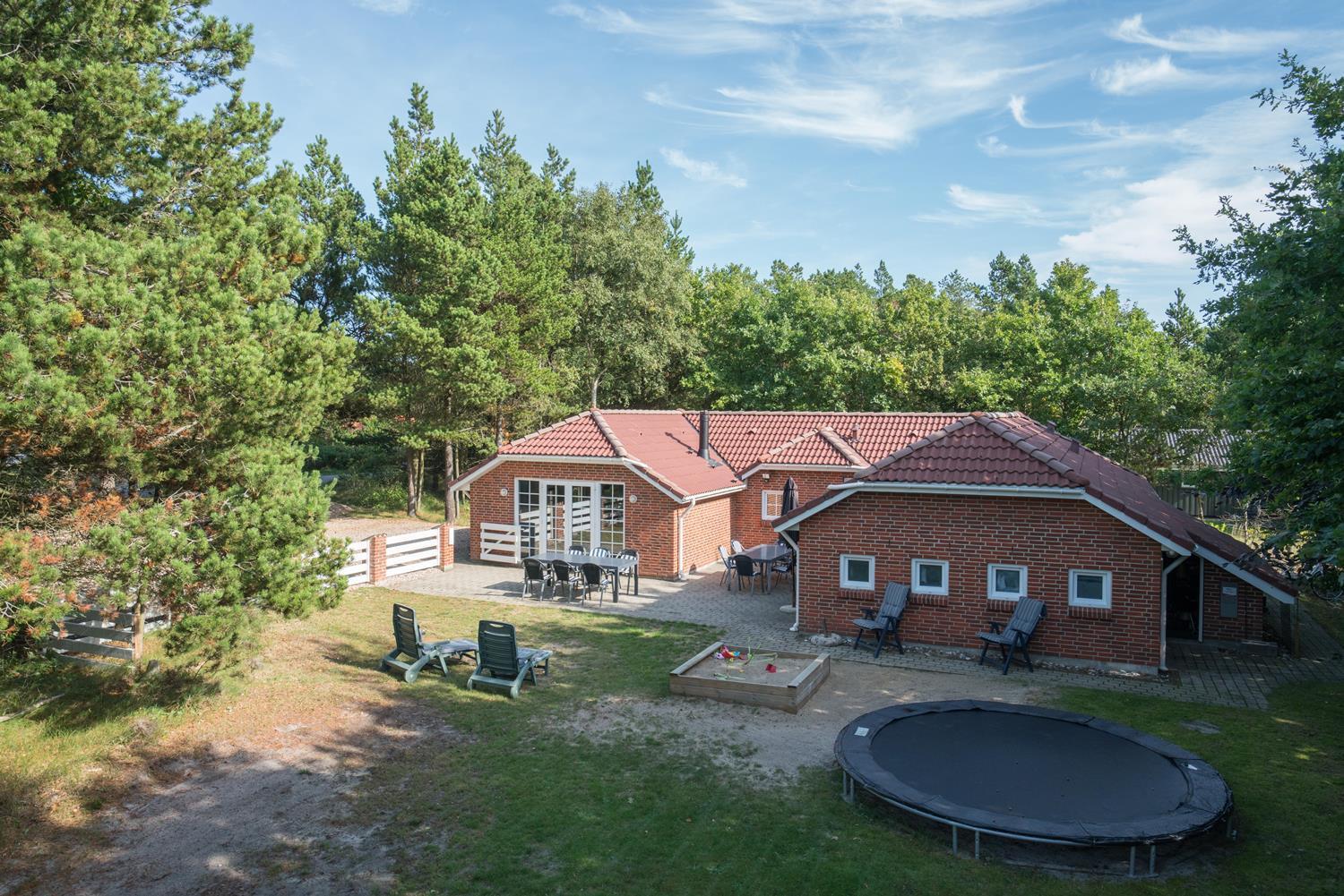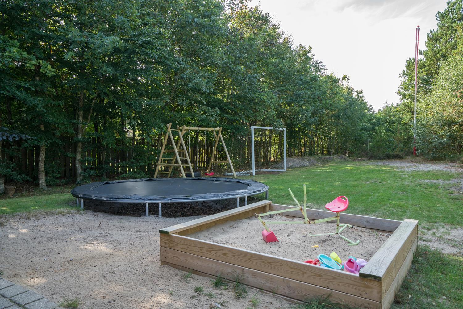 I dette feriehus er der tænkt på det hele også på de små gæster, der er bla. fodboldmål, stor sandkasse og trampolin (kan benyttes 01.04-15.10).