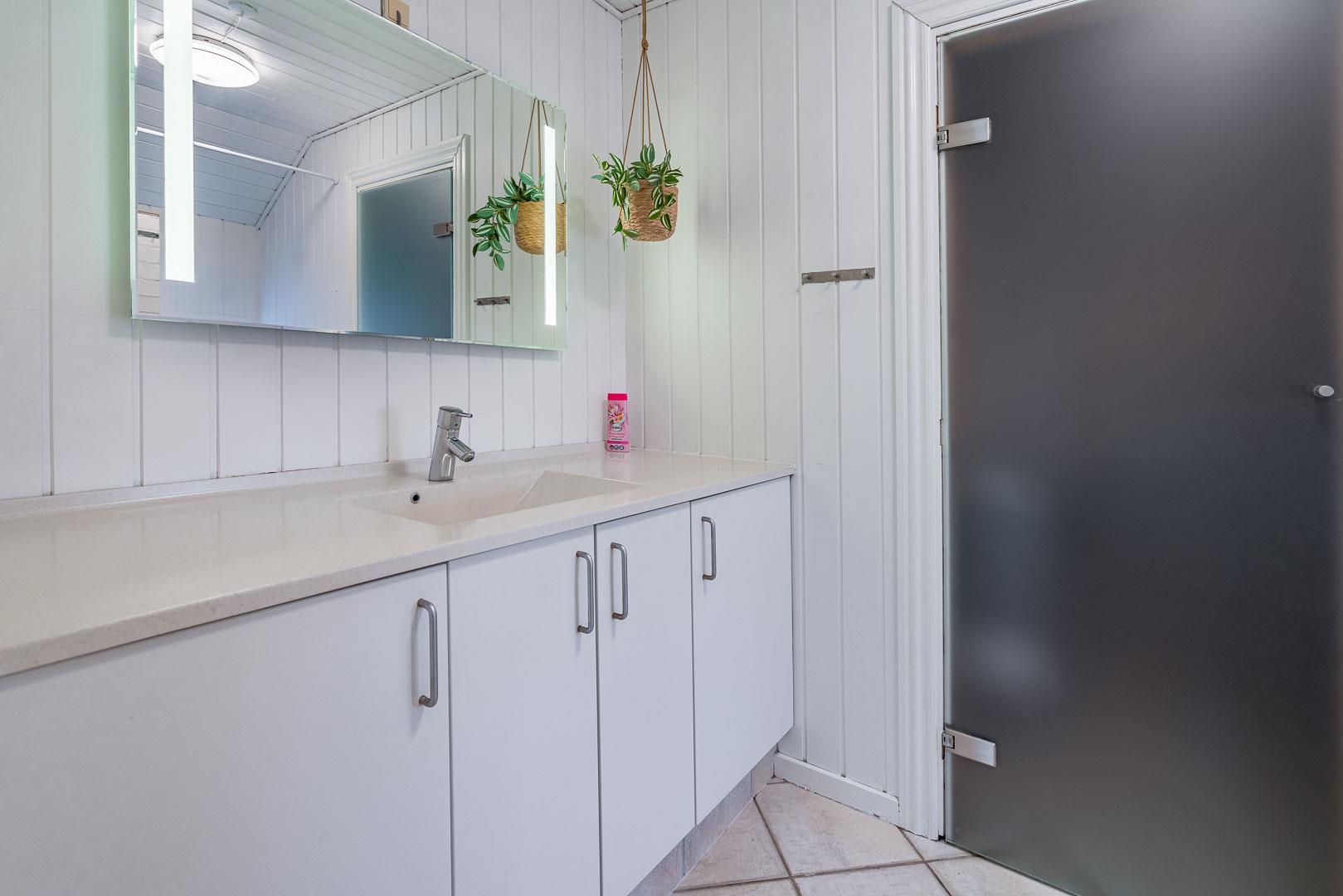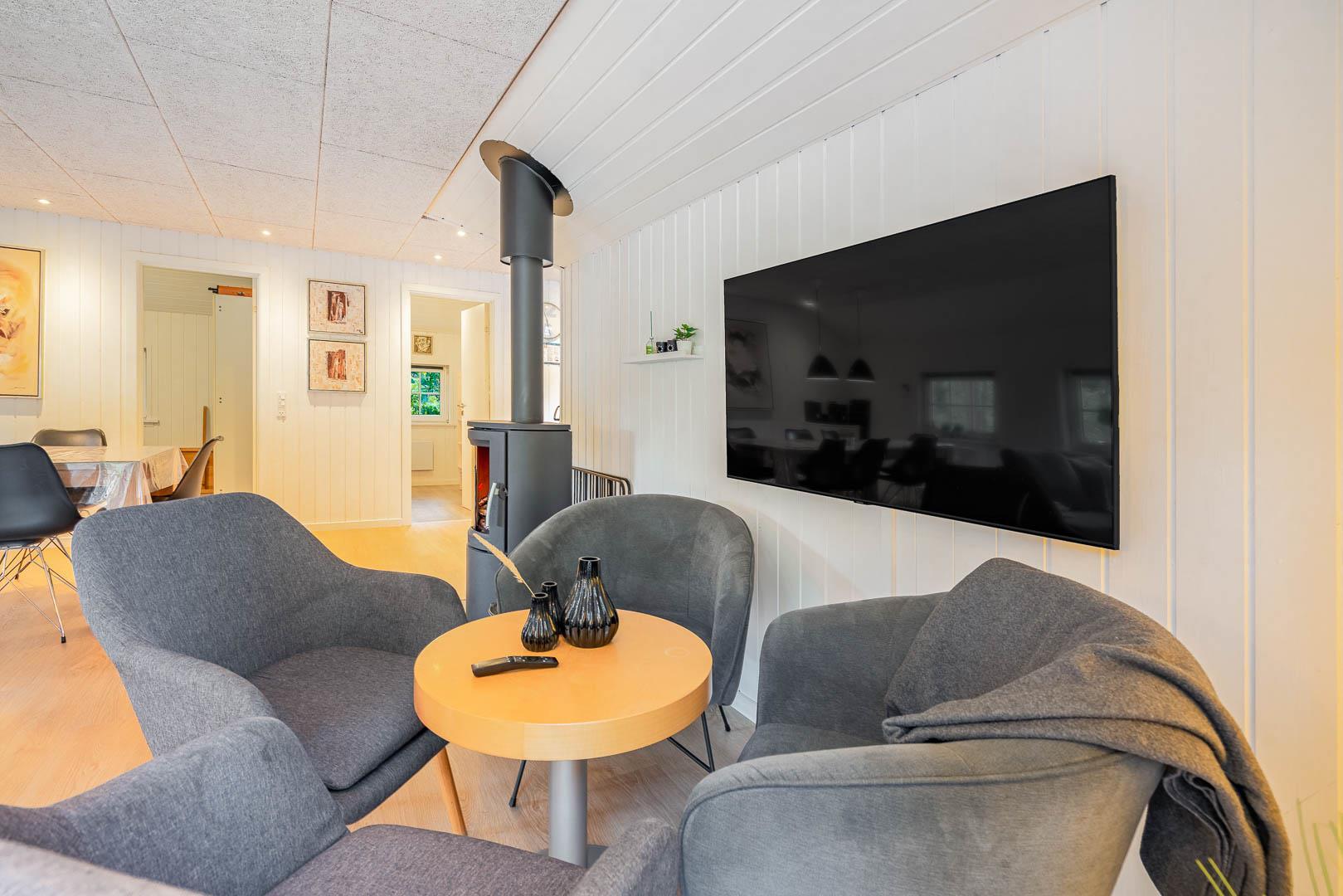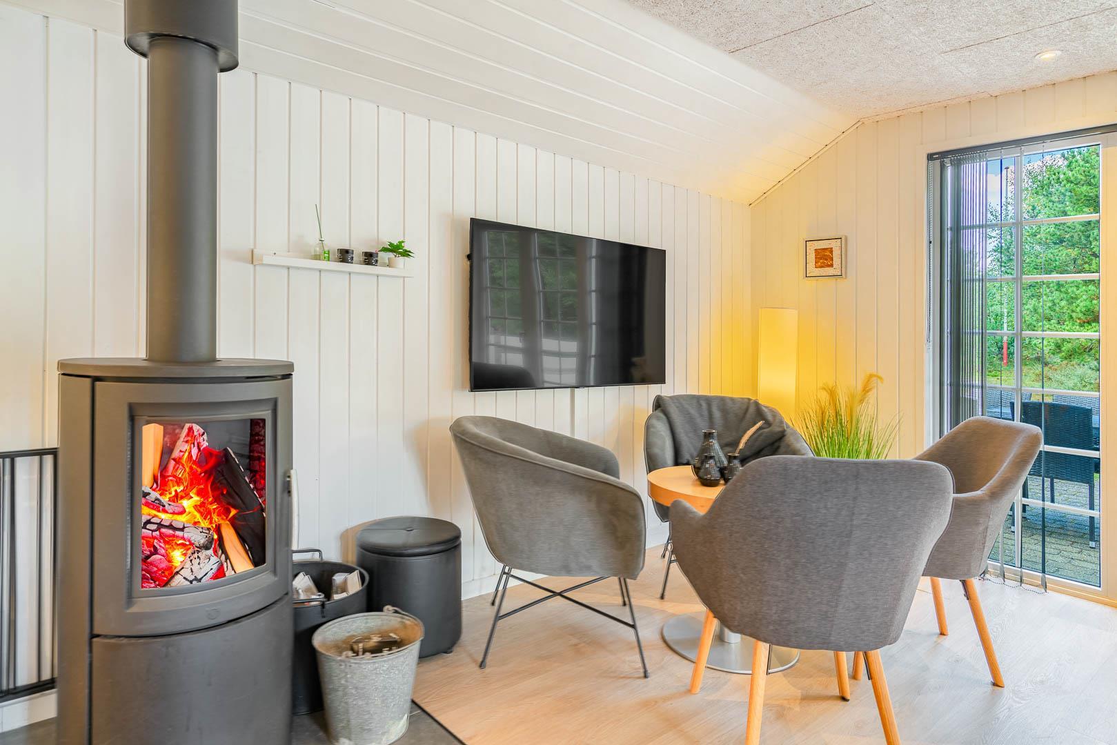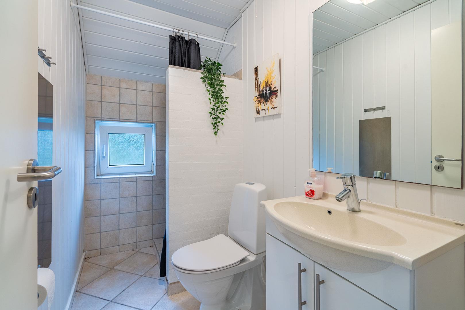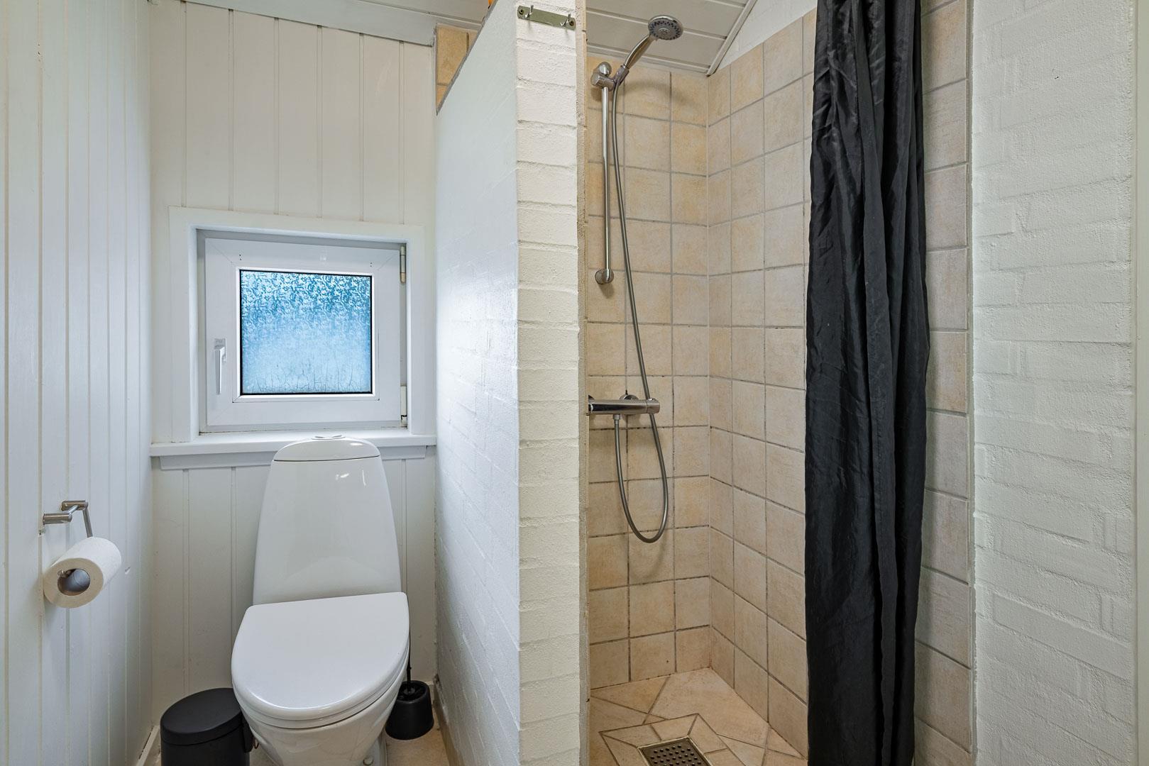 Der er ligeledes ekstra badeværelse med bruser i huset. Hyggelig indrettet stue med brændeovn.