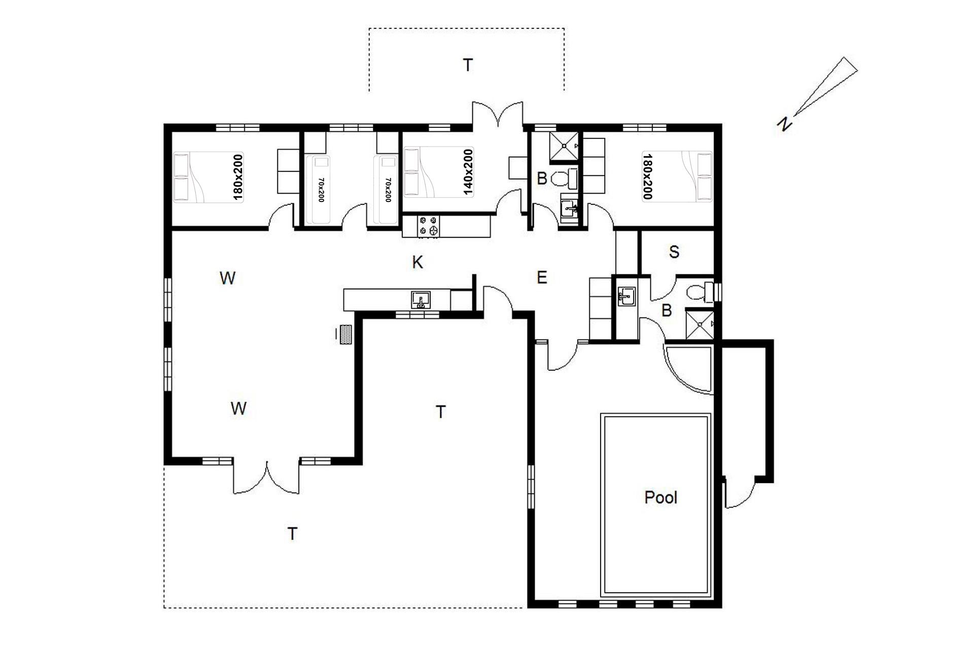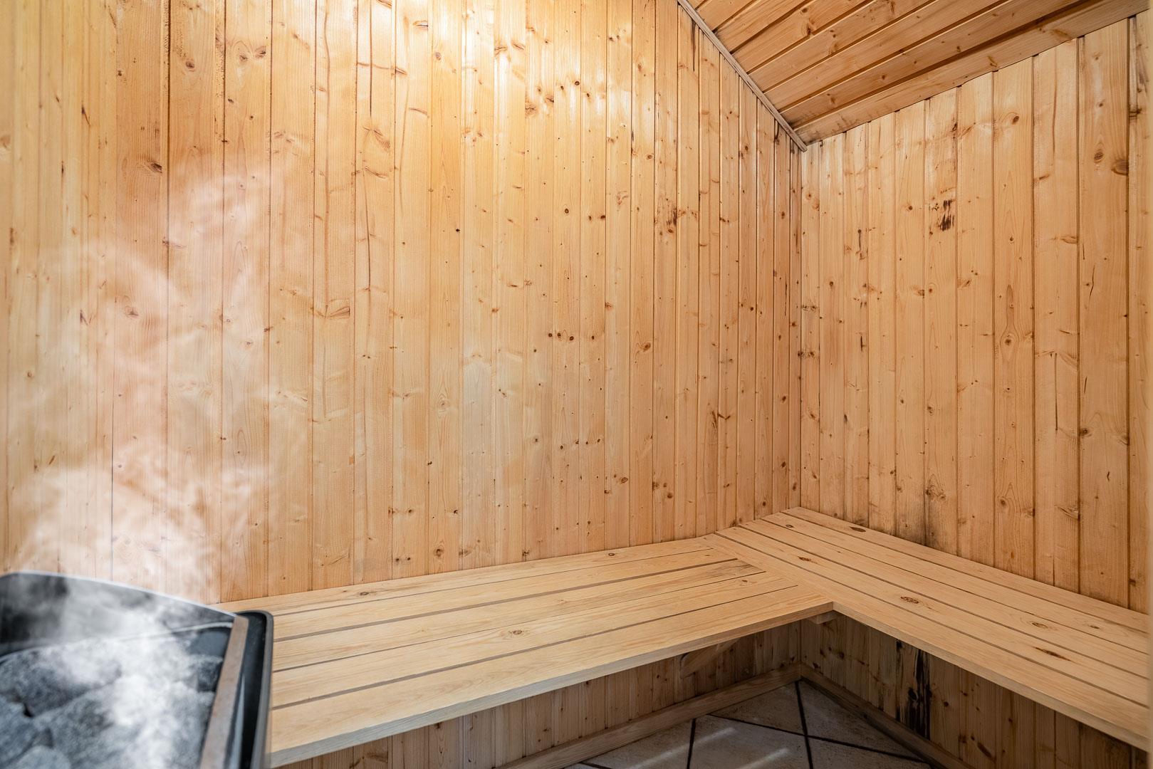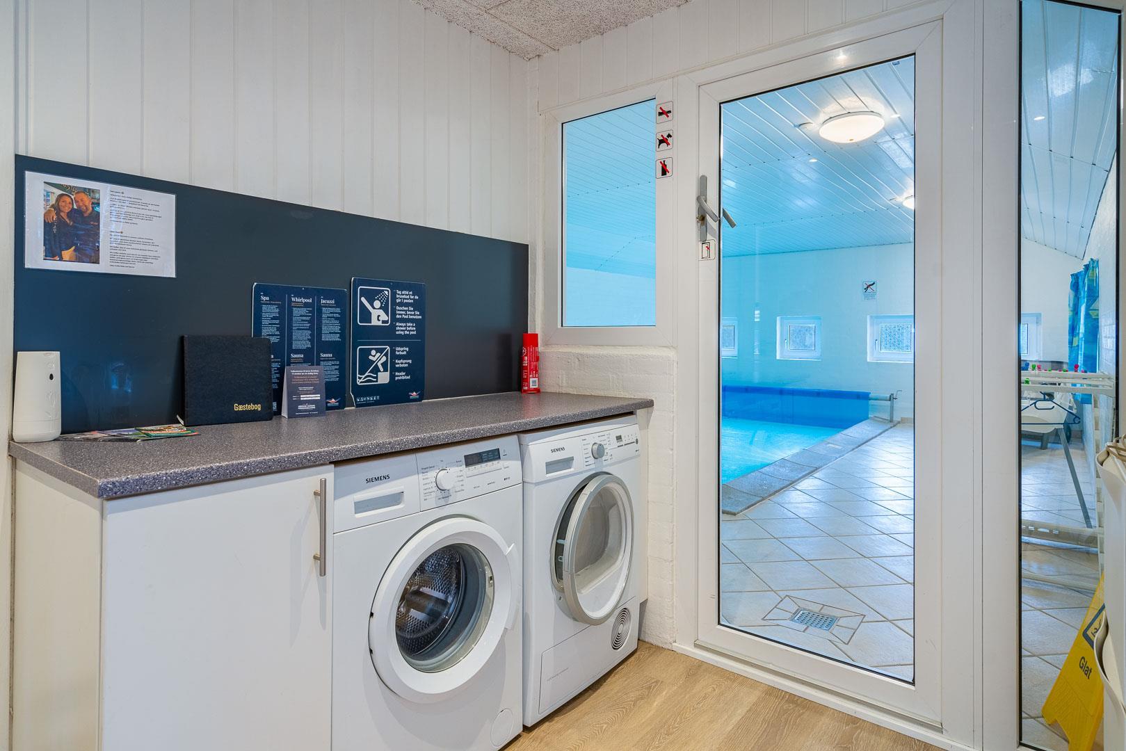 Den lyse poolafdeling med energibesparende varmepumpe til poolen råder over pool (3x5x1,35 m) spa og der er direkte adgang til badeværelse med bruser og sauna.