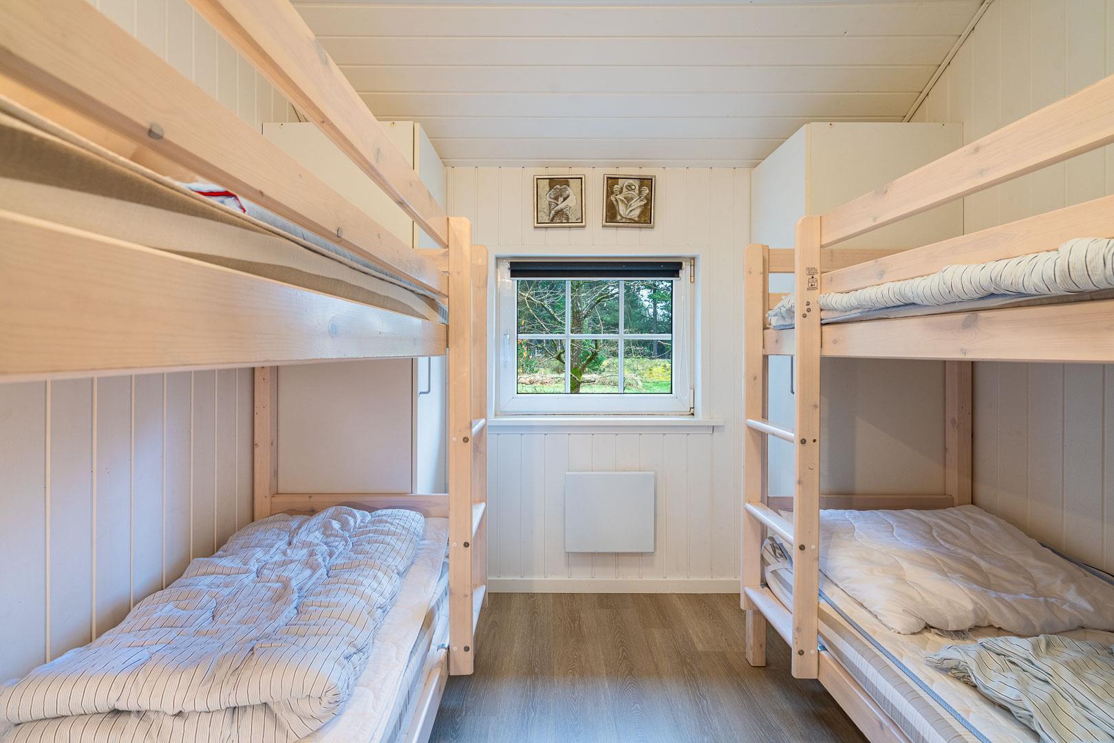 Sengestørrelse: 2 dobbeltsenge 180 x 200 cm + 1 dobbeltseng 140 x 200 cm + 2 køjesenge 70 x 200 cm.