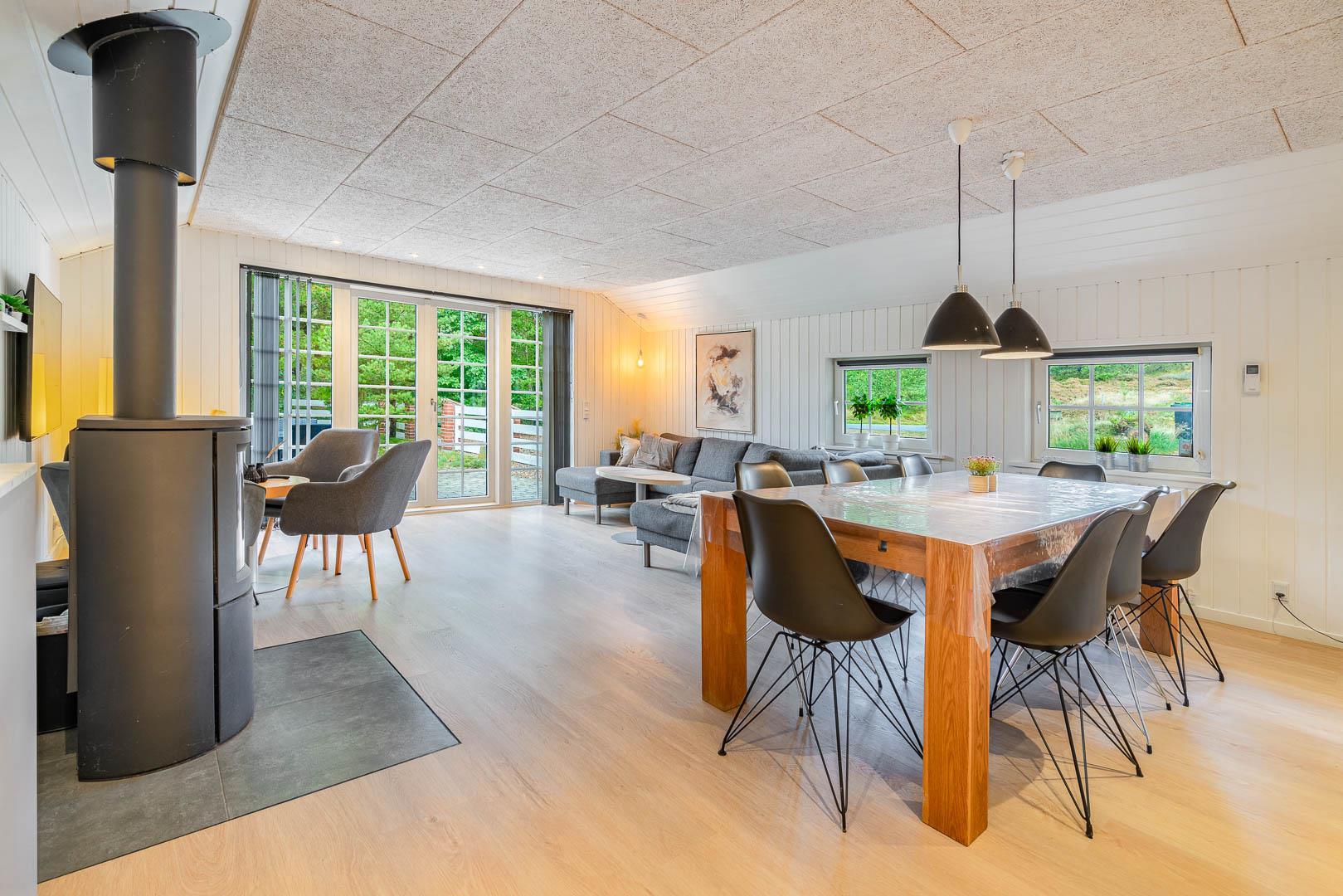 Et feriehus - velegnet til 2 familier, hvor rammerne er til stede for en rigtig god ferie - hele året. Energibesparende varmepumpe i huset.