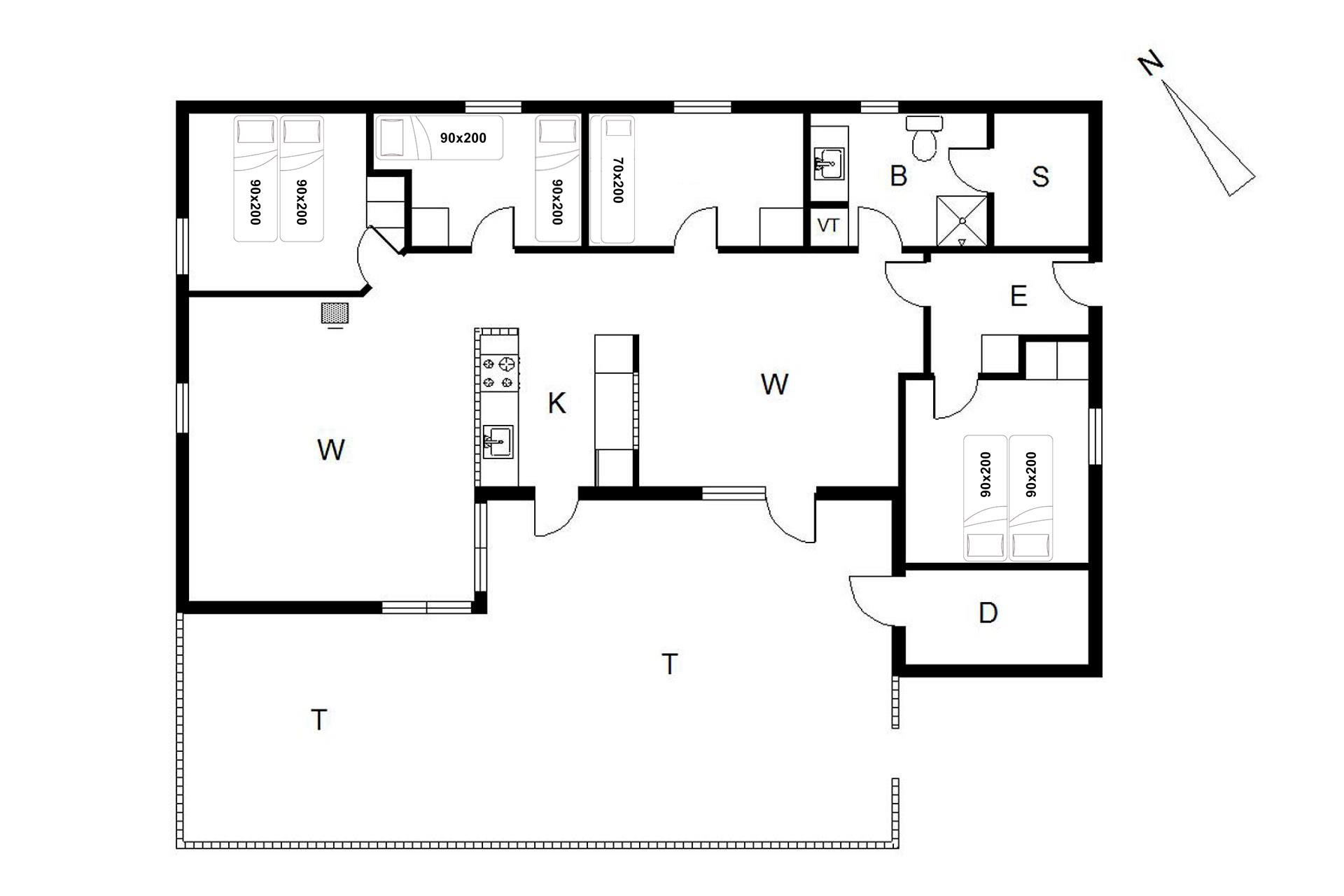 Sengestørrelse: 2 dobbeltsenge med 2 madrasser 90 x 200 cm + 2 enkeltsenge 90 x 200 cm + 1 køjeseng 70 x 200 cm.