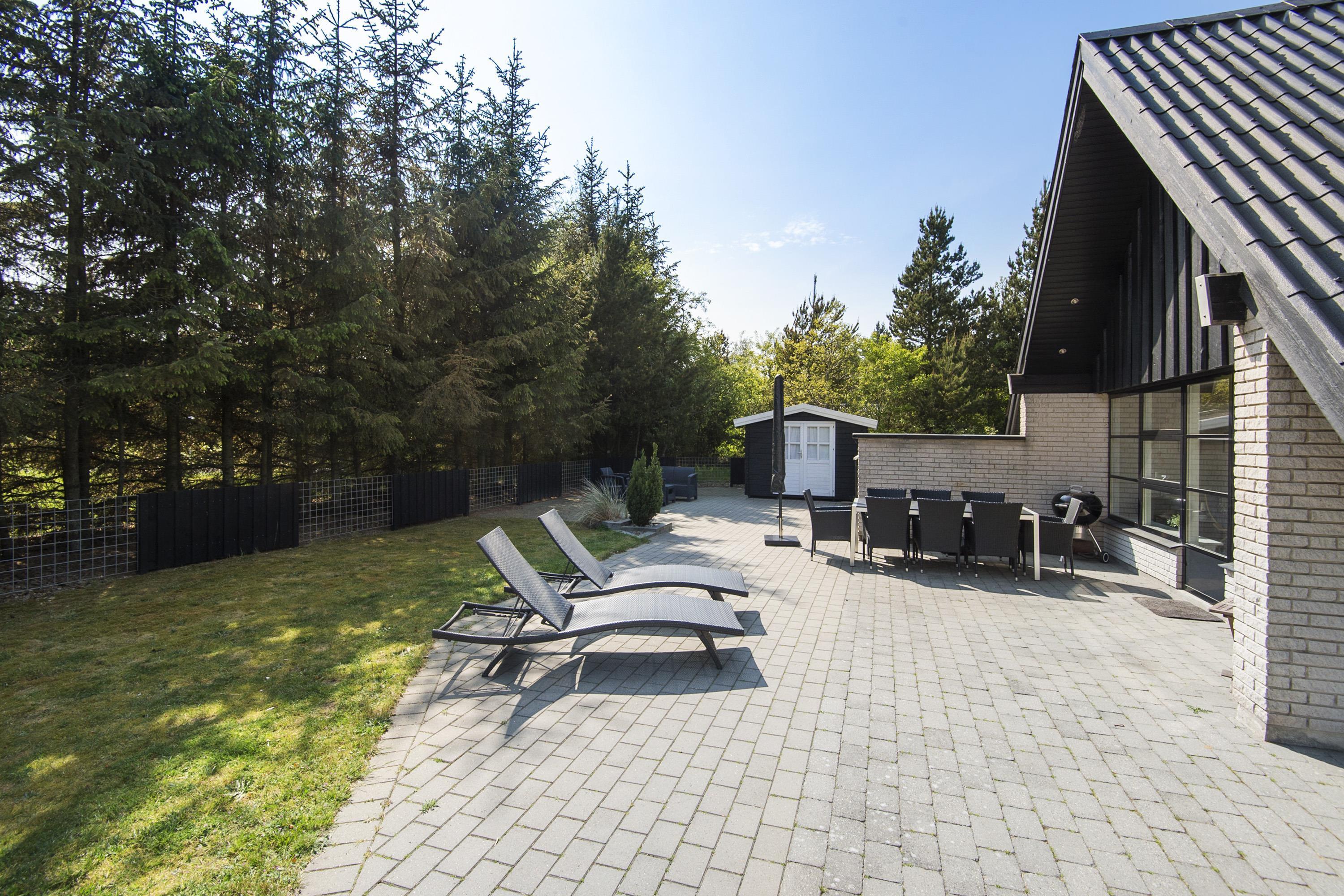 Du finder her, dejlige sydvendte terrasser med udsigt i det grønne. Her er selvfølgelig havemøbler, liggestole og grill. Terrassen er indhegnet - har du hunden med, kan du slappe af i ro og fred.